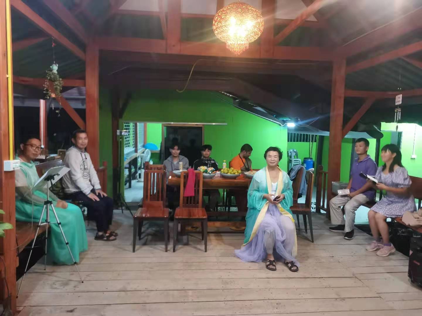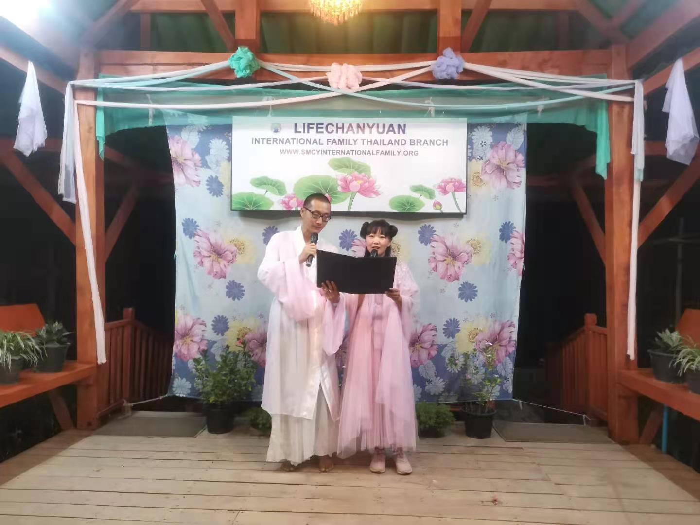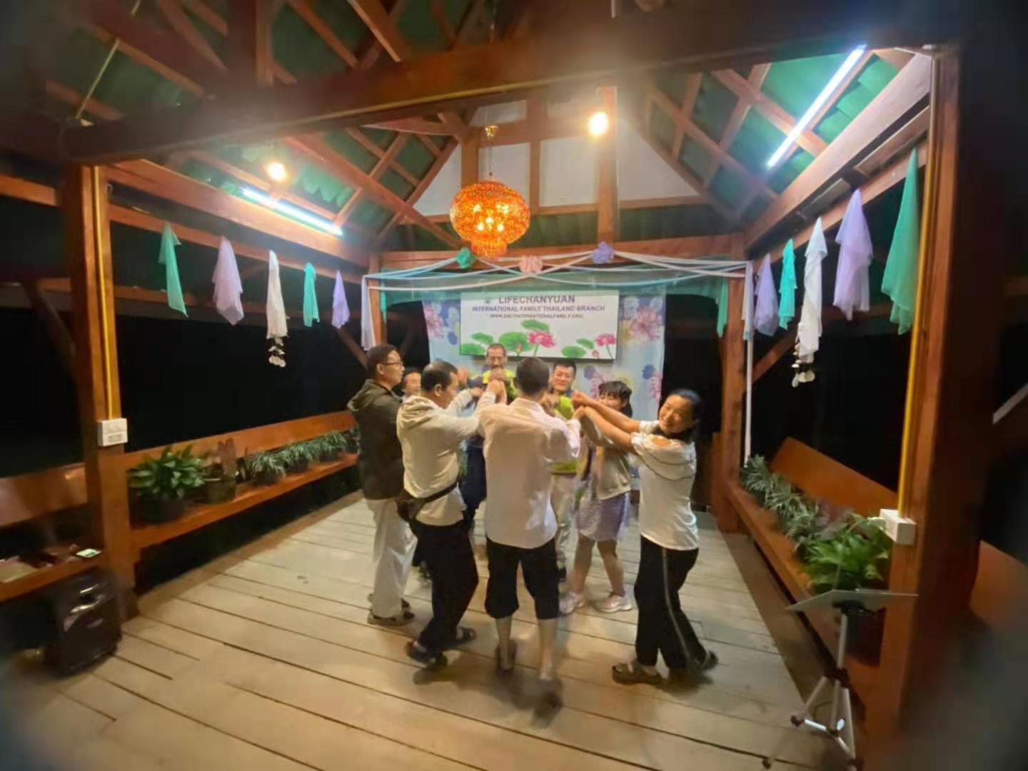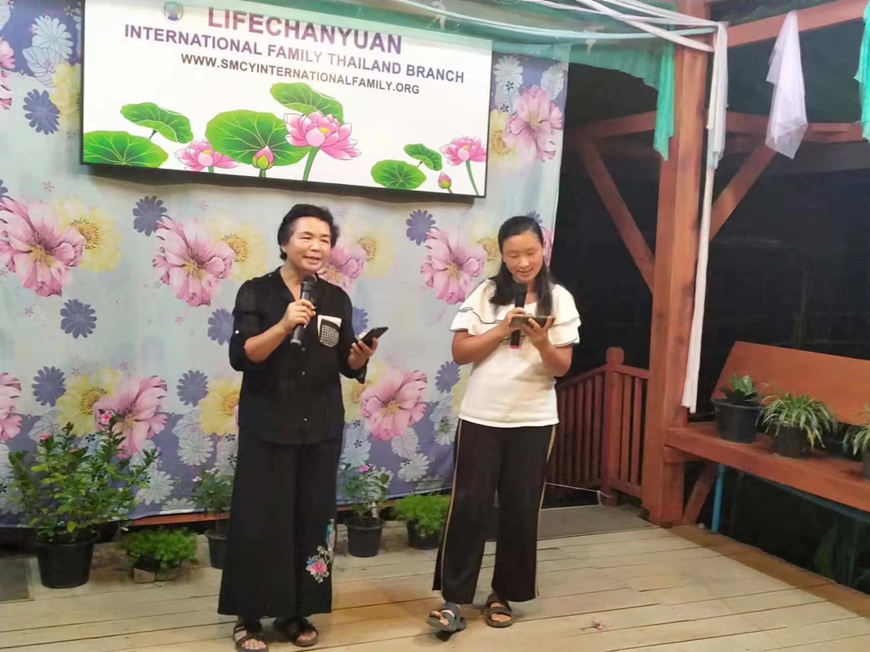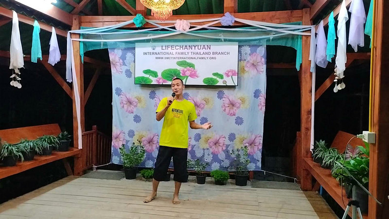 為了歡送輝一,泰國家園於11月6日晚開辦了一場久違的家園歌舞晚會,晚會由仰樂籌劃,歡心輝一雙語主持,歡心仰樂慧光佈置舞臺,玉林設計製作演出服裝,兼化妝髮型師,慧光製作道具,兼音響師。 雖然人不多,大家在日常工作之餘為這場晚會準備著,積極地獻智獻力,每一位都綻放了迷人的風采和藝術才華,尤其是玉林,感謝她為了給大家趕製衣服,廢寢忘食夜以繼日的付出奉獻。