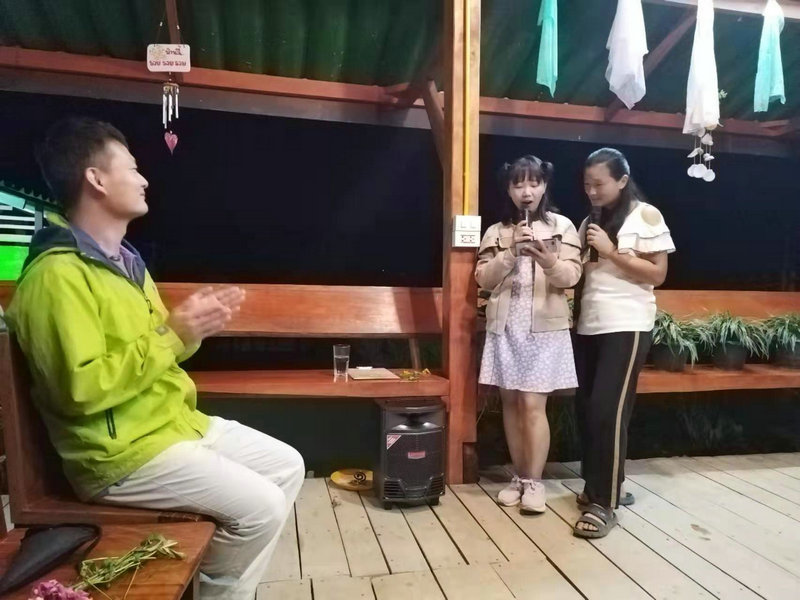 我們邀請了朋友阿男和飛利浦,阿男帶著泰國朋友放鞭炮為晚會增添了喜慶的氣氛,飛利浦收到資訊,馬不停蹄騎摩托車四個小時從清邁Pai縣趕來,真摯暖暖的友誼讓我們感動。