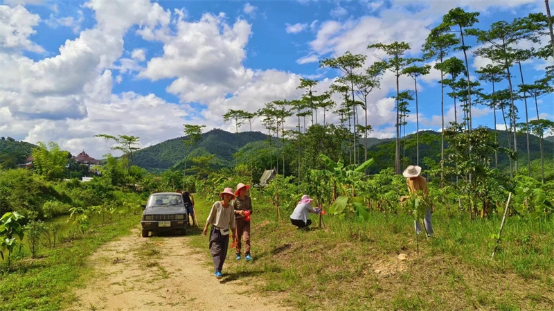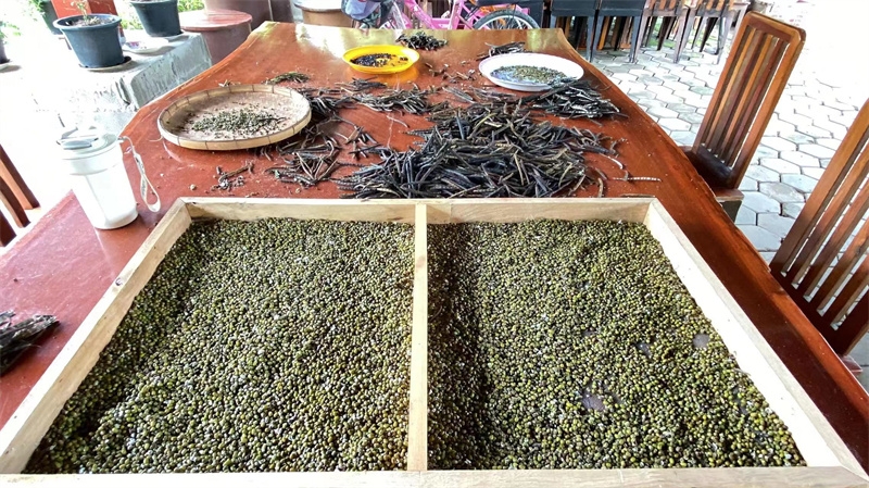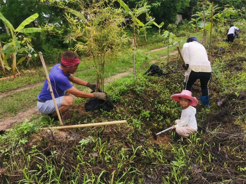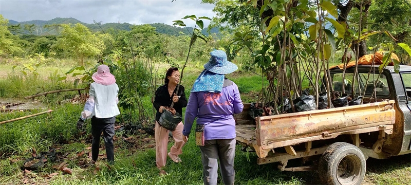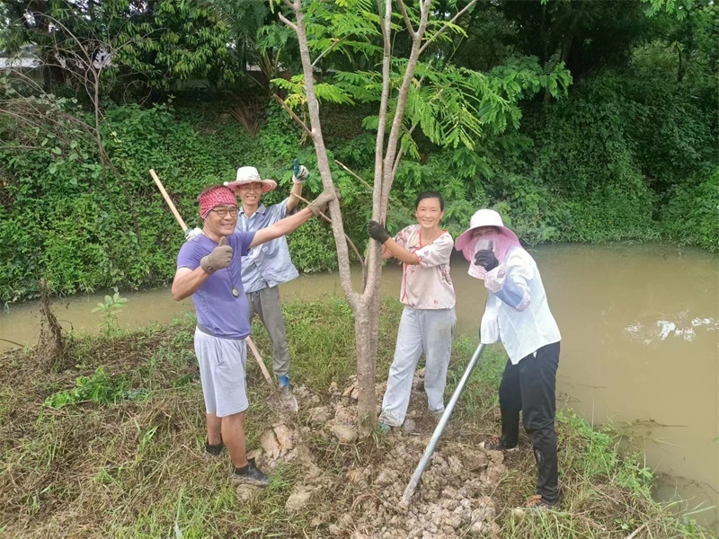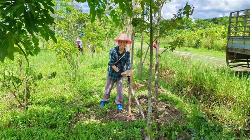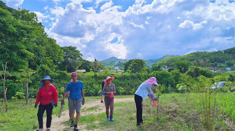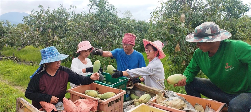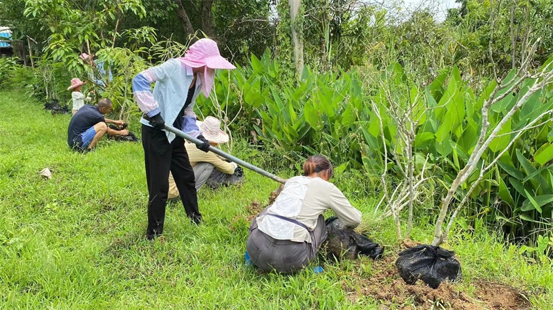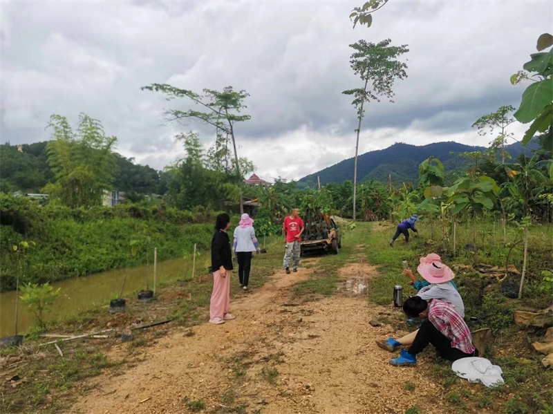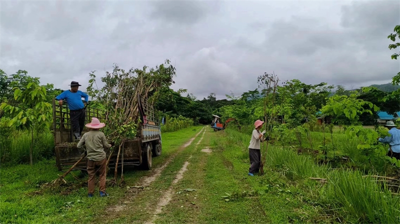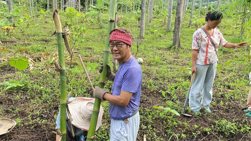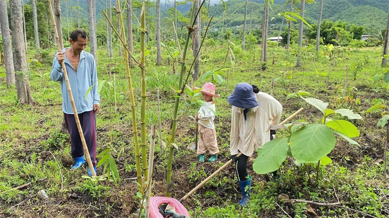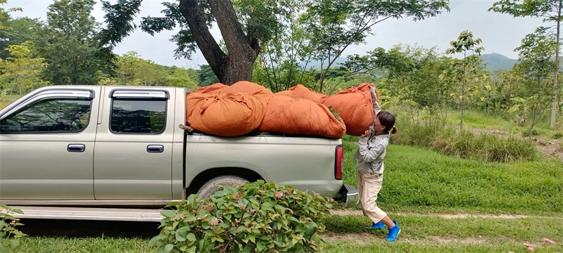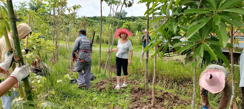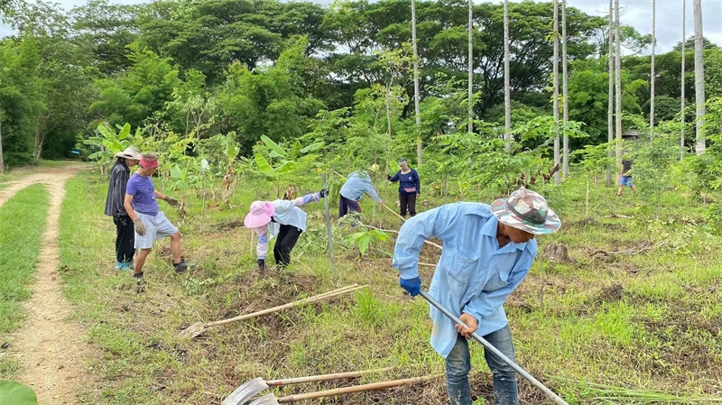 曼谷施主徵用龍袍園子100多畝,打算大規模種植四季豆。 挖掘機把徵用地上的樹木和竹子挖出,這一周我們的主要工作是説明把挖出的樹木移栽到園子其他地方,仰樂帶著幾位小夥伴還幫龍袍採摘了一些芒果。 柔美和曲丹幾個月前播種的綠豆收穫了,曲丹給嬌娥百川逸仙所住的房子那裡拉上了網路光纖。