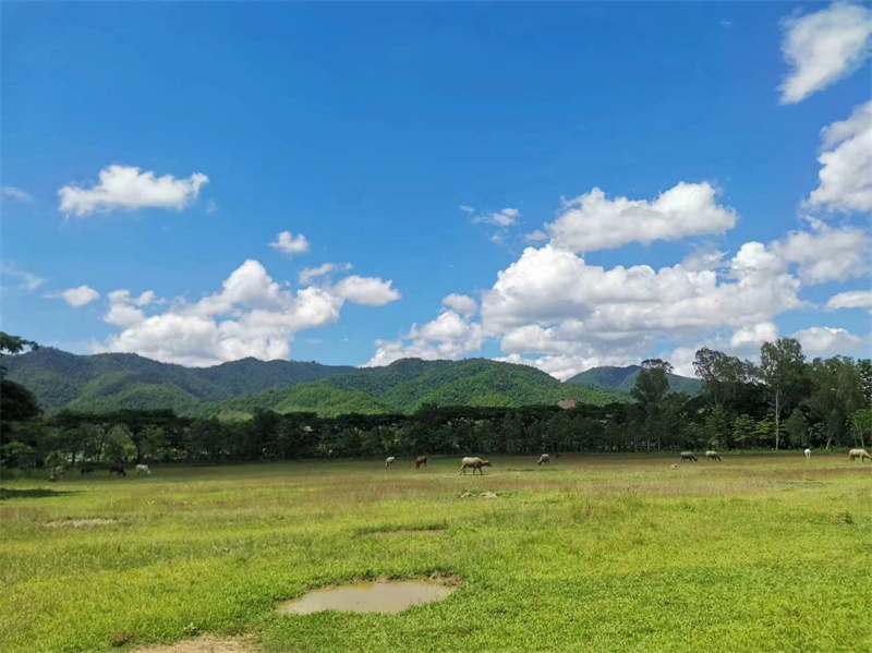 雨季天氣涼爽舒適,空氣清新怡人,湛藍清澈的天空上白雲肆意揮灑著浪漫與柔情,草兒青蔥翠綠牛兒悠閒愜意,與兄弟姐妹們勞作的身影還有那溢滿汗水的俏麗笑臉,構成一幅幅美不勝收的田園天堂畫卷。