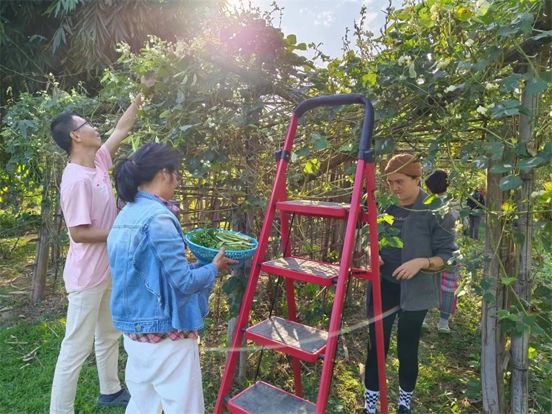 在花開正艷的時節,泰國家園迎來了蘭卡草,他安靜溫厚,淳樸謙和,有著孩童般純真的笑容,有著禪院親人般的溫暖與默契。 蘭卡草去年九月份成草,在網上與親人們交流了五個月,前來短期體驗感受現實中的家園生活,25號慧光開車去清萊接到蘭卡,他是泰國家園第一位和我們一起生活的國外禪院草。 這幾天蘭卡與大家一起種植南瓜,收集樹葉,給慧光做小工為堆肥廁所做框架等,他幹活勤勞踏實,認真用心,受到大家的認可與喜愛。