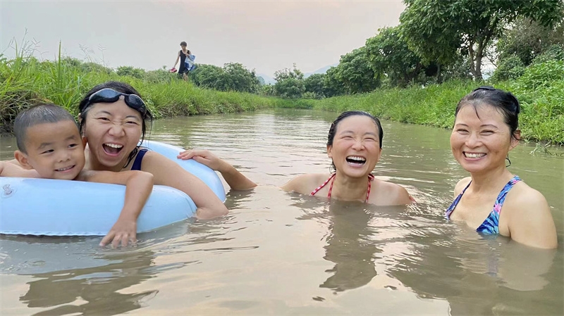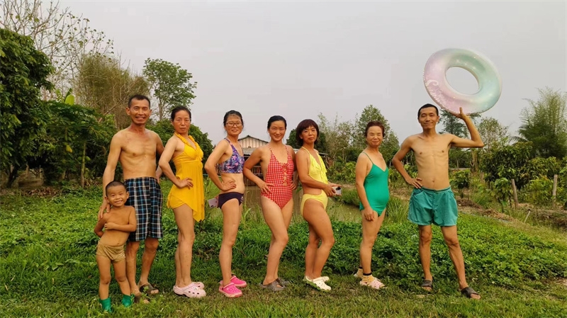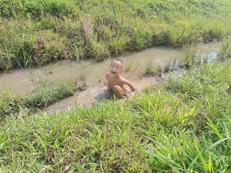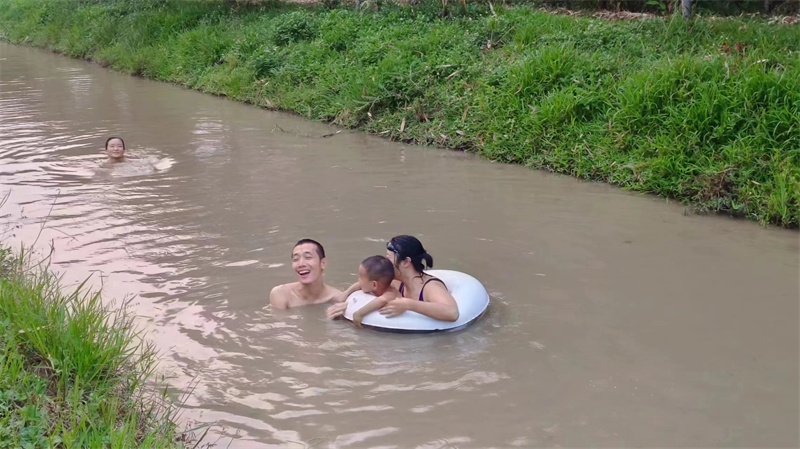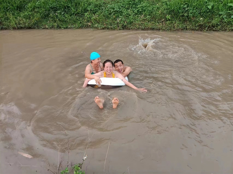 芒果園的小芒果黃透酸甜可口,紅彤彤的桑葚也掛滿了枝頭,戒鏡培育的花卉也競相綻放嬌豔,小登登在小水溝玩得瀟灑不羈不亦樂乎,昨天傍晚仙女們穿上性感的泳衣去芒果園池塘游泳,一開始我們嫌池塘水渾濁不清澈,下到水裡后,仰望著藍天感受著被溫暖和柔順包圍撫摸,大家依然玩得愜意開心!