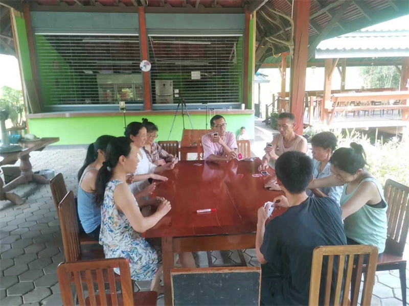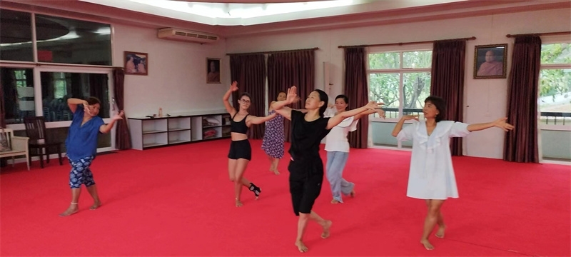 緬甸訪客Engin與我們一起歡慶了418后,4月19號泰國家園又迎來了一位巴西女孩,Jackeline通過志願者網站瞭解到生命禪院泰國家園,前來拜訪體驗第二家園新生活。 為了彌補巴西女孩剛好錯過的418 歌舞慶典,我們藉著還保留著的舞臺,帶著兩位訪客又掀起來一波遊戲小高潮,仰樂帶大家玩了數位炸彈,搶凳子,舞蹈偵探等,之後巴西女孩還教大家跳了熱情洋溢的桑巴和雙人舞forro。