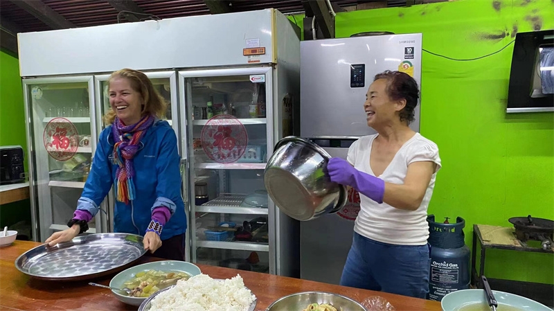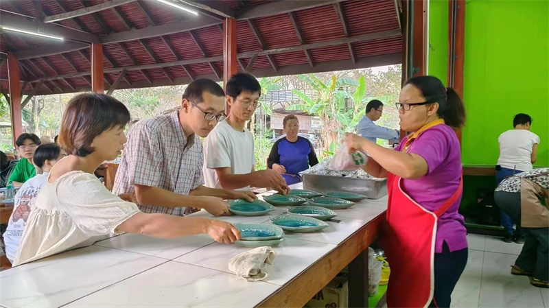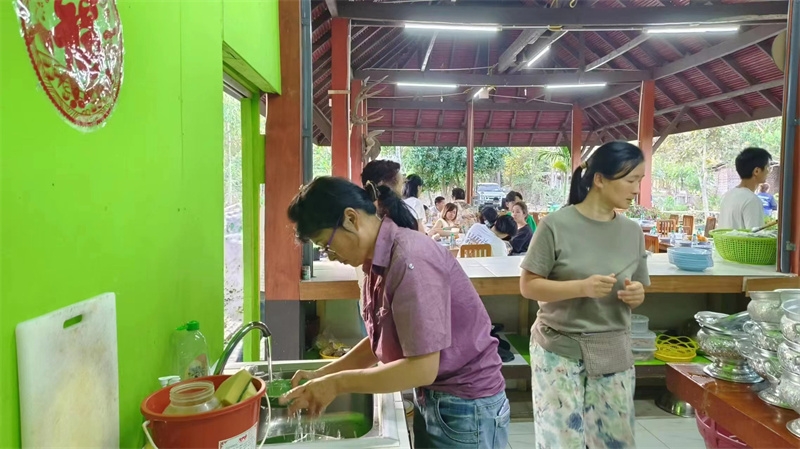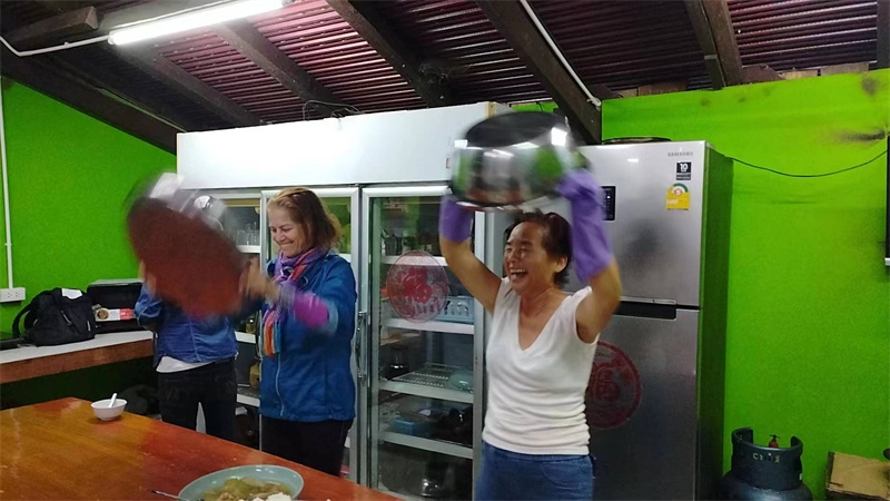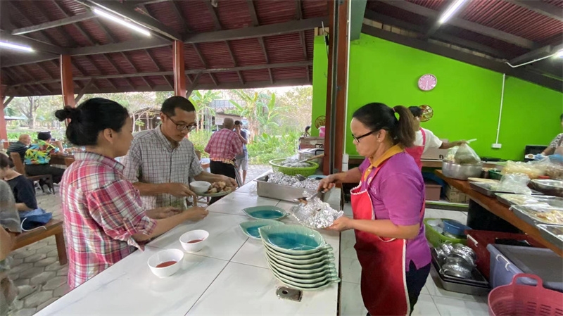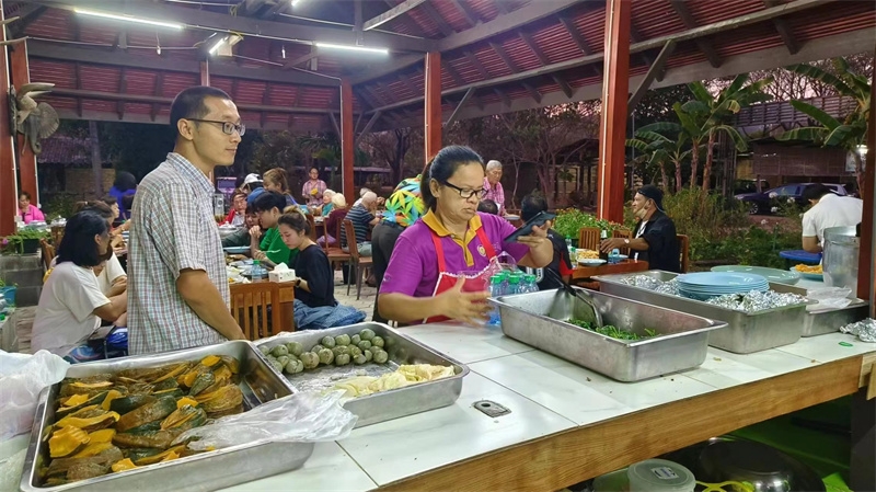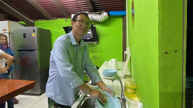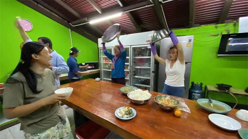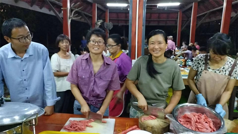 23號龍袍要接待50 位來自曼谷的客人在園子餐廳吃晚飯,提前告知我們打掃並整理餐廳。 宴客那天傍晚,寺廟的廚師們把烹飪好的飯菜運送到園子餐廳,兄弟姐妹們在餐廳説明廚師一起服務客人:擺碗筷,配菜裝盤,上水上菜,以及結束后的洗碗清潔工作,持續了近5個小時,大家一直洋溢著歡快和熱情,每一位像是訓練有素的一流服務員,手腳麻利,配合得默契絲滑,沒有一絲疲倦和懈怠,在歡快高漲的氣氛下,大家還和泰國客人們一起狂歡跳起了舞蹈, 心裡不由的為勤奮服務樂觀浪漫的兄弟姐妹們感到讚歎和自豪。