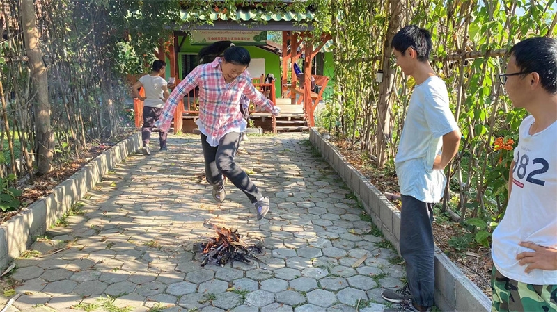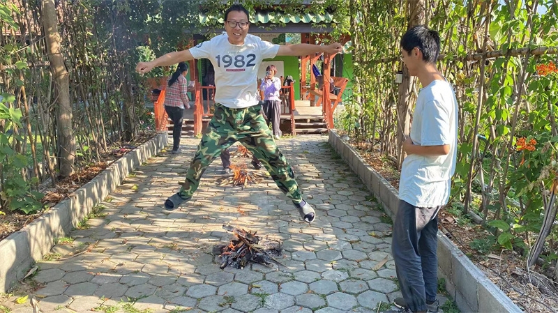 昨天元宵節寺廟舉辦活動,有大施主給大家供奉毛毯,龍袍邀請我們每一位前去領取毛毯,儀式結束後,大家一起分享了供奉的各種水果。 元宵節仰樂點起了三堆火,大家跳火堆,並與Youtube上的粉絲以及以色列訪客分享了三堆火的故事。