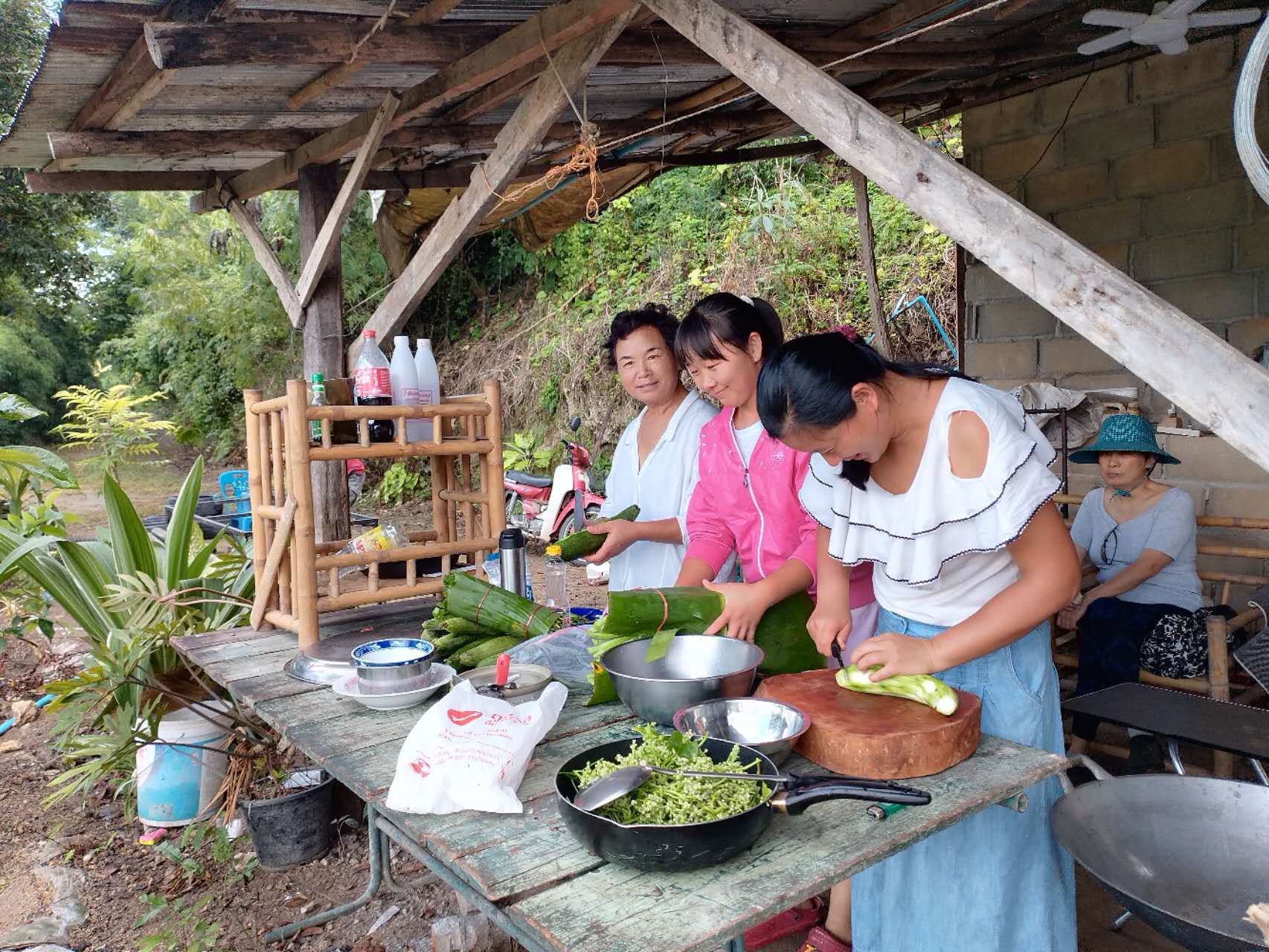 加上阿男和尚我們一行7人,帶上食物和蔬菜興高采烈去遊玩訪友。 開車30公里來到空谷隱居在山間的小屋,從小屋露台往外望去,山谷空曠,樹林蔥鬱,風景優美。 小屋內空間有些狹窄,剛搬家不久,也有些淩亂無序。 隨遇而安,在空谷先生熱情的招待和挽留下,仙女們為午飯做起了準備,用簡單的廚具和食材準備了一桌豐盛的午餐。 用餐期間大家聊天中,空谷初步瞭解到我們沒有婚姻和私有財產的家園模式。 作為一位視頻製作愛好者,他全程為我們拍攝了視頻,第二天製作出第一個視頻「小屋來了神秘的客人,烏托邦? ”。 感興趣的親人們可以在YouTube上搜索觀看。