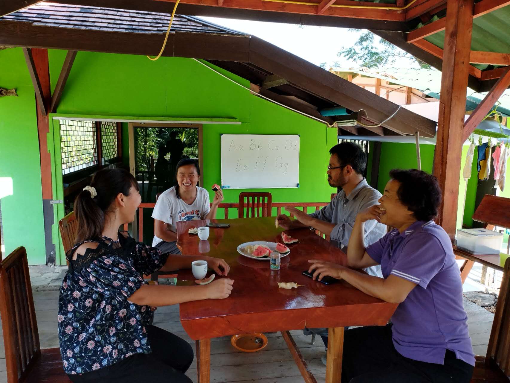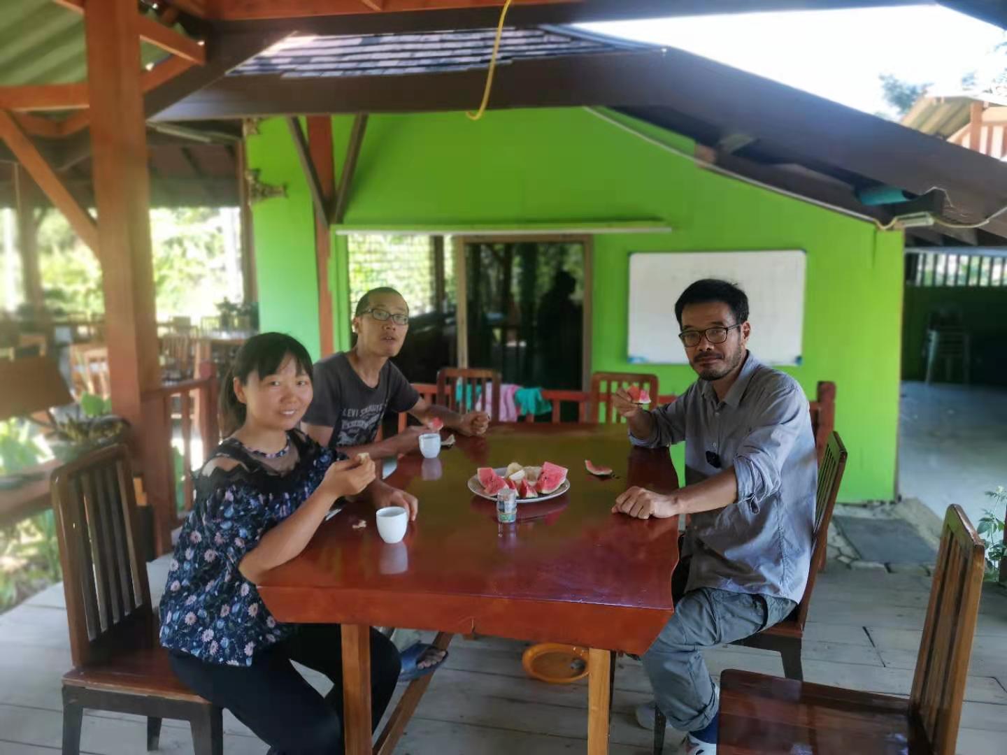 第三天早上他迫不及待來泰國家園回訪,仰樂就家園模式的運行與他進行深入的交談,之後參觀了我們的菜園和臥室,一起用了午餐后便開車離開,去完成他的第二部視頻。