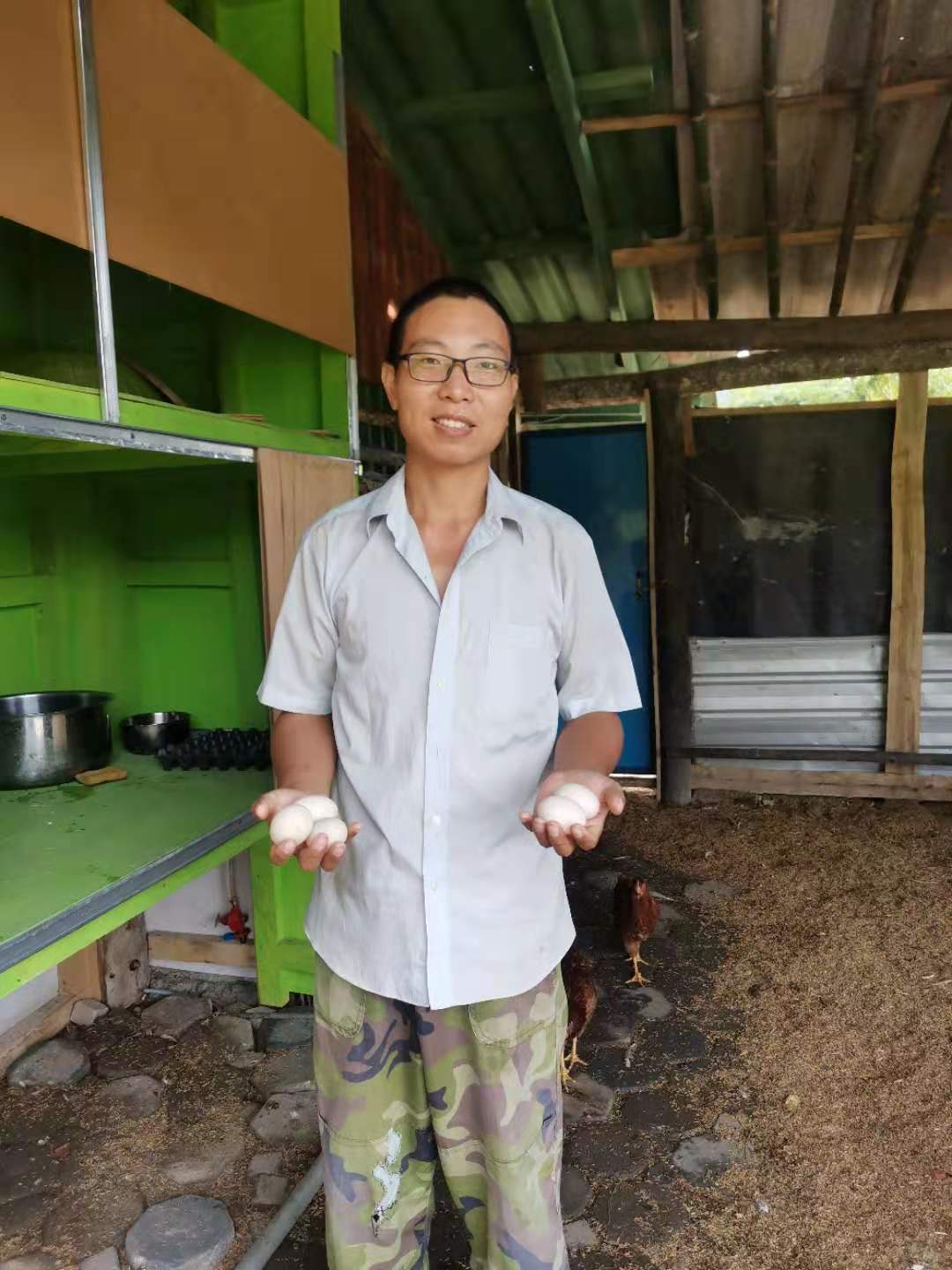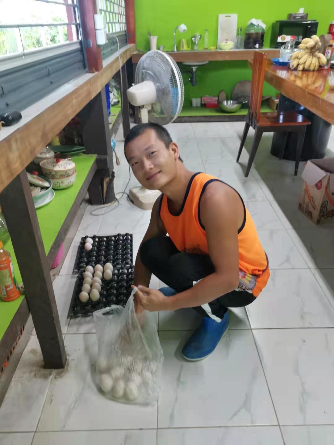 “在那如詩如畫的地方,有一個美麗的故鄉,她就是神奇的第二家園,傳送著愛的芬芳。。。” 深情嘹亮的歌聲從雞舍裡傳來,“喂,你們倆別打架,說的就是你倆,別打架”,原來是雞鴨爸爸在給雞鴨寶寶們唱歌,調皮的寶寶偶爾也會被寵愛它們的爸爸說落教導呢。 鴨鴨自從來到我們大家庭後下了八個蛋就突然停產了,第一次養鴨的光哥也不明原因,便在網上查詢養鴨知識,並向專家請教經驗,發現鴨子特別膽小怕生,來到新地方,餵養時間和餵食量都和之前不一樣,再加上新環境新主人,他們不適應受驚了。 為了讓他們儘快適應新環境,光哥與鴨鴨們朝暮相處,研究它們的作息習慣和飲食規律,每天定時定量科學餵養,幾天后他們終於又開始下蛋了,一開始每天五個,後來八個,九個,十一個。。。 我們都被驚呆了,沒想到蛋蛋自給自足以后不用花錢買的願望這麼快就現實了,光哥太厲害了! 我們吃不完,前後兩次送給主持龍炮五十枚鴨蛋,當我們拎著一袋袋沉甸甸的鴨蛋送到龍炮手上時,光哥的心裡一定很開心很自豪! 不愧是我們大家的萬能給力哥,幹啥啥行!