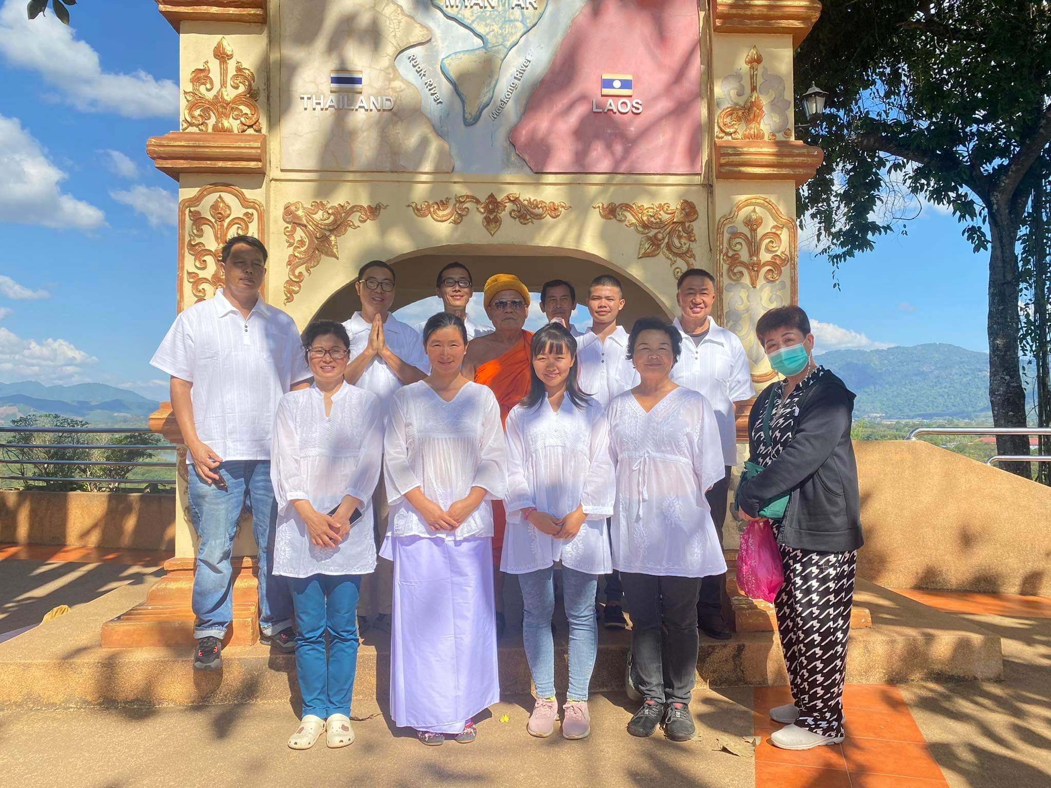 跟著龍袍大佛我們先是到了金三角,隔著湄公河瞭望緬甸和寮國的國土邊界,然後參觀了有2000歷史的佛塔和泰國邊界的寺廟,在金三角,龍袍讓司機帶我們去服裝店挑選新衣服,然後讓大家穿上新衣服與他合影拍照。