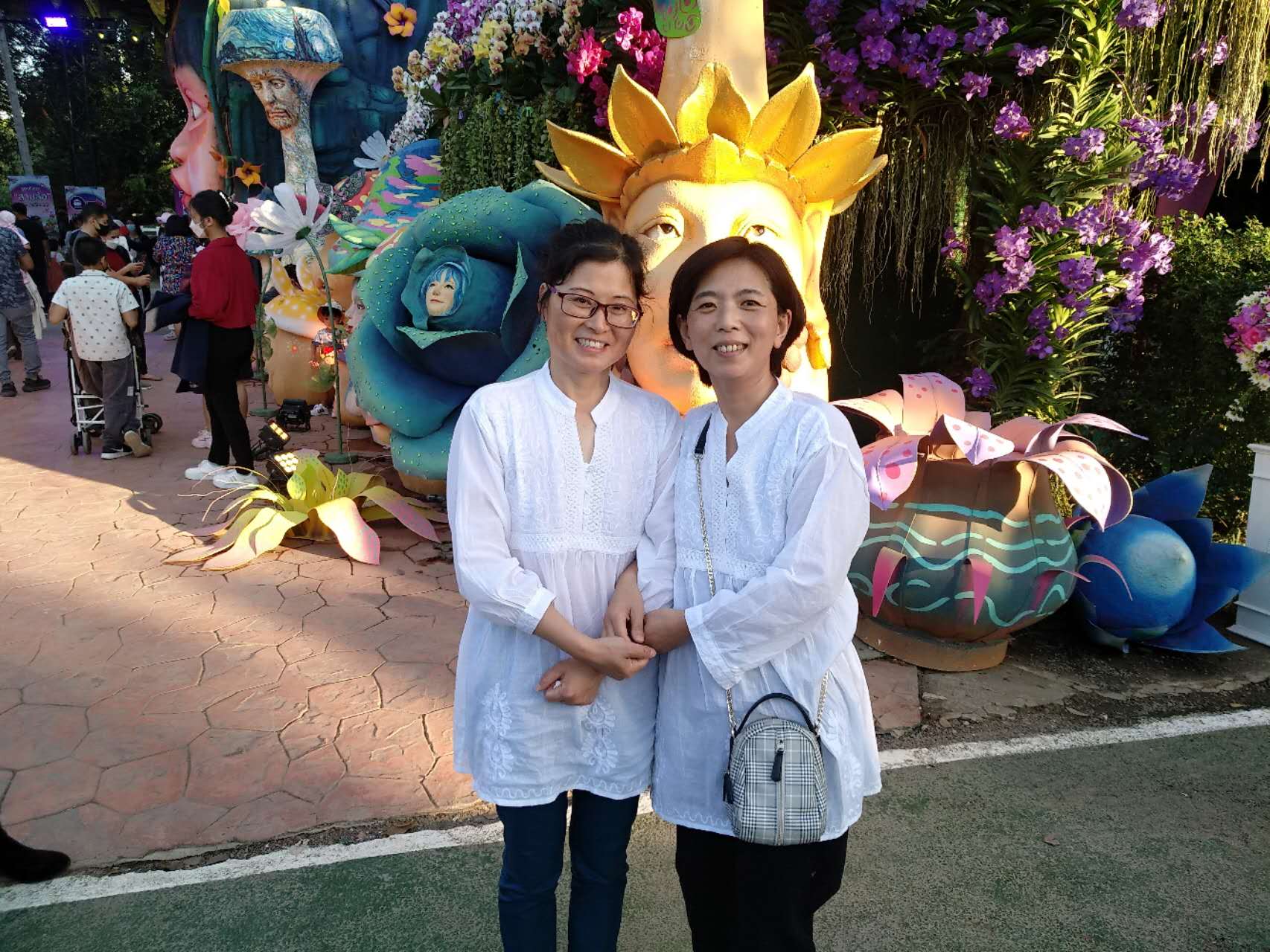 下午龍袍的車返回Tathon,我們去清萊機場接到了嬌娥寶貝,泰國家園又添仙丁,大家情意綿綿,興高采烈,隨阿男和司機來到了清萊的一個大花園,園裡各類花兒競綻嬌豔,仙霧繚繞,靈氣充盈,我們沉醉其中,流連忘返。