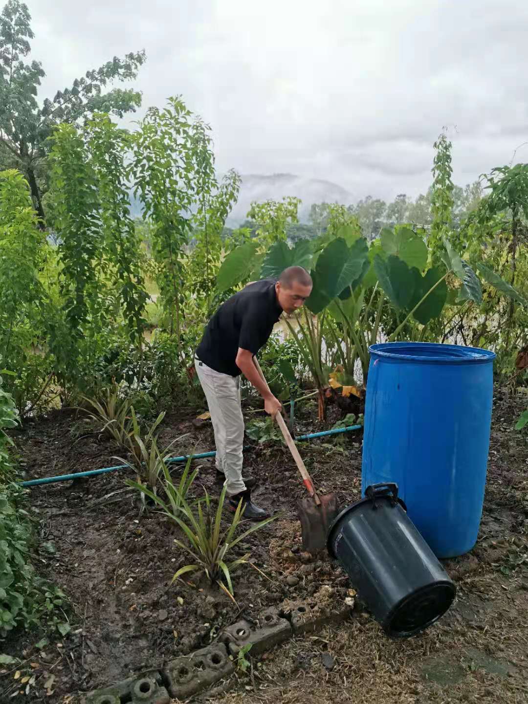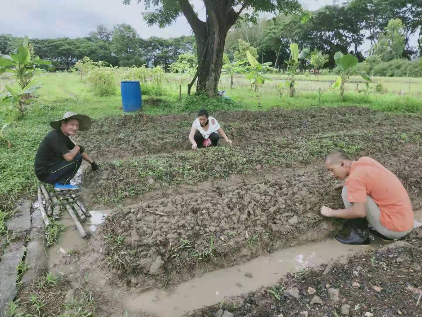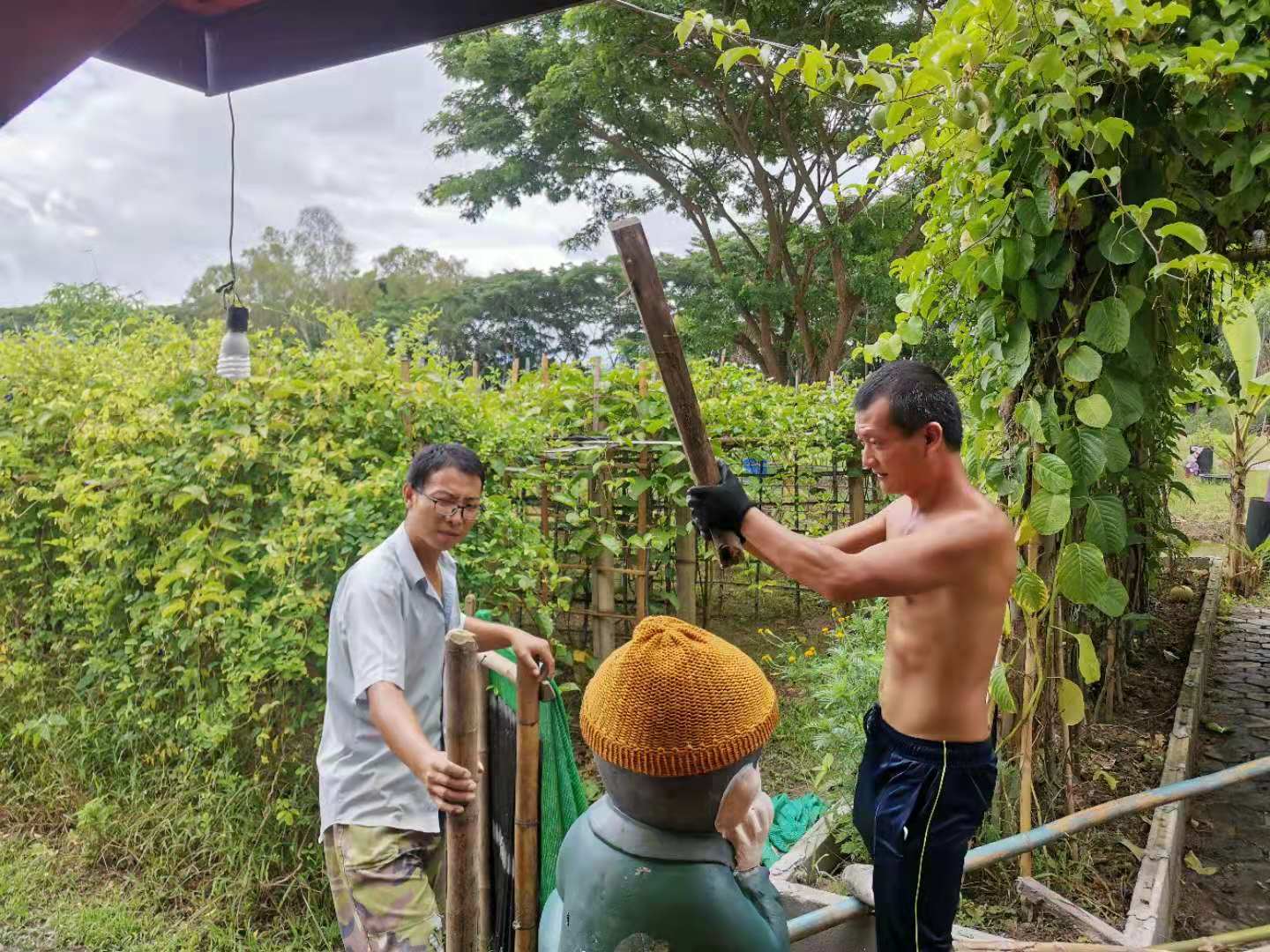 仰樂帶領著,歡心輝一他們三位開始除草,翻地,起隴,給攀爬類蔬菜搭架子。 因目前雨水太多,他們試著在地裡種了茄子,南瓜,小青菜,豆角等不怕水的蔬菜,其他蔬菜如西紅柿辣椒等,先育了苗,等雨水不那麼多,再移栽到地里。 三位都是實力幹將,才幾天功夫原本的荒地就被整理的整潔美觀,龍炮來看,給他們豎起了大拇指,連聲說good,good! 除了種菜,他們撿牛糞,給百香果施肥,種植火龍果,自主做事,一刻也沒讓自己閑著。