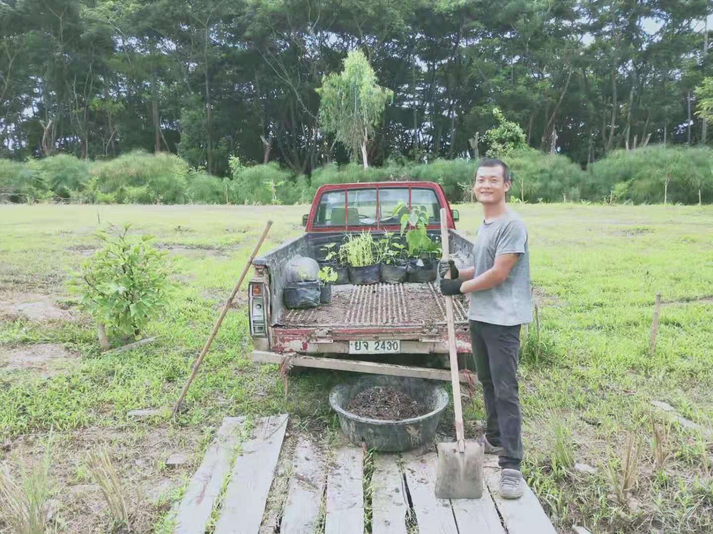 一邊望眼欲穿,盼兄弟姐妹來,一邊思考著我們五位如何推進家園發展,輝一積極主動提出建雞舍鴨舍,並且向主持提出我們自主種菜管理菜地。 一來我們自己通過努力種出東西,讓這裡蔬菜充盈瓜果滿園,自給自足,二來以後這裡的美化以及菜地果樹管理等工作漸漸由我們主導,工人們配合,不再只聽從種菜大哥的安排,這樣整個院子的工作就會更加合理有序,感覺有輝一在,泰國家園的建設妥妥滴!