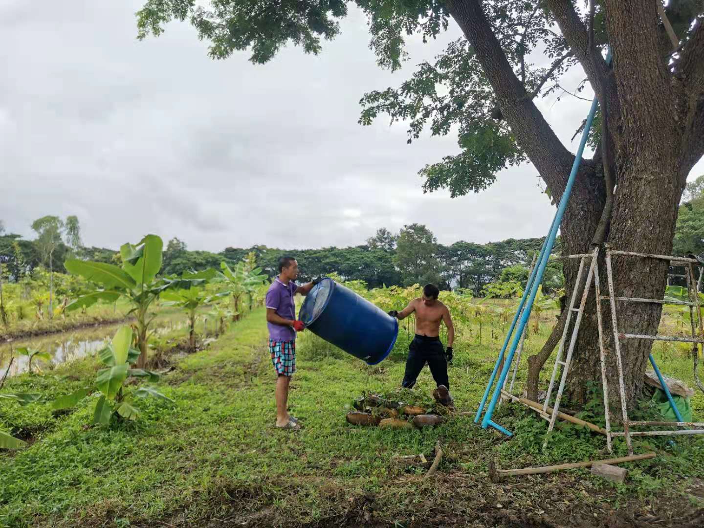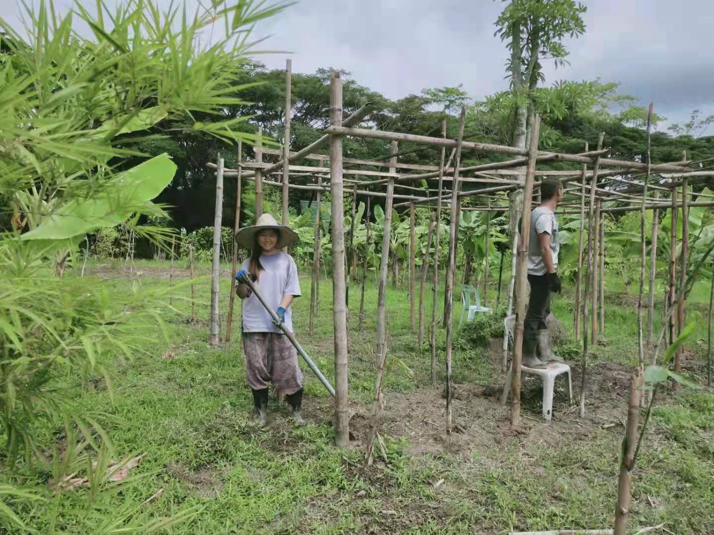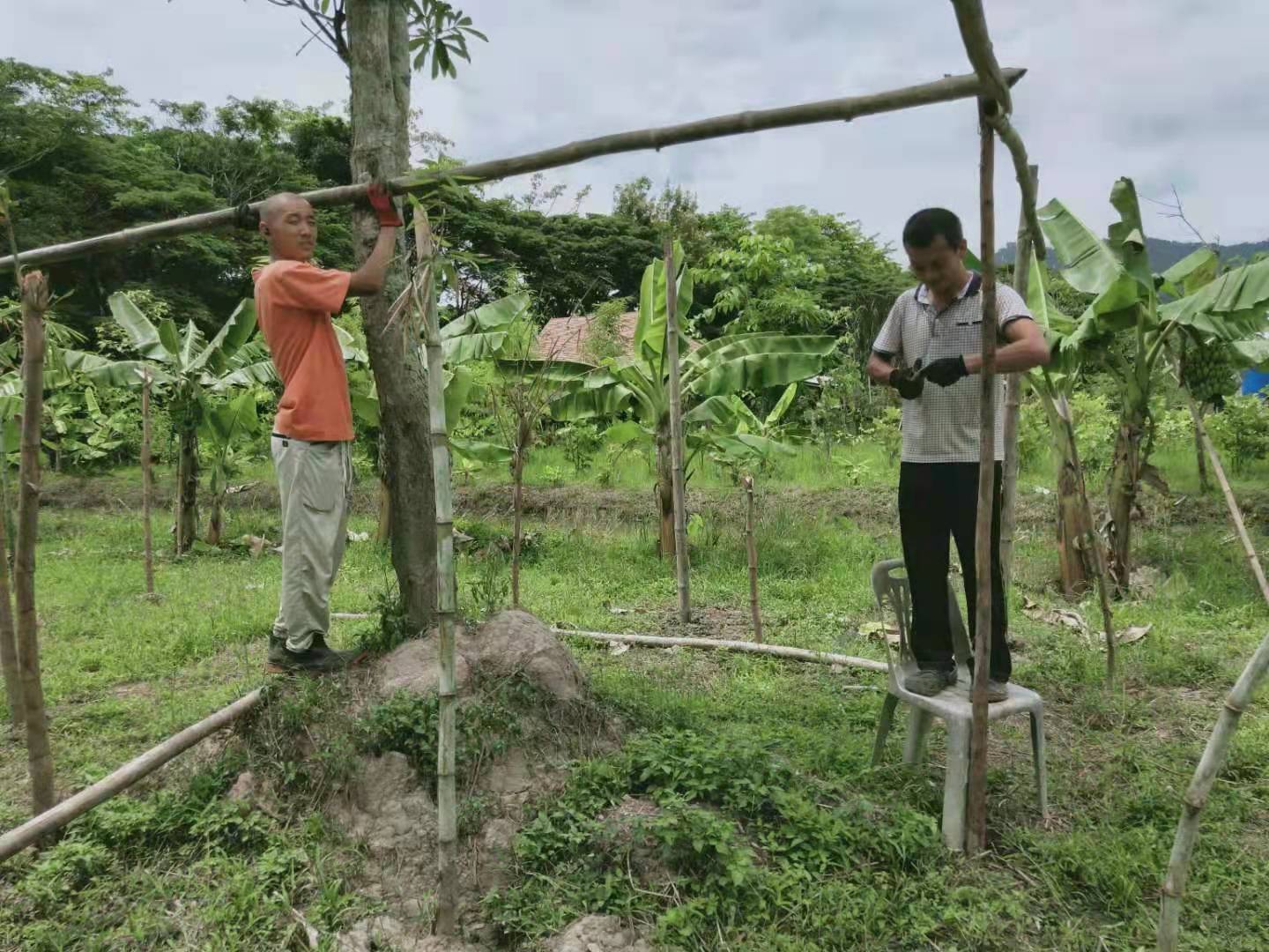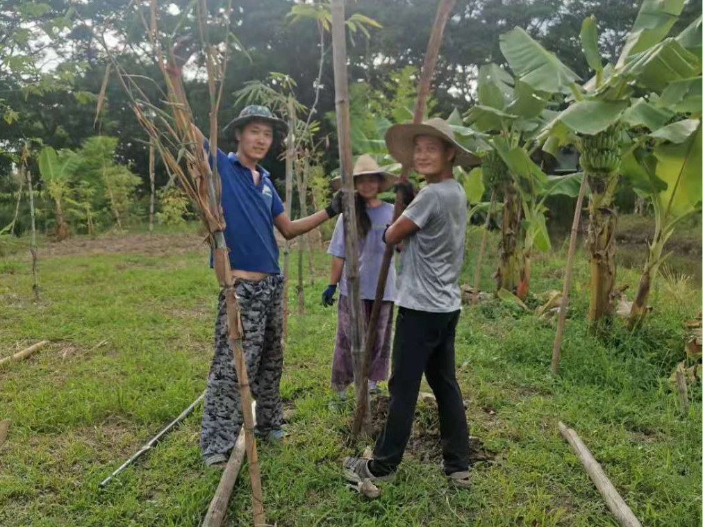 除了自主做事情,我們還兼顧到與當地工人們的融合,和他們一起種三角梅,種香蕉樹,24萊那片土地上一共種了一千多棵不同品種的香蕉樹,以後兄弟姐妹們來,會有吃不完的香蕉啦。 這兩天龍炮要蓋五間房子,輝一仰樂在建築工地幫忙埋柱子,抬排水管等,看著他們幹重體力活,心裡充滿了崇拜和愛憐之情,荷爾蒙也純純的散發出來!