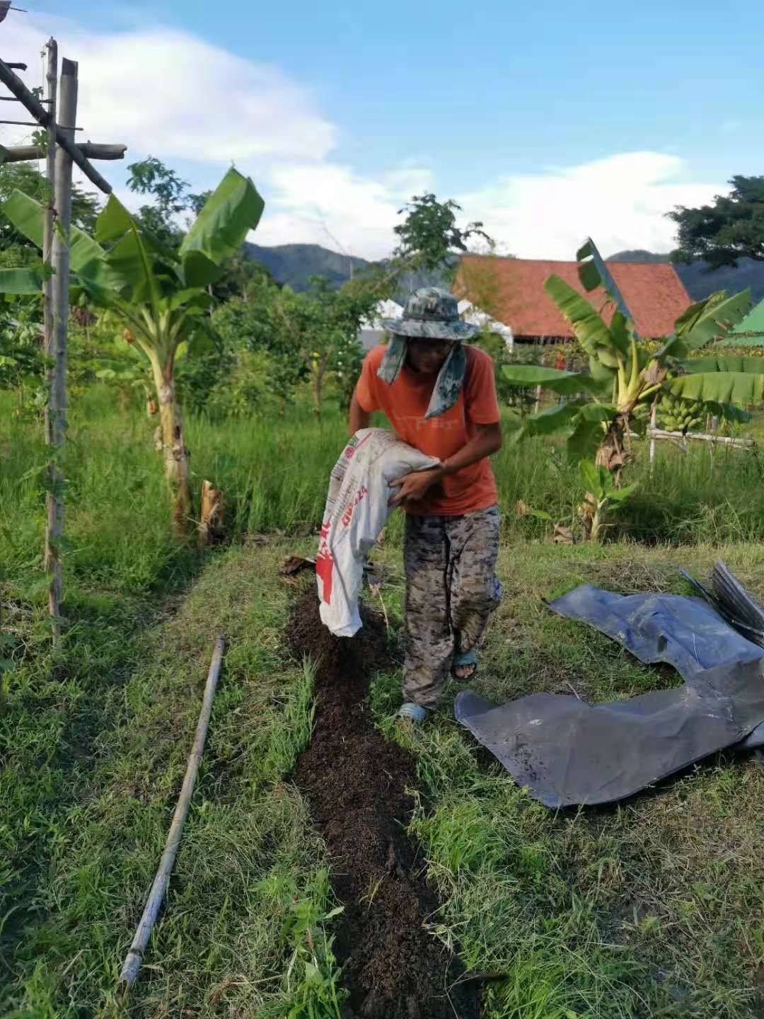 前幾天為了配合加國總院國際大家庭向政府彙報工作,同心輝一需要我們量化泰國家園一年做了多少工作,仰樂和我頓時傻了,什麼,幹活還要用數字計算自己幹了多少,可是幹完就忘了,從何數起呀! 我們滿院子跑著數,回想著,估算著,又在中國大哥的説明下,最後才算交了差。 受此影響前幾天我隨性記錄了育苗室的工作,10月10號給150株長春花苗換盆,50株虎皮蘭苗移至大盆(7盆),11號給扡插成活的37株紫色薄荷花,3棵雞蛋花樹,8株金苞花,6棵扶桑,5棵黃嬋花樹,以及籽播的31株浙江鳳仙花苗換土換盆。 12號給16棵百香果苗,22棵紅毛丹、荔枝、龍眼等果樹苗從小的育苗袋換進大盆中,給20多棵果苗施肥,把兩盆蘭花,22株矮牽牛,25株金錢樹苗移至大盆。 以前因為乾的活比較雜,一開始育苗室的活都是一點點抽時間做起來的,覺得沒必要做詳細介紹和記錄,隨後自由時間越來越多,沒想到記錄一下,發現育苗室也挺出活的,嘿嘿,開心!