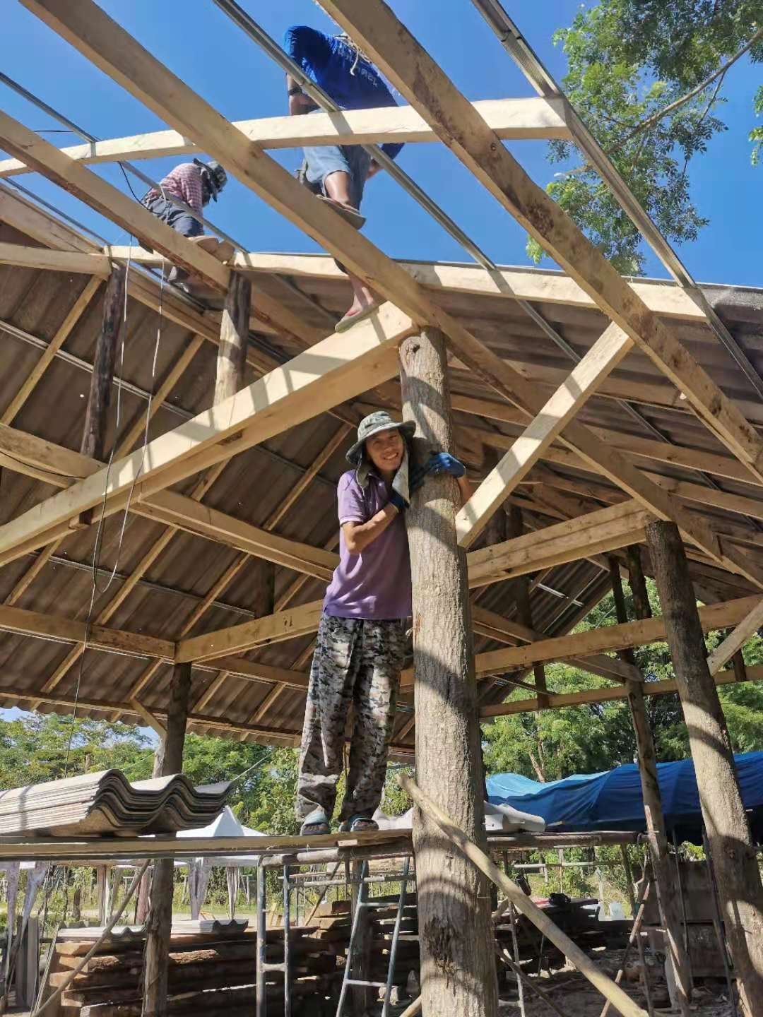 最近半月有四五天時間,仰樂和我在建築工地做小工,幫忙運瓦片,遞瓦片,搬木頭等。 給房子上頂的工作,大工們在屋頂比較辛苦,我們在下面打醬油閒了看看手機,干輕鬆的活感覺像放假了一樣。