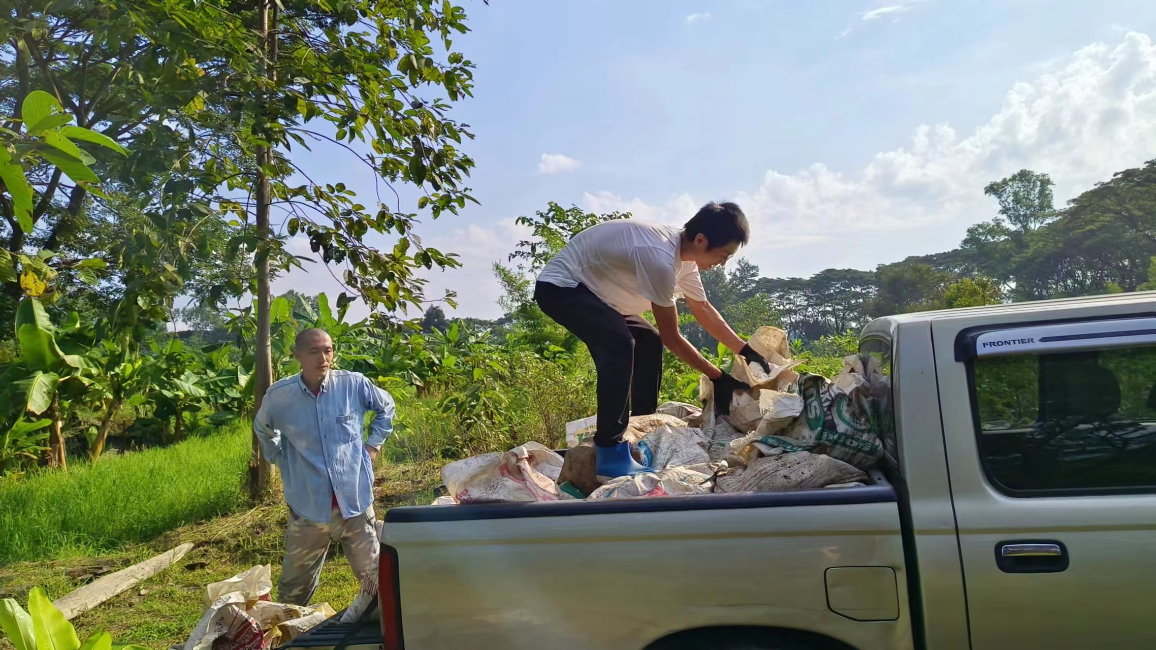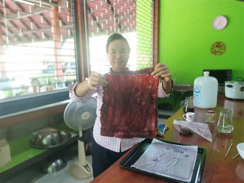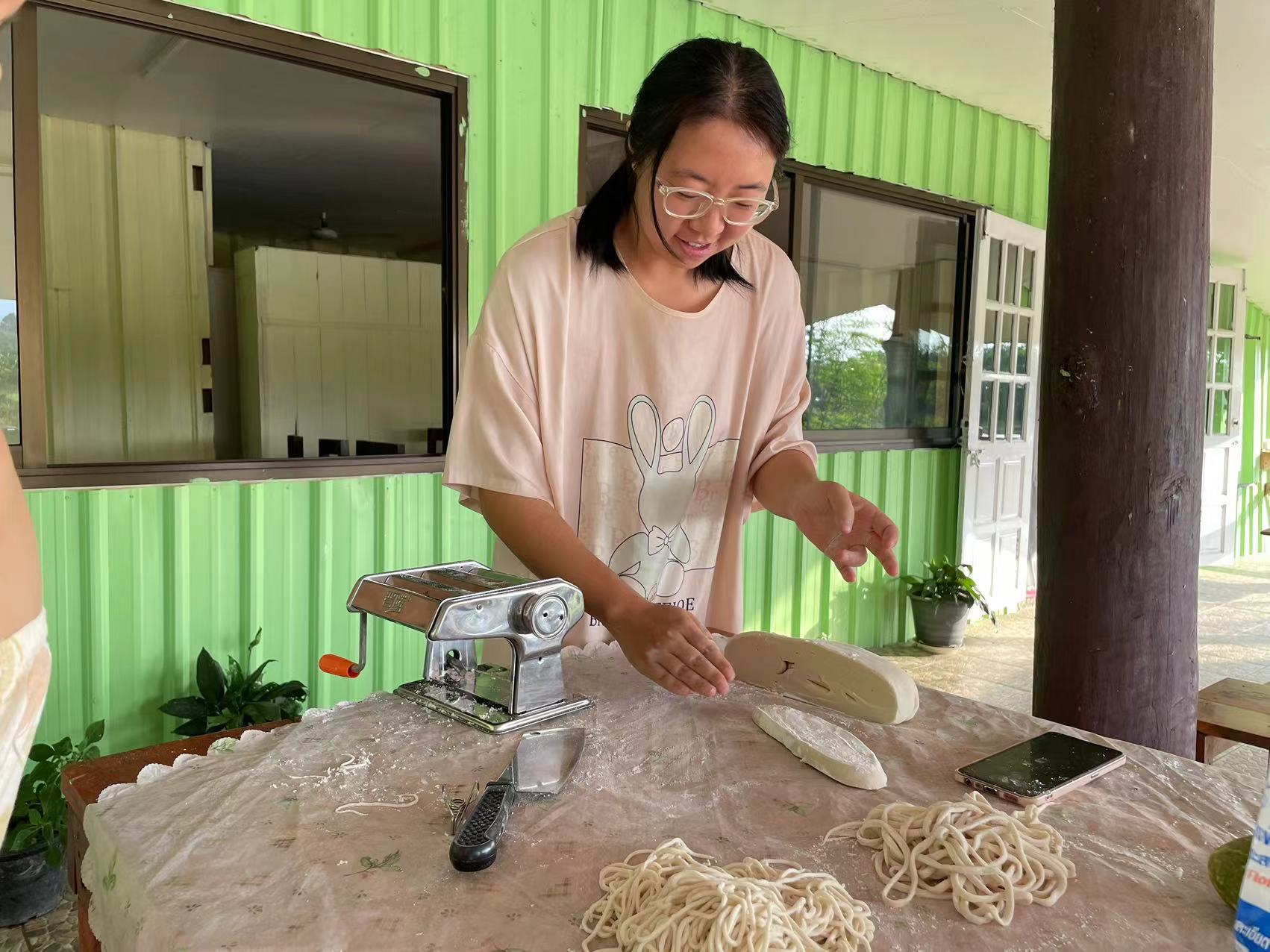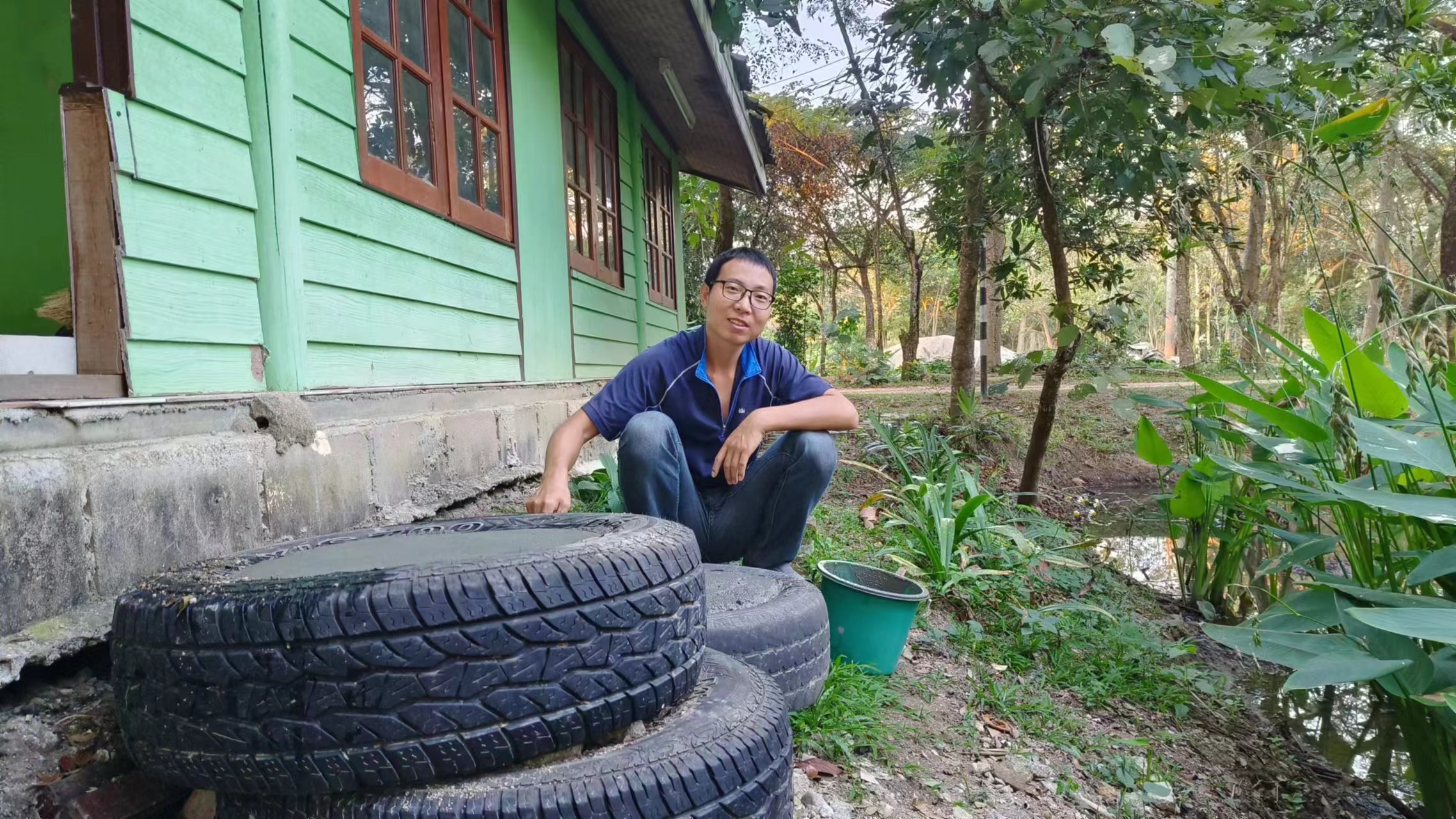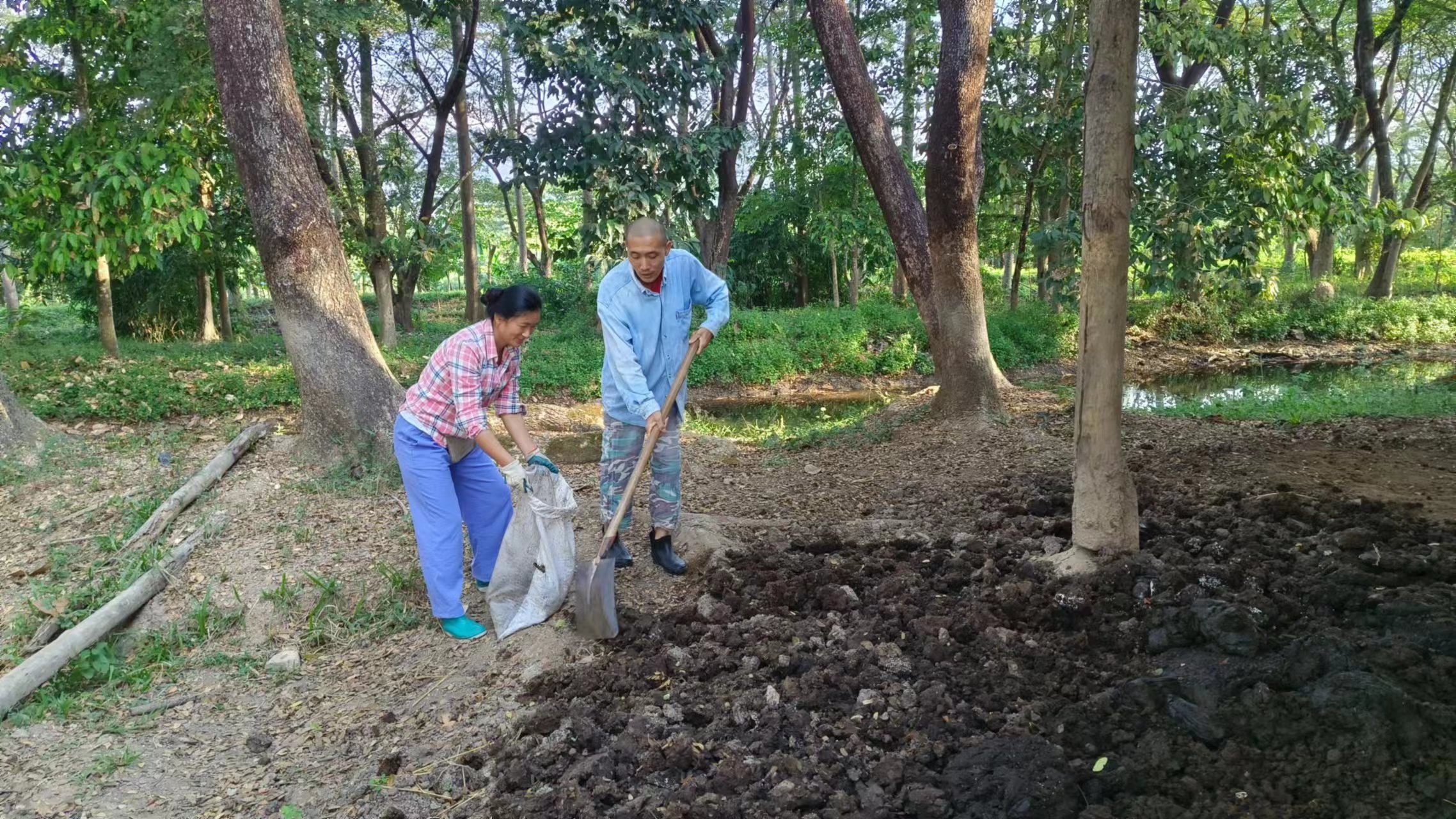 回來後見到龍袍格外想念親切,大佛給我們送了方便麵和各種零食和生活用品,幾位朱拉隆功大學的老師學生跟龍袍來園子看土地,他們打算以後在這裡實驗種植水稻。 龍袍讓拖拉機耕出了更多可以種菜的土地,我們今天一起去拉牛糞,仰樂準備在大片地里穴施拌牛糞種上南瓜冬瓜絲瓜苗。 逸仙仰樂收拾餐廳附近堆積閑置的木頭竹子,拉去芒果園給大氣做生態種植床用,也把功德園生活環境清理得更加乾淨整潔,曲丹在慧光教練的説明下拿到了泰國駕照,泰國家園又多了一位司機。 玉林姐姐用洛神花研發出了果丹皮,味道口感都不錯,適合當小零食吃。