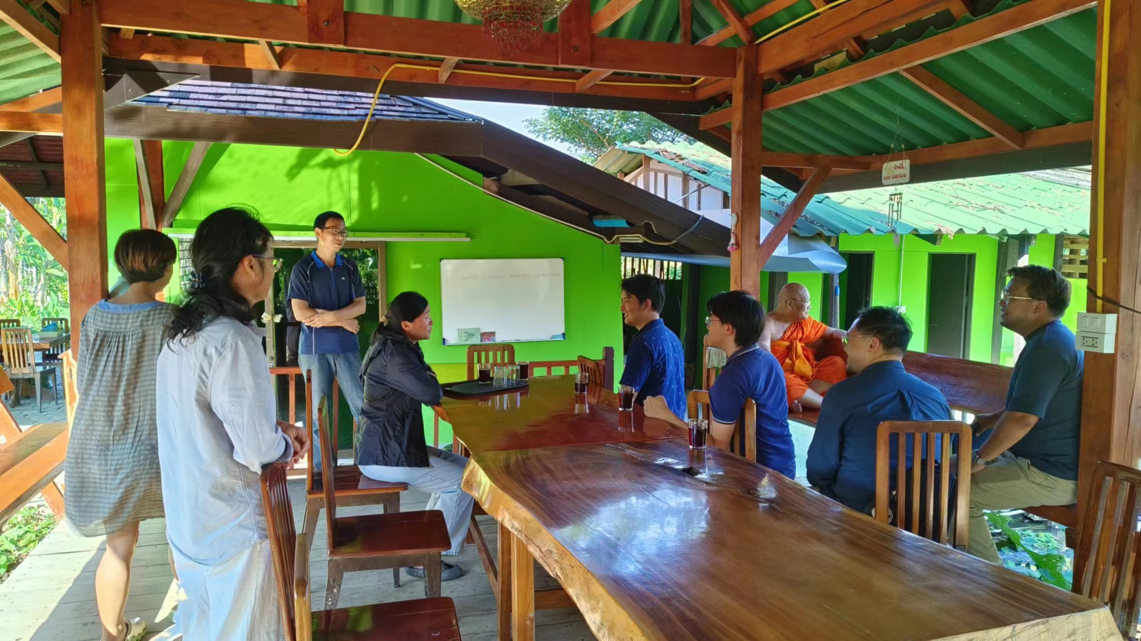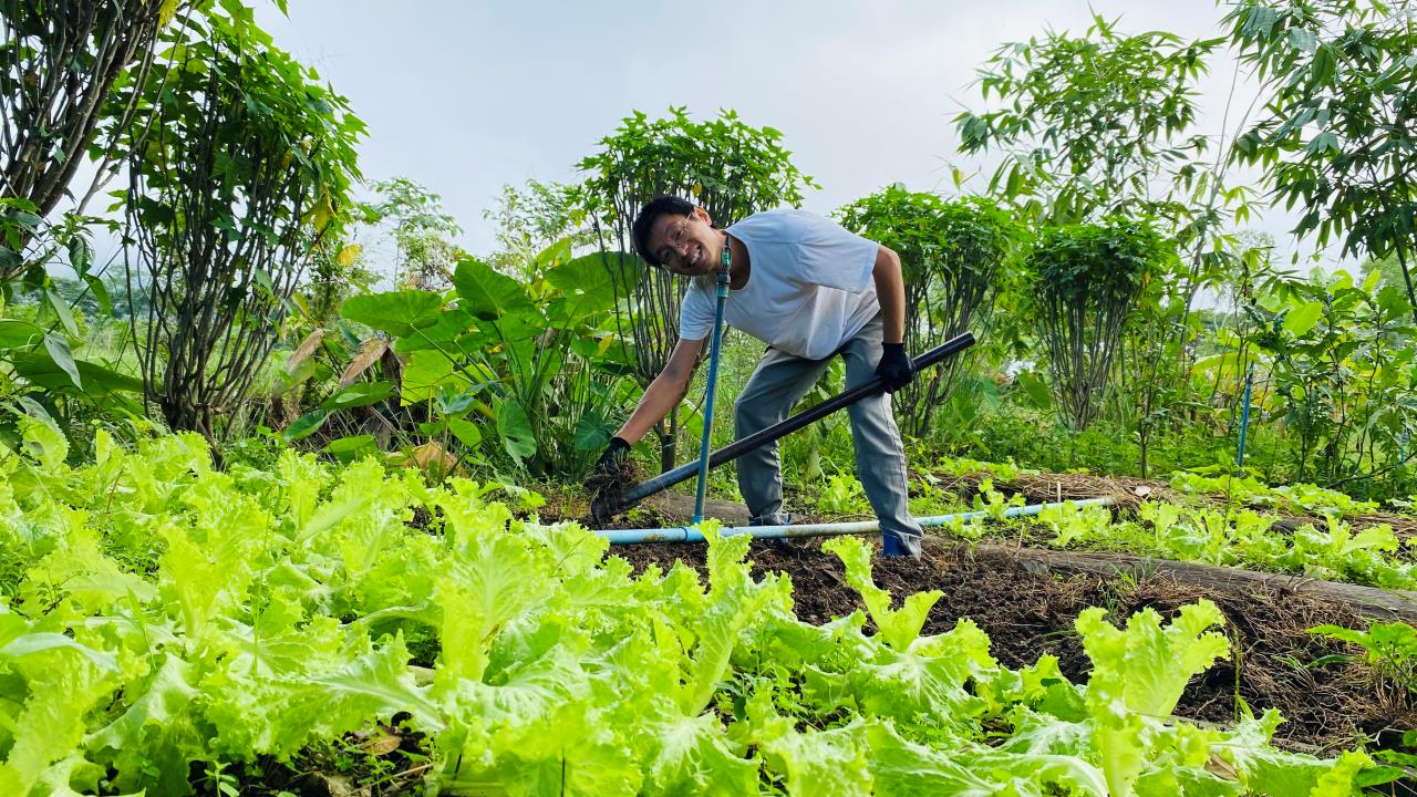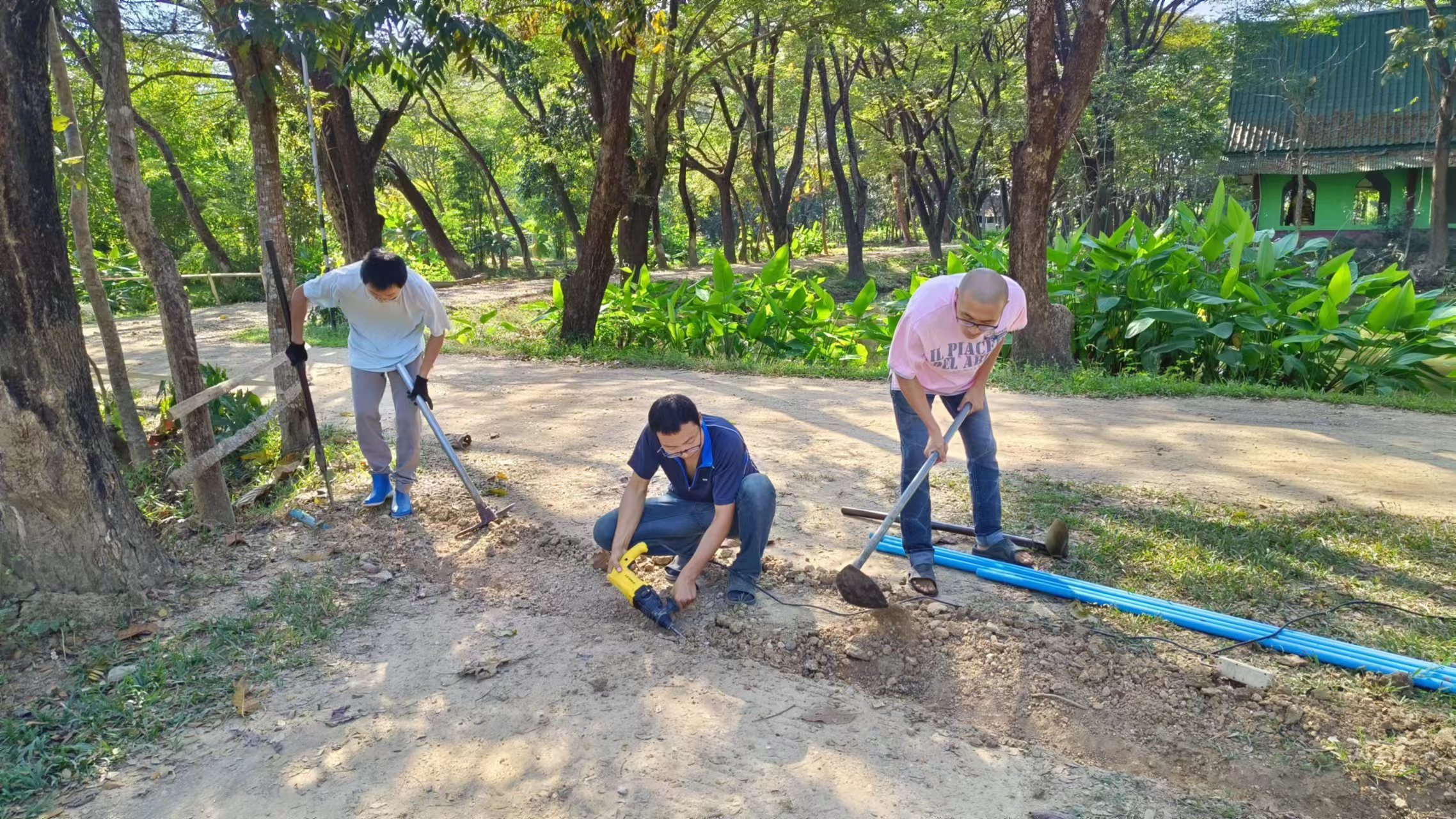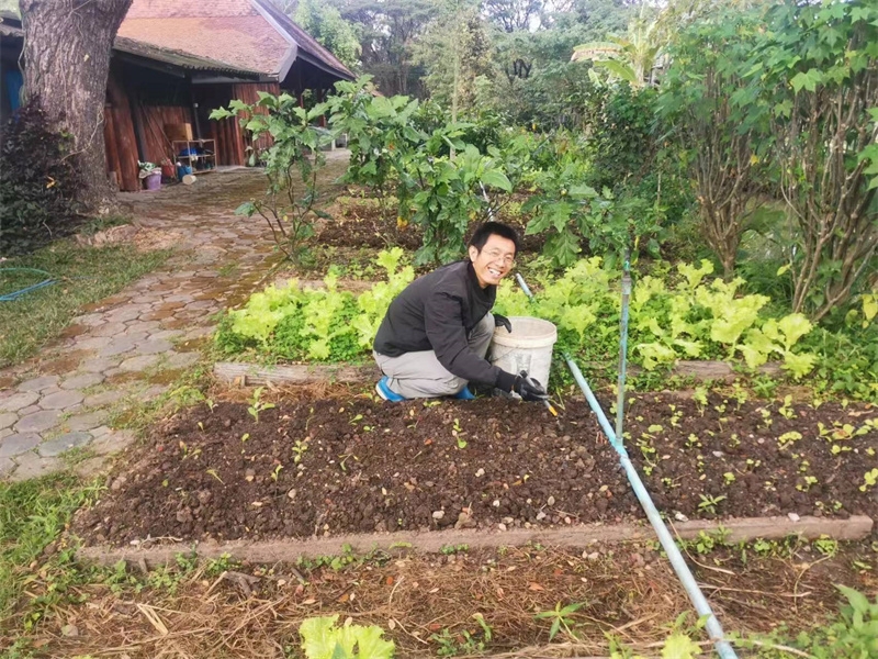 仰樂千姿去參加會議的一個星期,曲丹負責菜地工作,移栽了韭菜小白菜和各種瓜苗,嬌娥負責管理花園,拔草,與百川一起為花卉修剪枝條,大家還一起收穫了去年種植的紅小豆。 慧光定單最多,維修熱水器、燈具和門,打撈水裡雜木,做水邊欄杆,幫百川逸仙加工出了好用的工作桌,與院裡工人一起檢查水管,解決了每棟房的用水問題,購買安置路由器和網線,泰國家園用上了wifi,除此之外還幫大家列印了八百理念和英文學習資料。 芒果園戒鏡照料西紅柿長勢喜人,黃瓜已經結果,大氣專門培養木瓜之餘又打算試種一些花生,家園裡一切井然有序,祥和寧靜。
