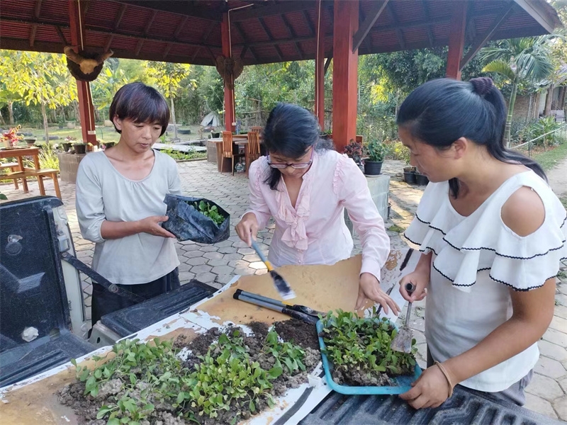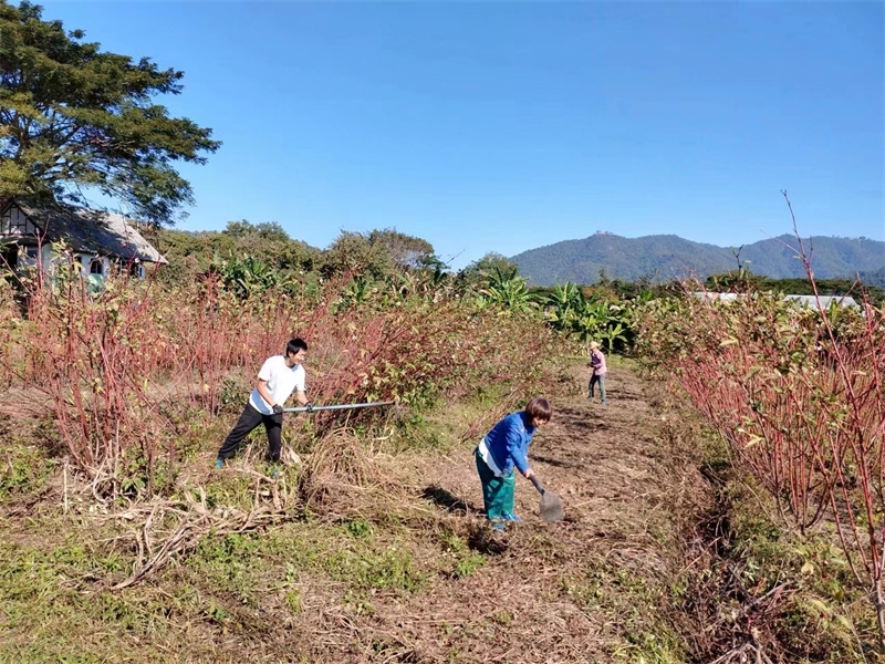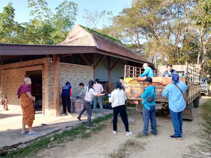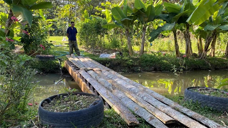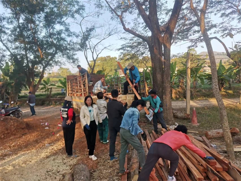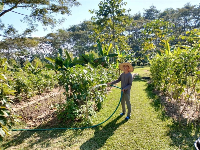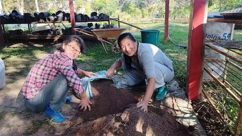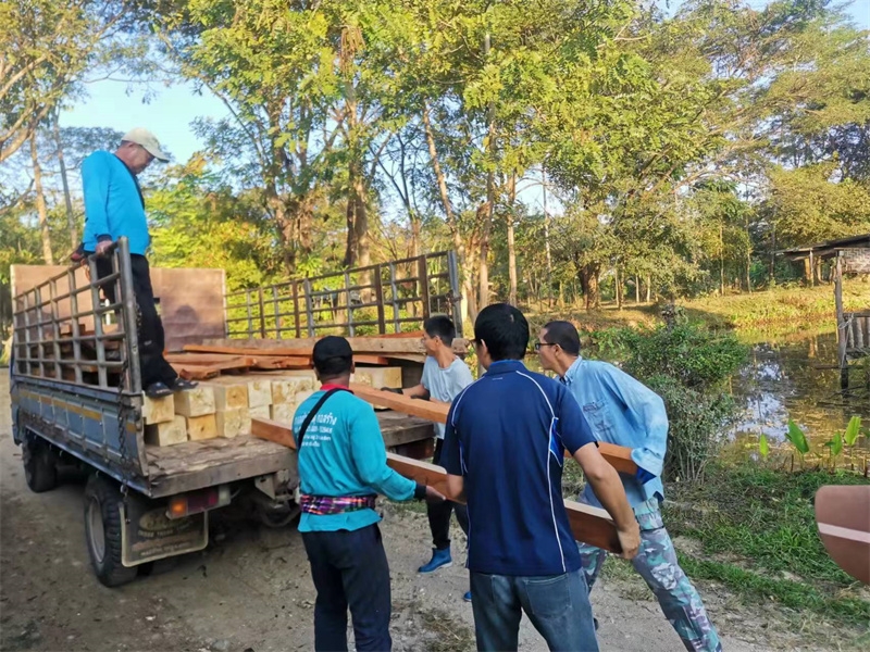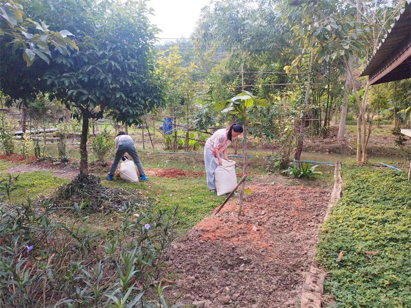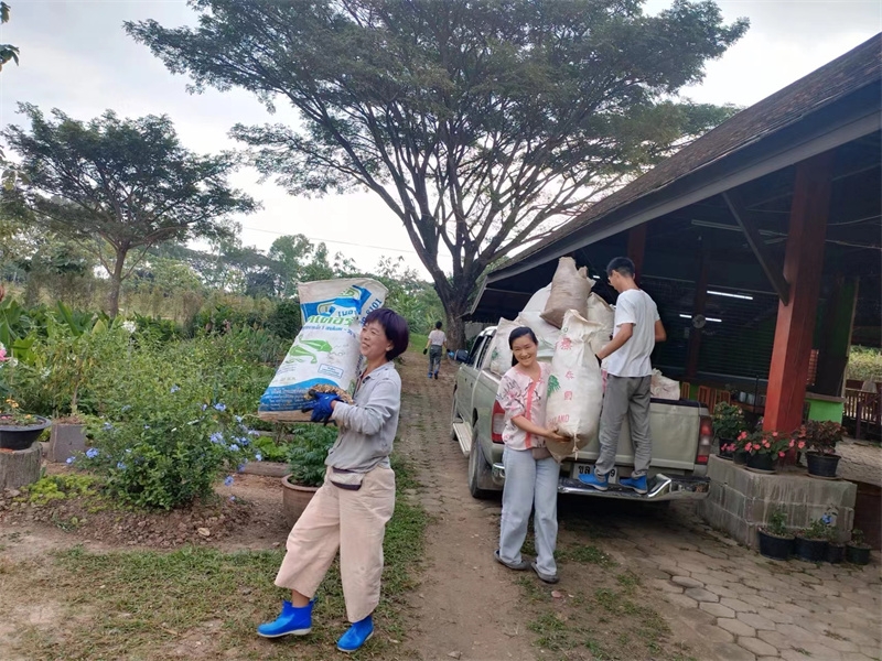 最近院子裡工人們每天在加工木材,出產了大量的木屑,仰樂曲丹嬌娥百川用袋子收集來,一些拉到芒果園給將來的堆肥廁所用,一部分給各處花園做了厚厚的覆蓋,還有一些給菜地做覆蓋,用來保濕和抑制雜草生長。 菜地里每天需要日常維護:除草,澆水,施肥,綁架,剪枝,採摘,移苗等,除此之外大家裝了一車牛糞,就近收集雜草,一層牛糞一層乾草,在育苗室附近做了一堆有機肥,為將來育苗準備上肥土。 工人們加工好的木板和存放的瓷磚要拉到清邁寺廟蓋房子,我們和工人一起裝車,泰國人簡單淳樸的做事方式把我們逗笑了。