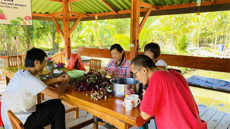 為了迎接龍袍的到來,大家集體勞動一起去芒果園割草,清理美化芒果園的整體環境。 仰樂不小心用割草機刀片打到小石子,小石子飛到腿上,在右腿膝蓋下方處打出了一個小坑,去醫院包紮,縫了兩針。 一周后,右腿剛好,仰樂著急忙慌修理通往菜地的橋,把橋上晃動的木板反過來,想用腳使勁把木板踩穩當,結果卻踩到了之前釘在木板上的長釘子上。 心疼之餘,不由感歎仰樂為啥總受傷,開始了對仰樂受到懲罰的各種解讀,甚至有點像批鬥“大會”,總之大家勸他凡事不要著急,要穩妥,要有序。 陪仰樂去醫院,看著護士用剪刀剪開並清理很深的傷口,還有那撕心裂肺的叫聲,心裡很難過,不願意看到這樣的情況發生,不由反思自己的錯誤,自己之前對院長有過指責埋怨,說話語氣也不好,其實做院長非常不容易,讓誰做泰國家園院長,也不見得比仰樂做得好,尤其是在國外開拓階段,情況複雜,要考慮思考操心的事情更多,凡事親力親為, 有些活還需要一遍遍教給大家,帶著大家一起幹,非常得不容易。 以後千姿對院長說話要更溫柔些冷靜些,盡量不給院長添堵,願院長越來越有信心,越來越舒心,越來越遊刃有餘。