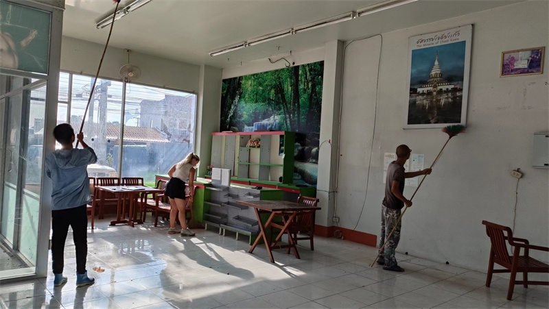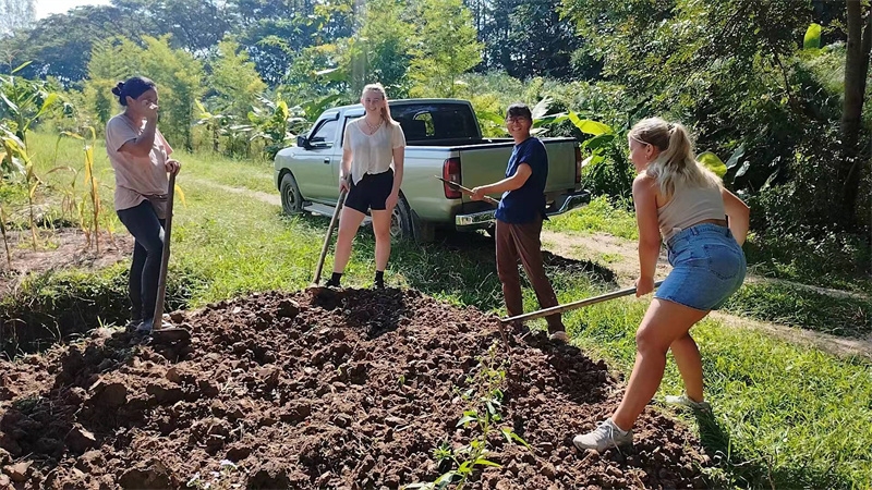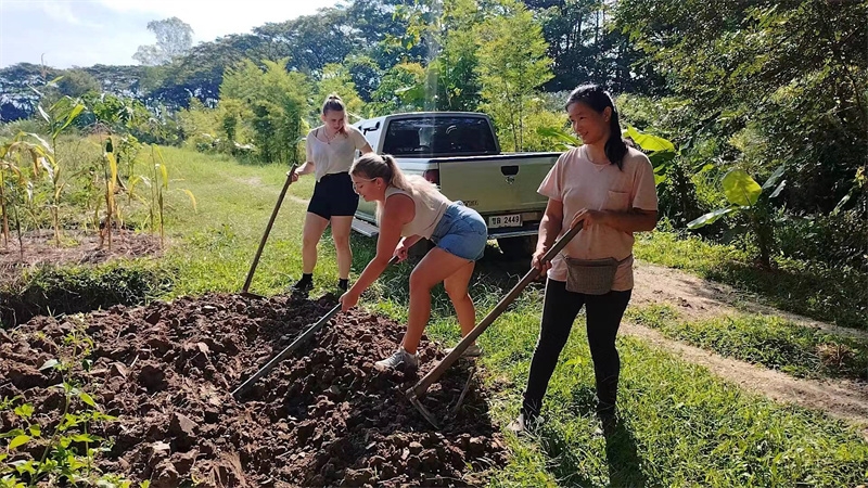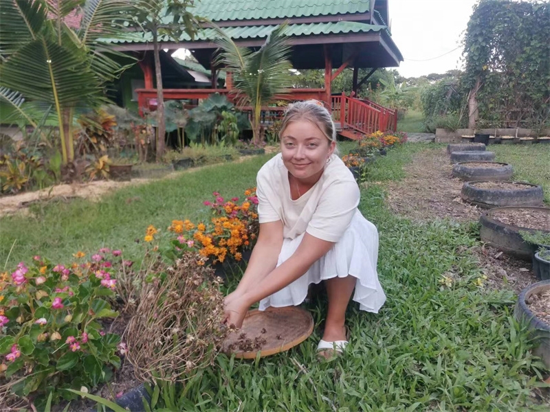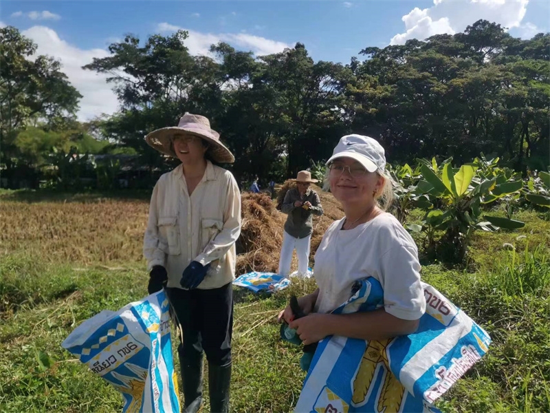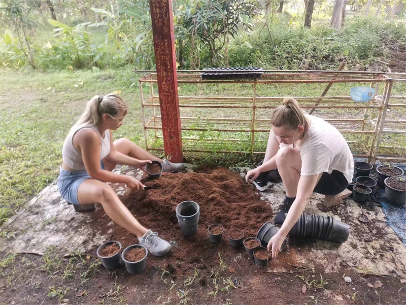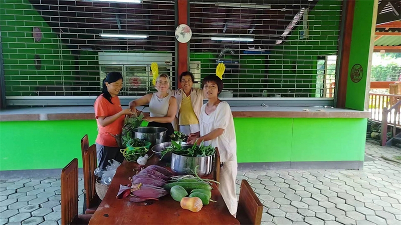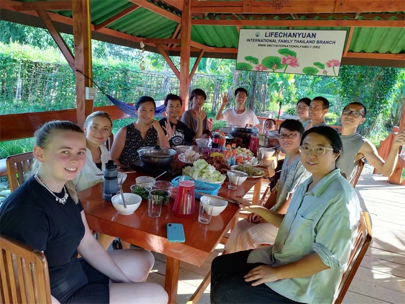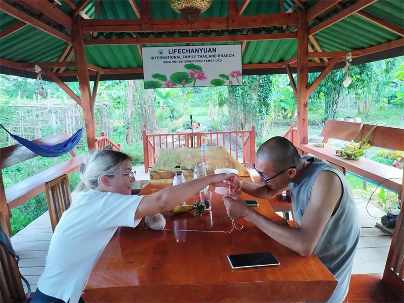 這些天我們接待了兩位志願者,一位是來自荷蘭的姑娘Medeilene ,另一位是來自瑞士的姑娘Aline,兩位都是從志願者網站worldpackers看到泰國家園的資訊照片,並被我們的生活氛圍以及優美的環境吸引而來。 荷蘭姑娘只住了兩晚,和我們一起割水稻,參觀寺廟八層,短短兩天的體驗,也讓她對我們有了美好的印象,在網站上給了五星好評,並推薦其他志願者前來體驗。 瑞士女孩和我們一起生活了一周,這位姑娘不僅外表美麗,還特別懂事,言談溫婉優雅,做事勤快得體,深受大家喜愛。 和兩位姑娘一起觀看介紹家園生活模式的視頻,聊天中也隨機隨緣與她們談論我們的理念和文化。