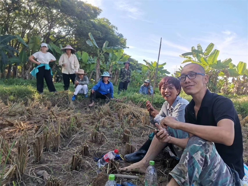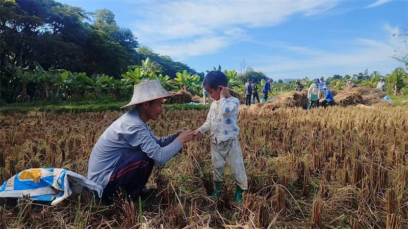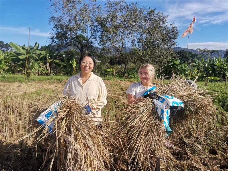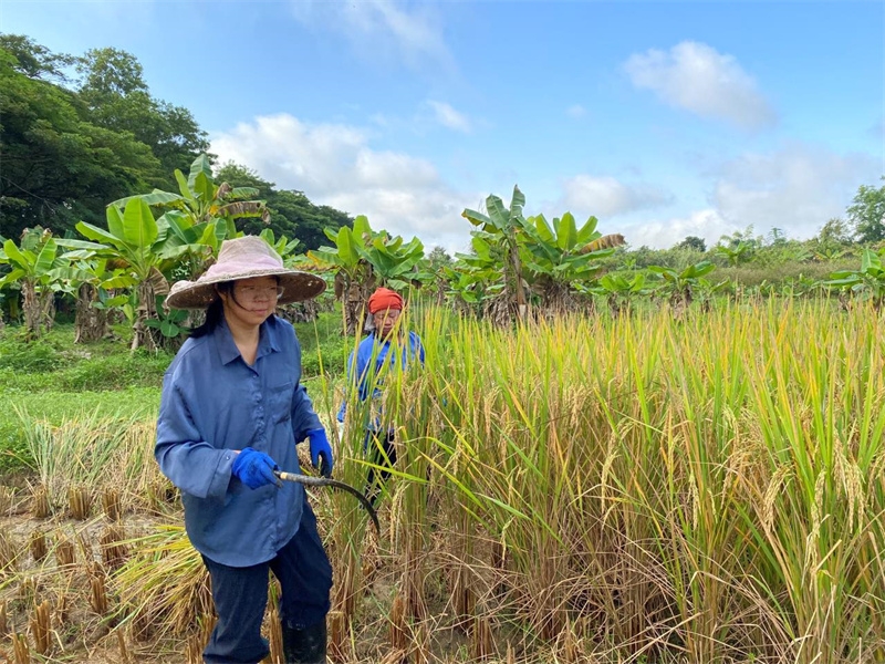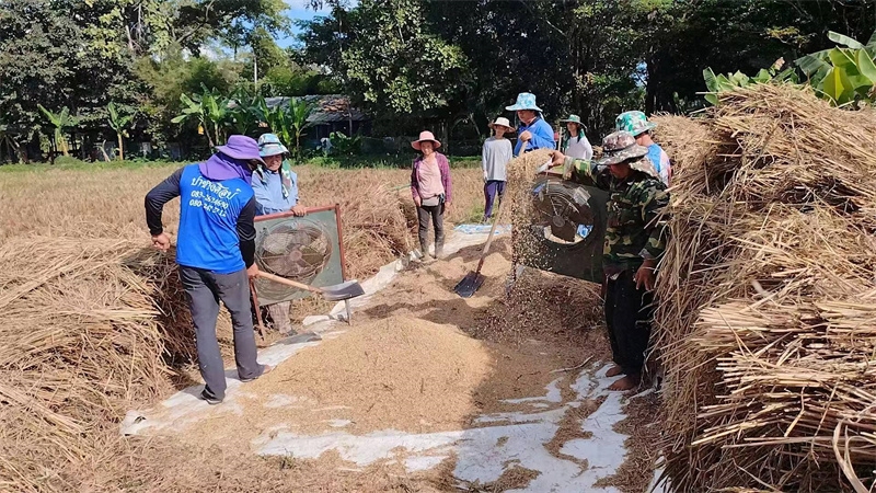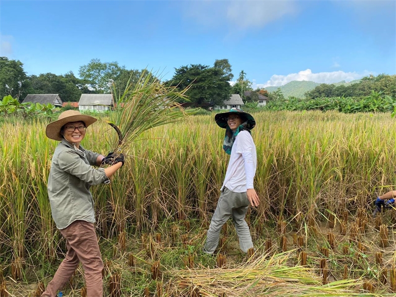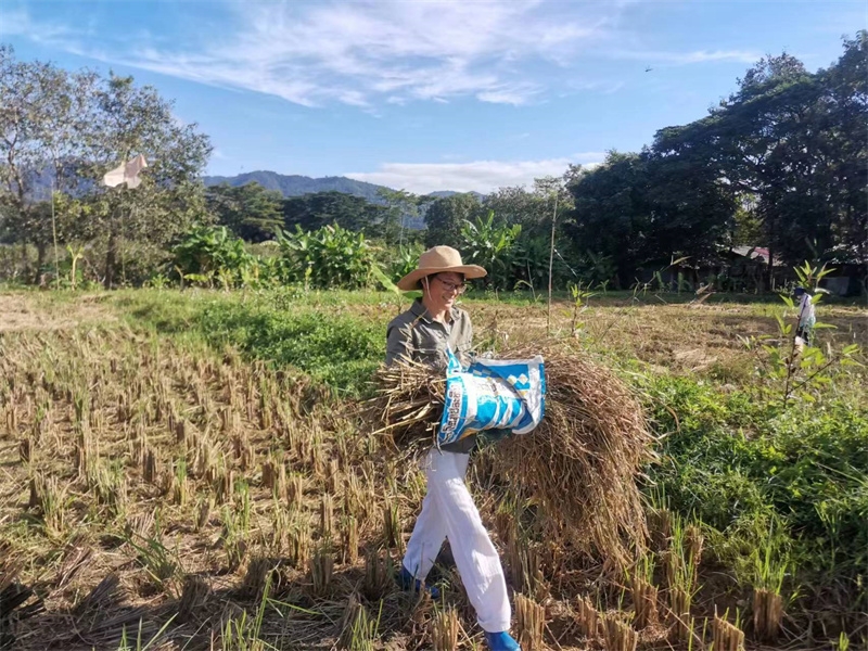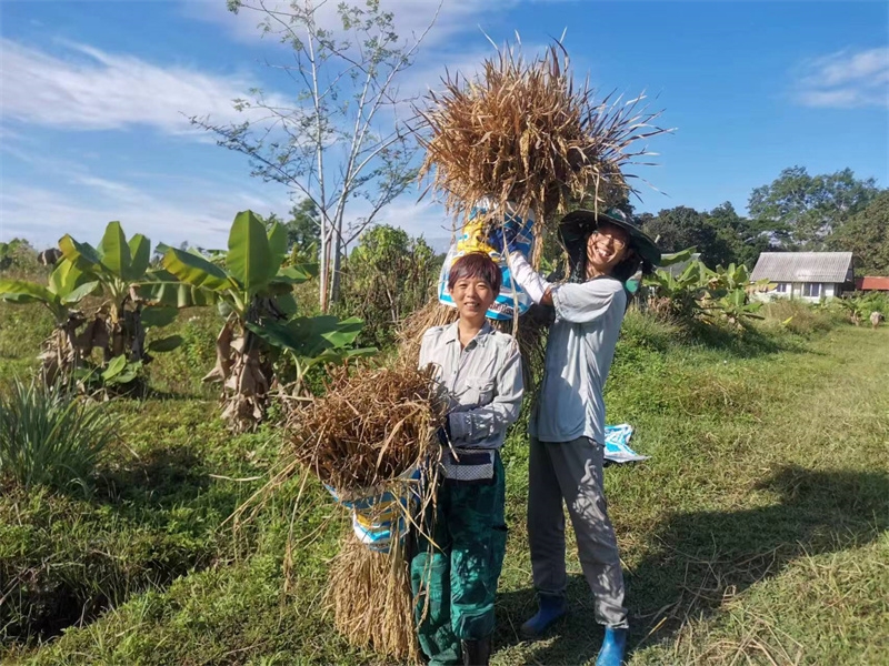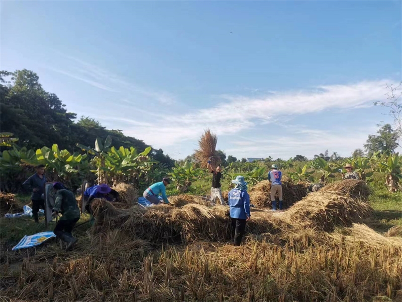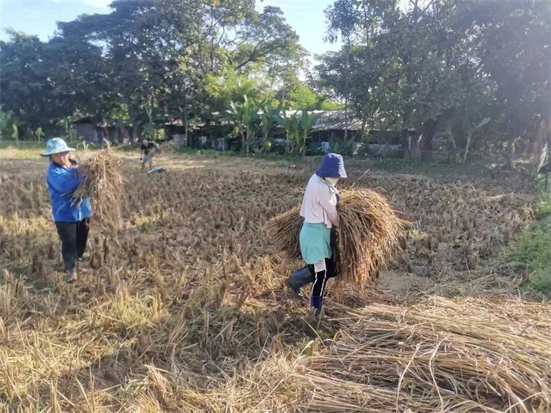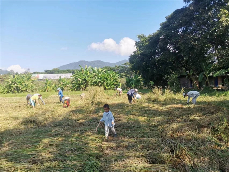 快樂自在的日子一天天過得很快,不知什麼時候房前綠油油的稻田變成了黃澄澄的色彩,配上藍天白雲青山綠竹,猶如一副絢麗又樸實的水彩畫。 龍袍在自己的地里也種植了幾畝水稻,這些天我們和工人們一起收割水稻:大家每人一把小鐮刀,把稻子割倒放在陽光下暴曬,兩天后再把稻子收集在一處,工人們手工甩稻子脫粒,我們幫著抱稻子,大家體驗了幾天農忙時期的激情燃燒,也再次感受到禪院草們勤奮吃苦耐勞的品質。