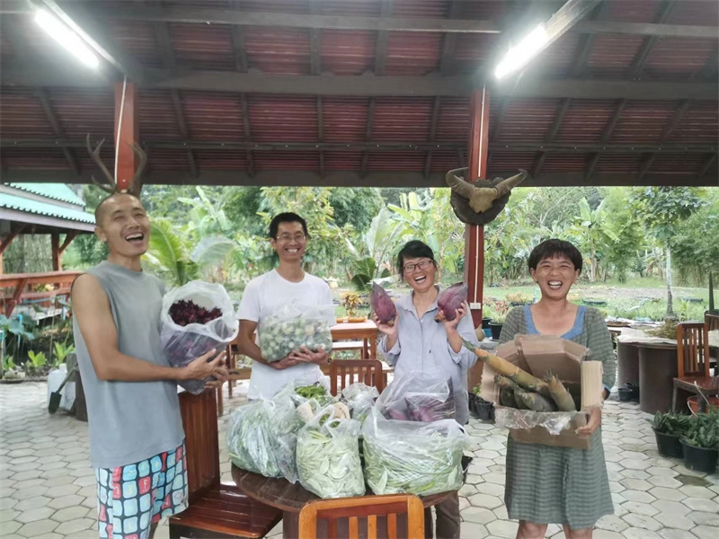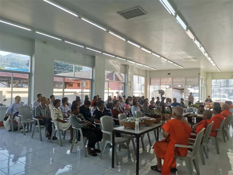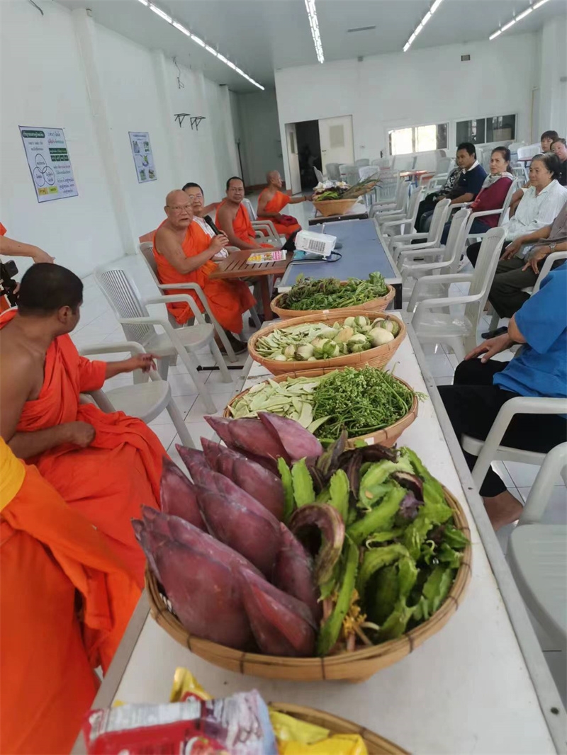 泰國的上一任國王拉瑪九世在農業上做出了突出的貢獻,他在世時宣導並帶領泰國農民實行永續農耕自給自足,受到廣大人民的擁護和愛戴。 龍袍也是九世國王的追隨者,前幾天他邀請專業人士來鎮上做拉瑪九世可持續農耕推廣會,我們前兩天來會議廳打掃衛生,會議當天也被龍袍邀請前來學習。 會上驚喜的發現,我們前一天採摘送給龍袍的蔬菜竟然一籃籃被擺放在主席臺桌子上,向大家展覽,龍袍用我們在田園裡的勞動成果直觀為老百姓樹立榜樣,鼓勵大家用勤勞的雙手種出自己所需的食物。 我們感覺特有面子,被肯定讚賞之餘更受鼓勵,再接再厲,以後種出更多的瓜果蔬菜。