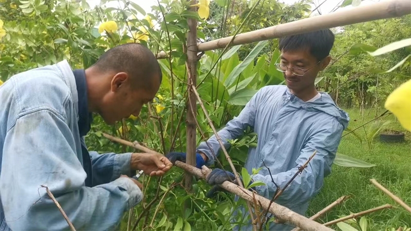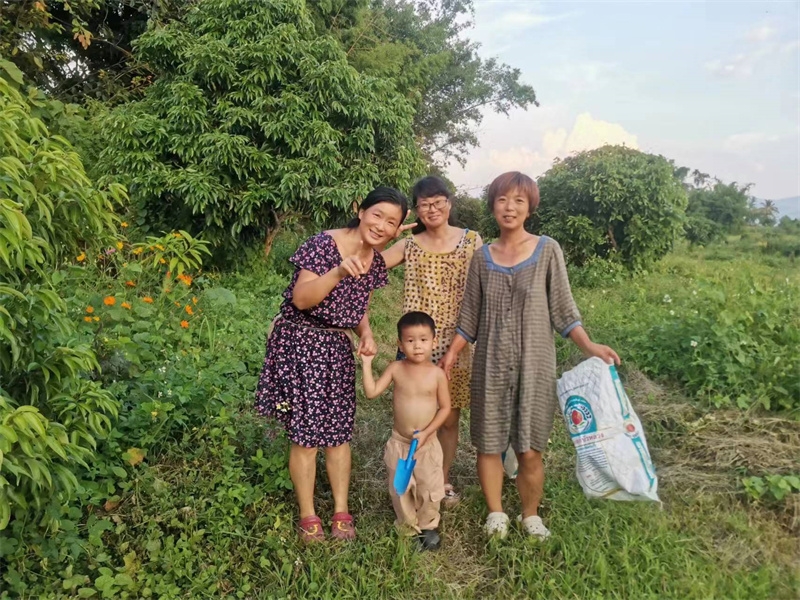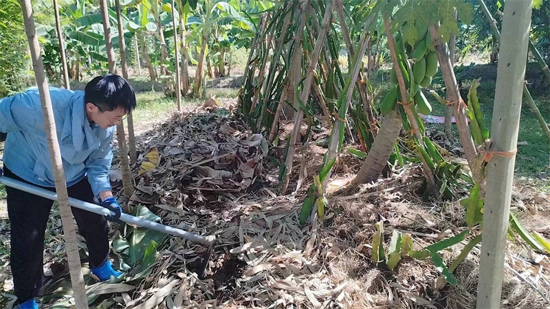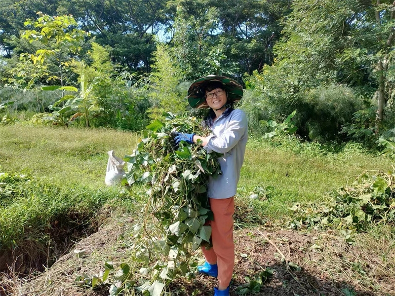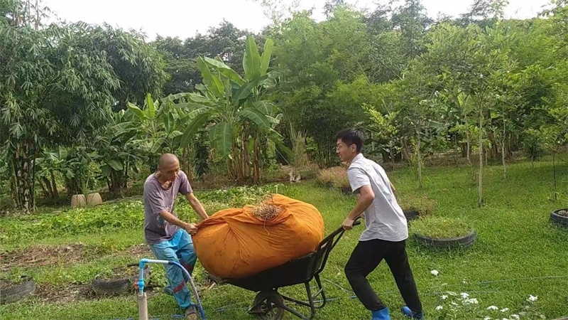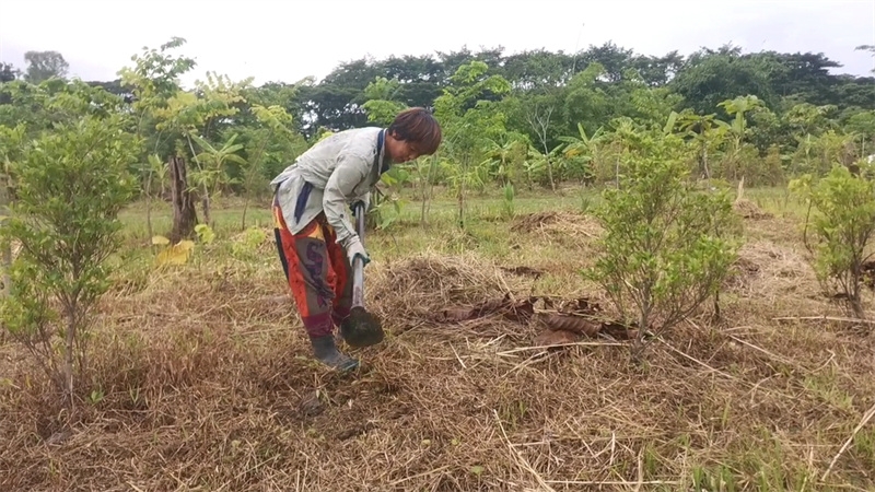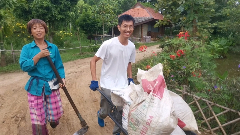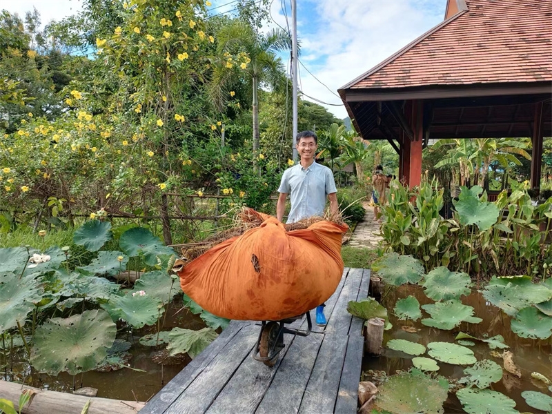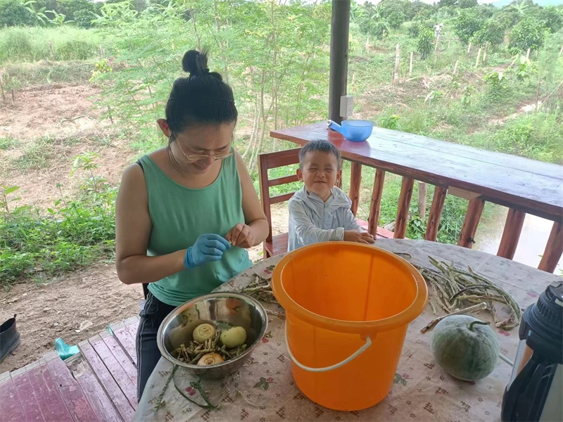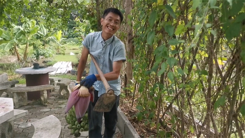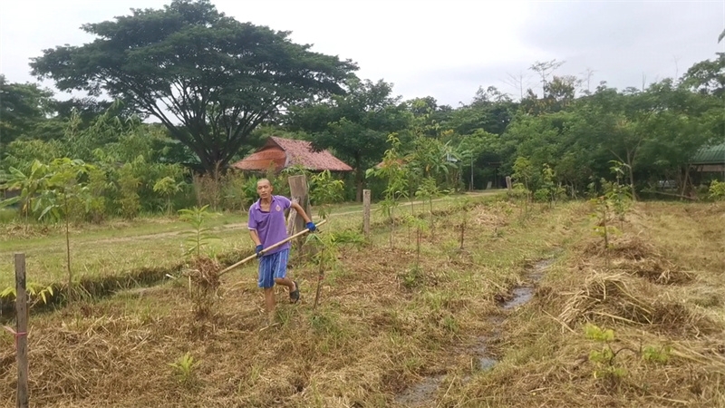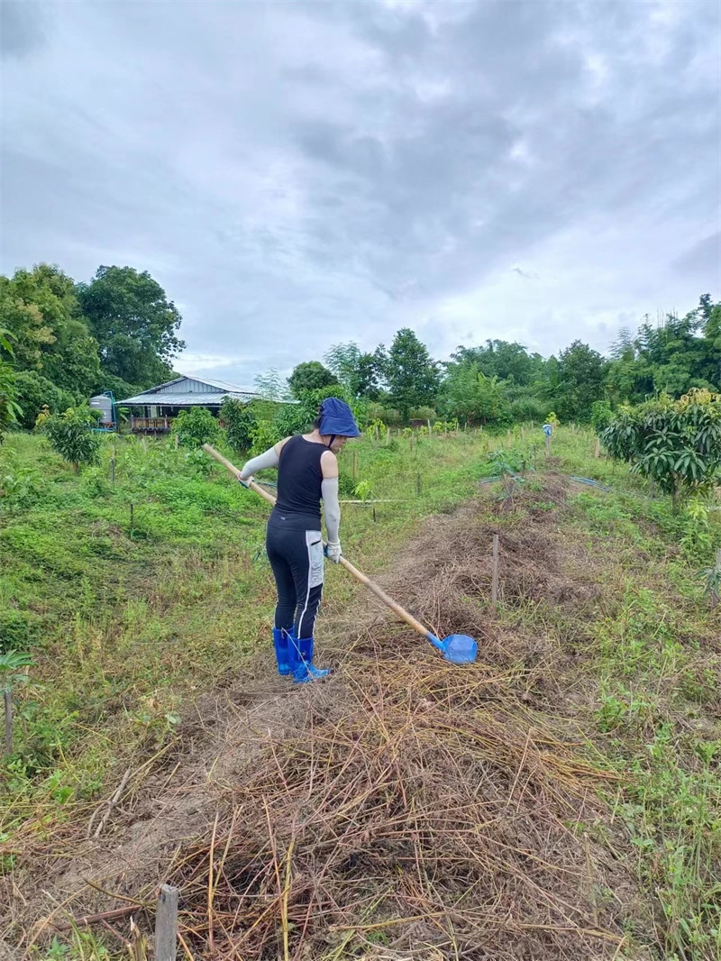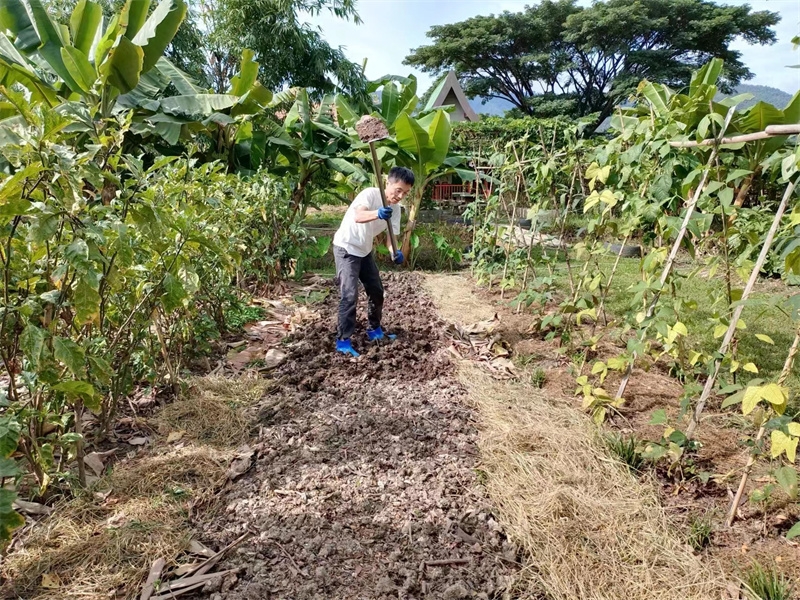 芒果園三位親人帶著小登登,除草開荒種植了香蕉樹,深挖製作了三個生態種植床,盡情的做著自己喜歡的生態種植,很開心崖倩和孩子都適應並喜歡上了泰國家園的生活。