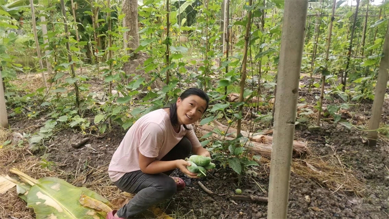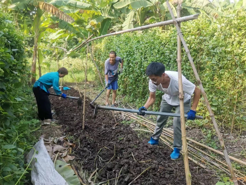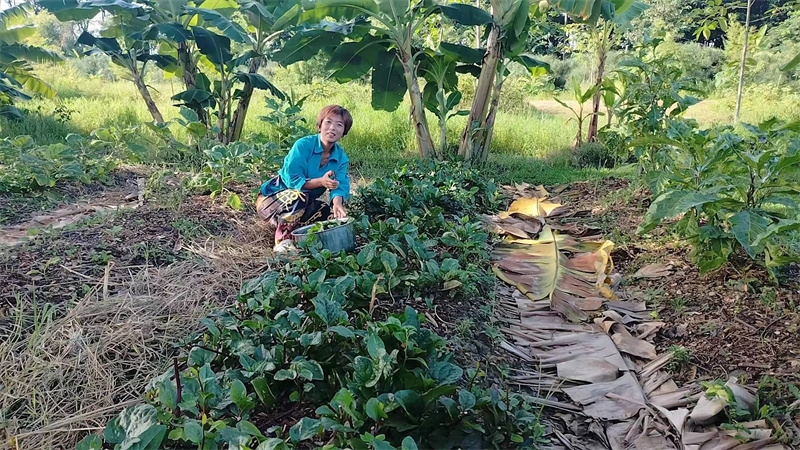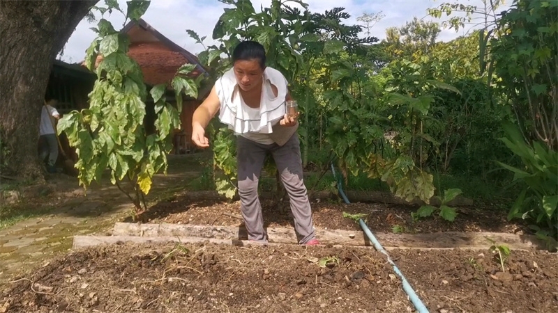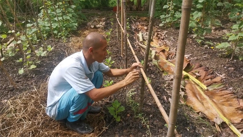 這些天仰樂帶著曲丹嬌娥兩位幫手摟了大量的雜草,給幾塊茄子地和橋邊菜地再次做了覆蓋; 他們運肥料翻地,種了豆角、空心菜和玉米。 為了擴大蔬菜種植面積,三位在大草原邊的高地上刨坑拌肥做覆蓋,播下了絲瓜和冬瓜種。