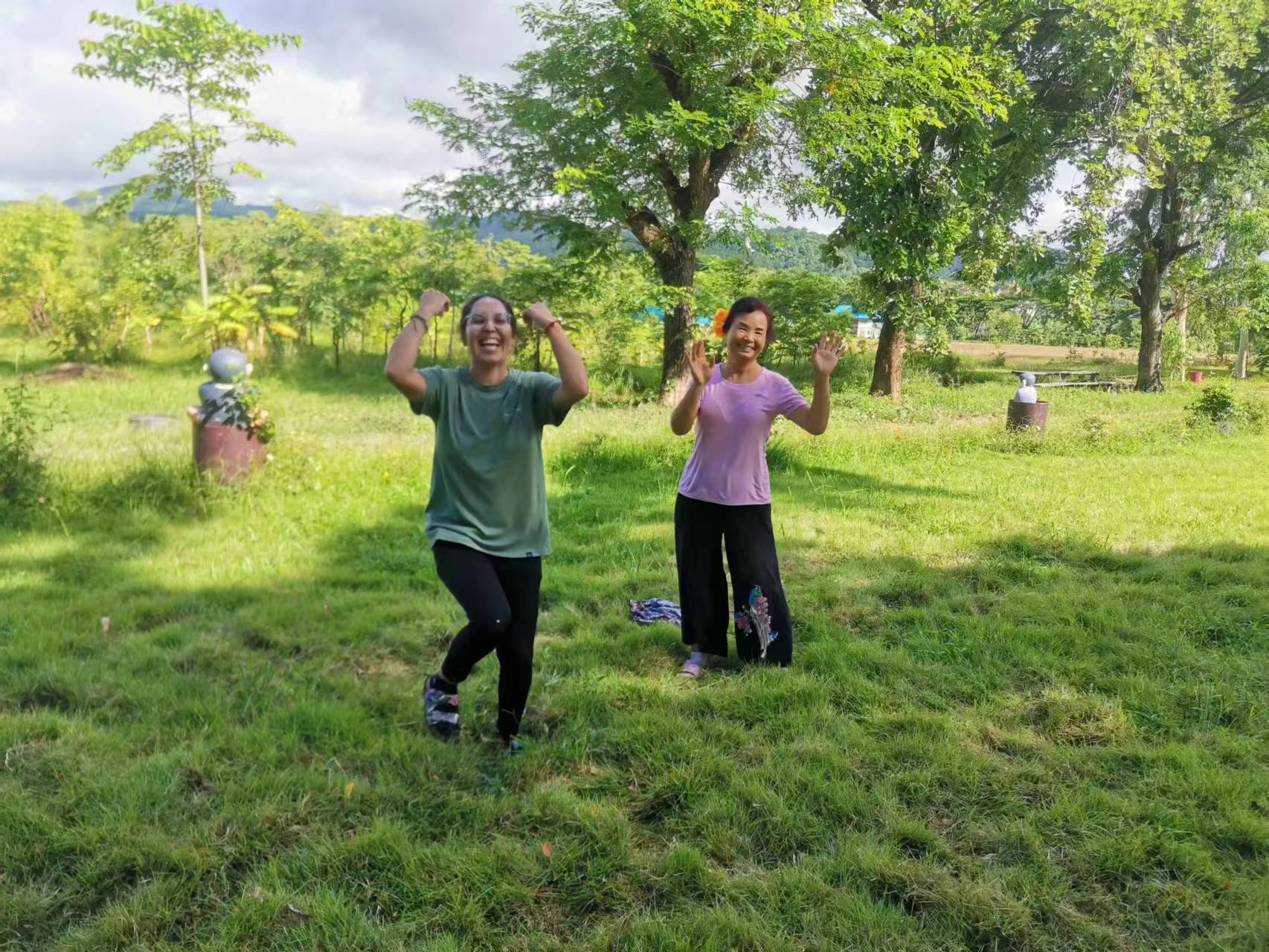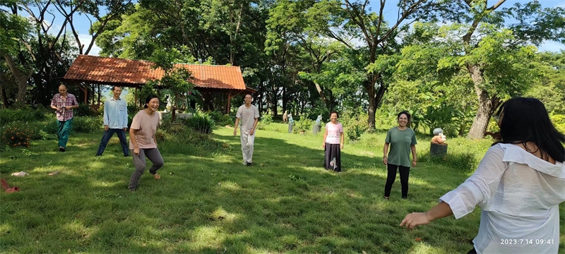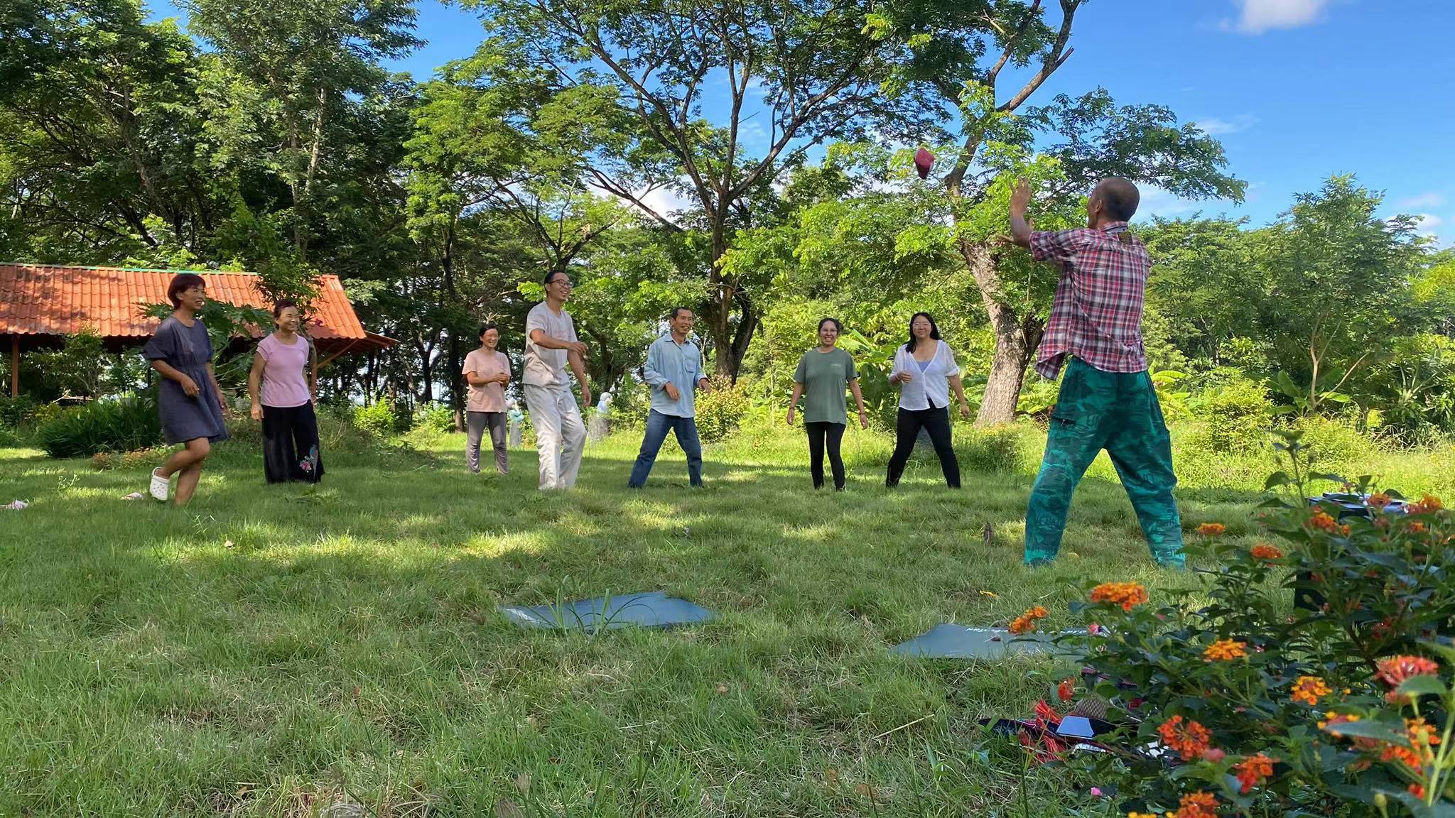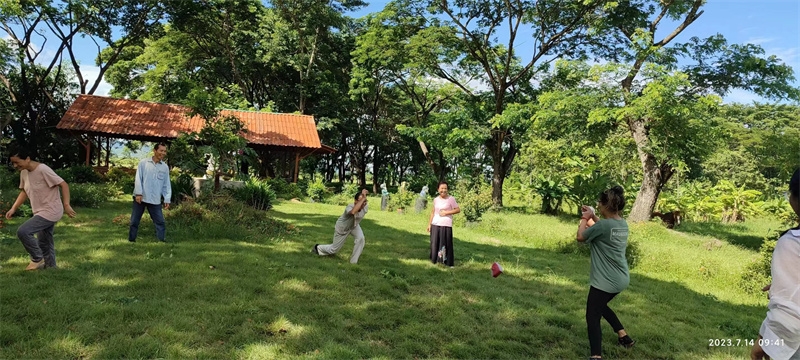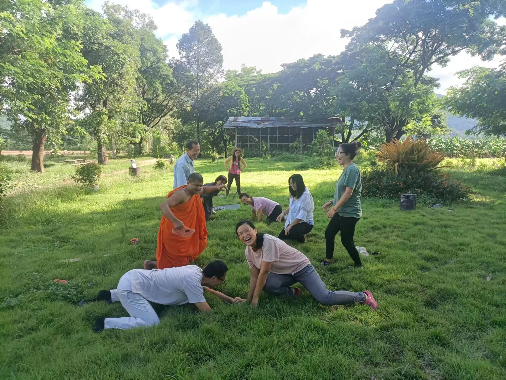繼六月泰國家園首次遊戲活動後,七月份的遊戲活動由仰樂設計主持,此次遊戲除了泰國八仙,阿男和尚和智利女孩Maria也參與了。 大家一起玩了搶鞋子,丟沙包,找出帶頭大哥,解九連環,數字炸彈,打羽毛球,運氣球,吃黃瓜等遊戲,期間Maria還帶大家隨意跳起了熱情歡快的拉丁舞。 藍天白雲青草地,旁邊馬兒悠閒相伴,一群孩子在開心地遊戲玩耍,感謝仰樂在工作之餘想點子,為大家設計和操辦有趣的遊戲,家園模式的優勢越來越得到彰顯,家園生活的快樂也傳播給更多前來體驗的友人。