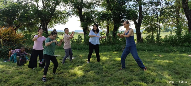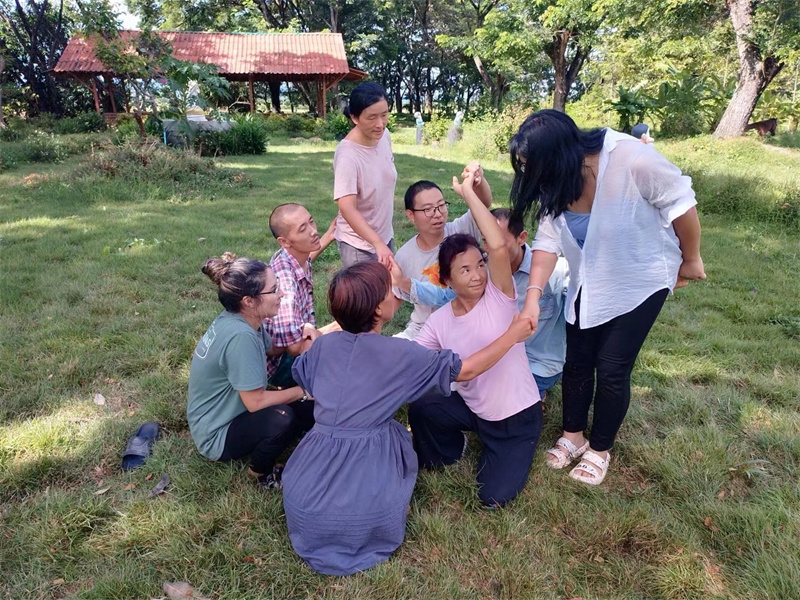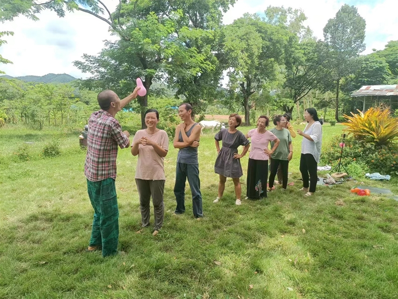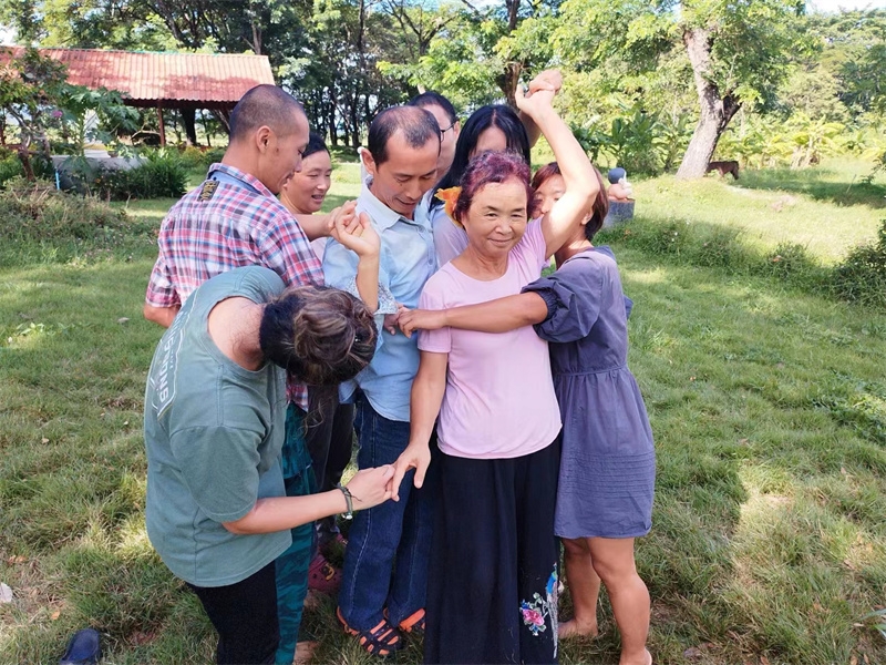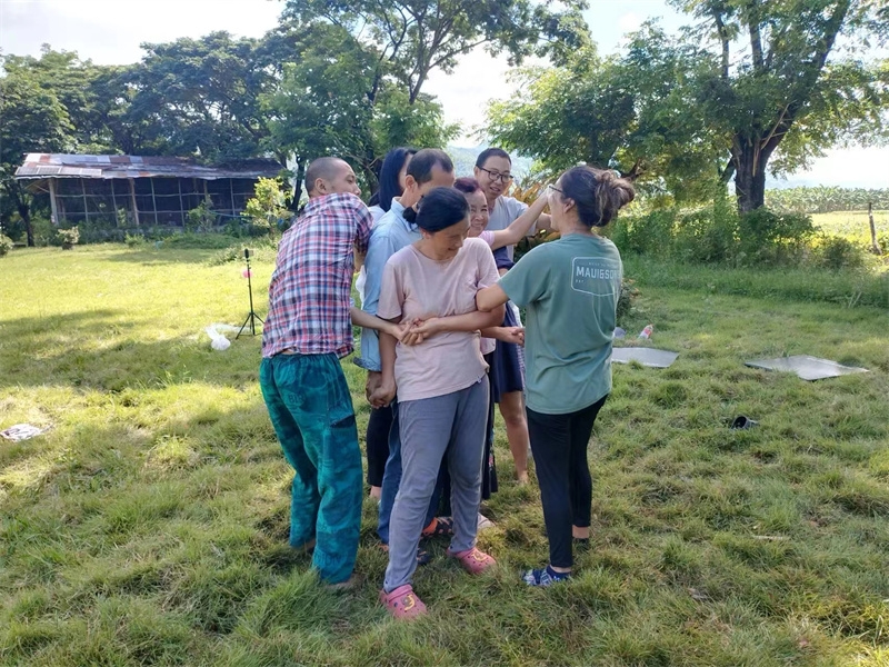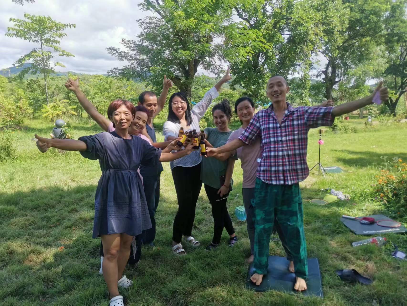 繼六月泰國家園首次遊戲活動後,七月份的遊戲活動由仰樂設計主持,此次遊戲除了泰國八仙,阿男和尚和智利女孩Maria也參與了。 大家一起玩了搶鞋子,丟沙包,找出帶頭大哥,解九連環,數字炸彈,打羽毛球,運氣球,吃黃瓜等遊戲,期間Maria還帶大家隨意跳起了熱情歡快的拉丁舞。 藍天白雲青草地,旁邊馬兒悠閒相伴,一群孩子在開心地遊戲玩耍,感謝仰樂在工作之餘想點子,為大家設計和操辦有趣的遊戲,家園模式的優勢越來越得到彰顯,家園生活的快樂也傳播給更多前來體驗的友人。