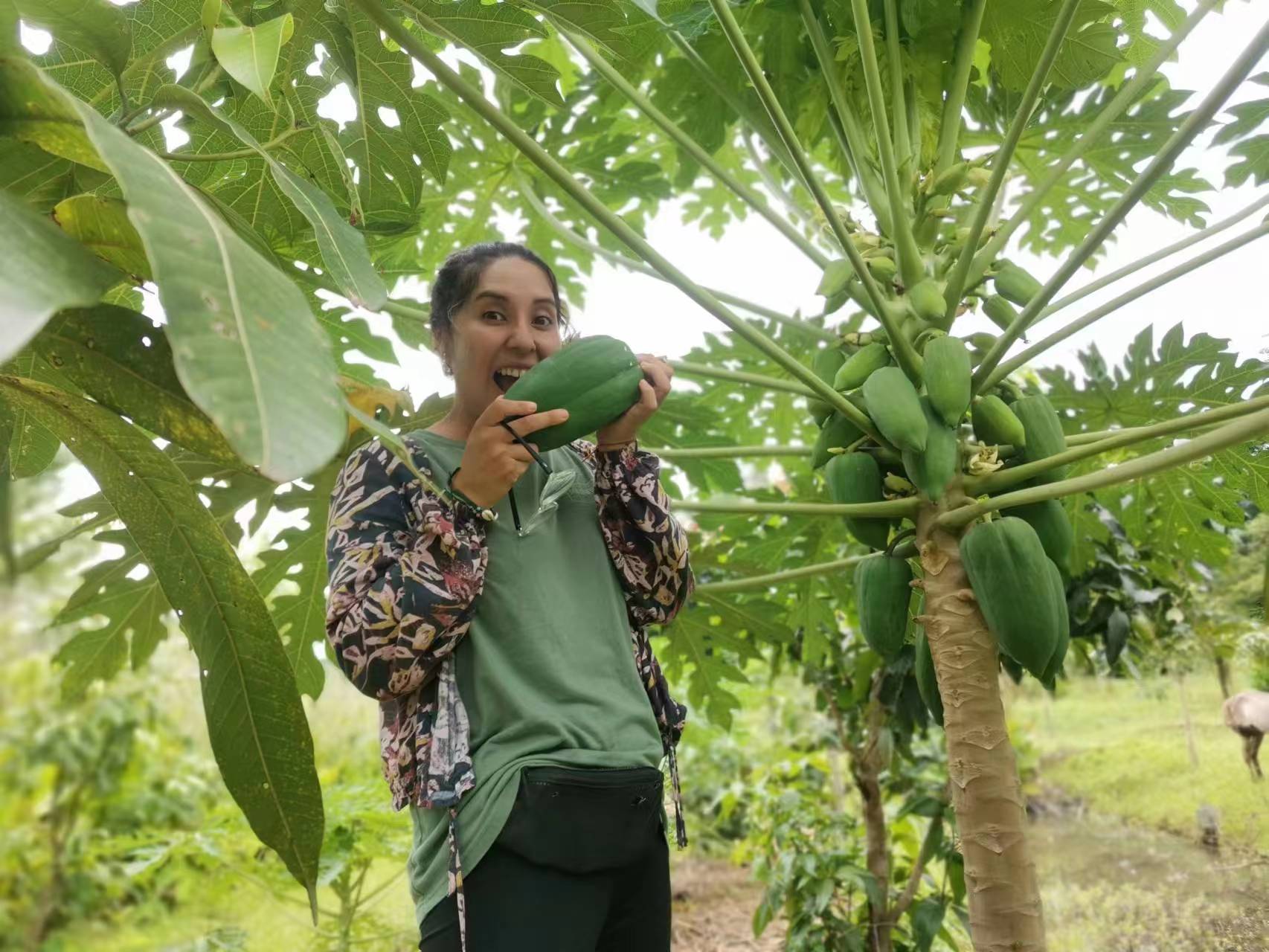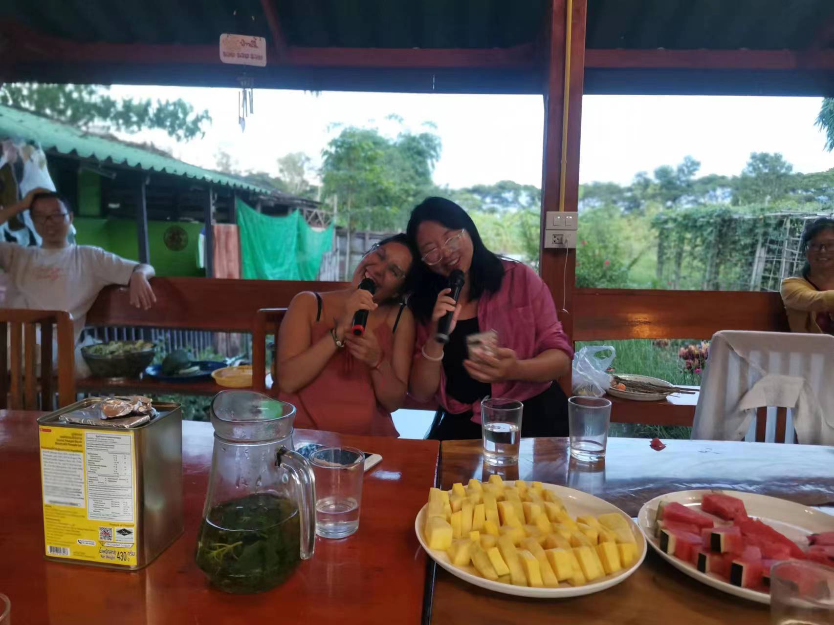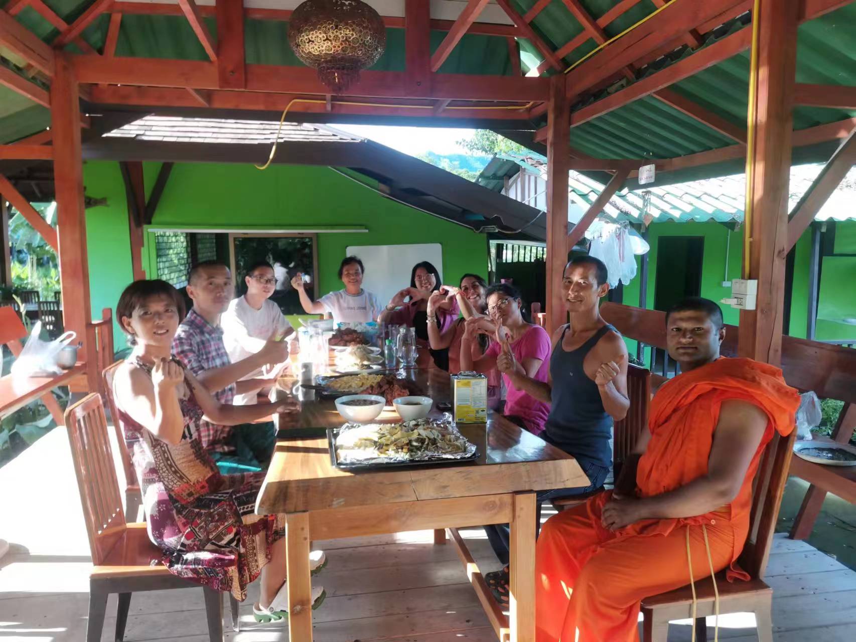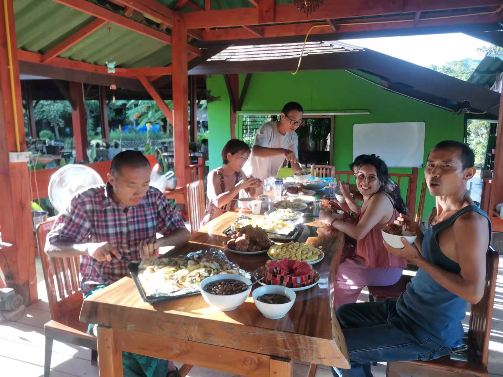 英國男孩去鄰國延期簽證 ,智利女孩在家園和我們一起種植百香果,拔草,育苗。 在她臨走前一晚舉辦了一場小型即性的歌舞晚會,玉林做了雞腿大餐,仰樂幫忙做了披薩,大家圍在一桌享受美食,之後每一位一曲接一曲,唱起了優美動聽的歌曲,最後大家跳起了綠旋風和阿拉伯之夜,溫馨迷人的夜晚讓人依依不捨。 Maria在泰國家園生活了兩周,在helpX上對在泰國家園的體驗上寫了長長的評論和感悟,離別前大家擁抱祝福,請親人們欣賞照片。