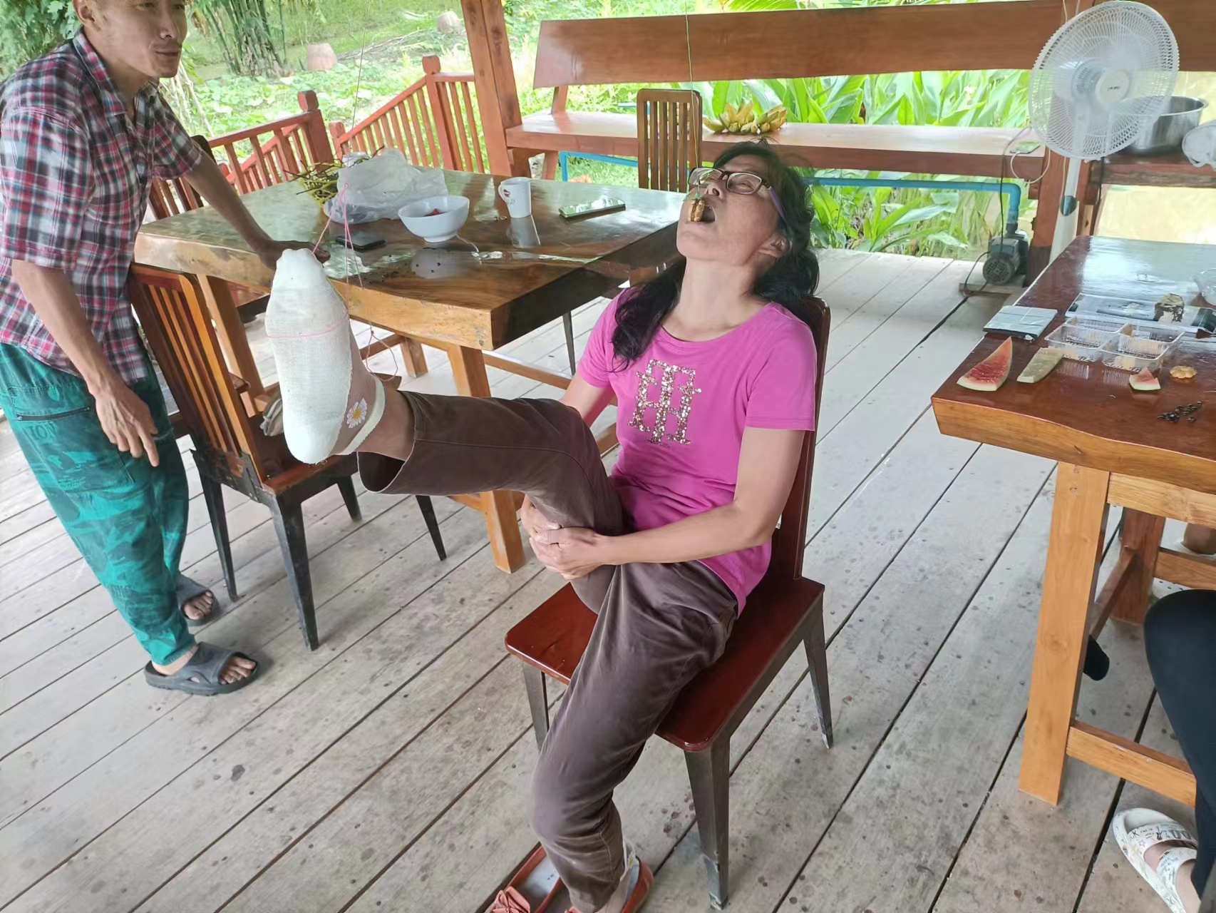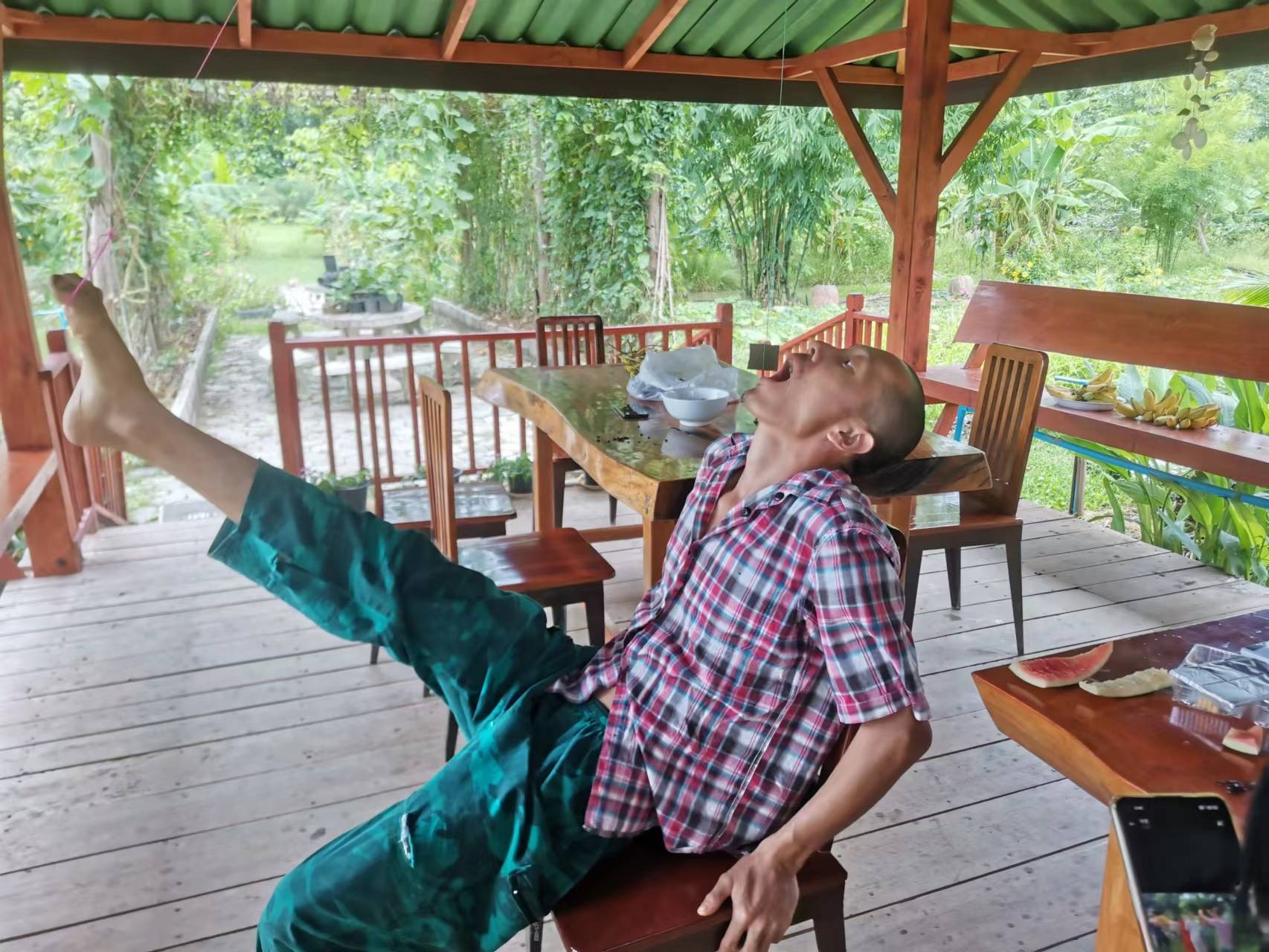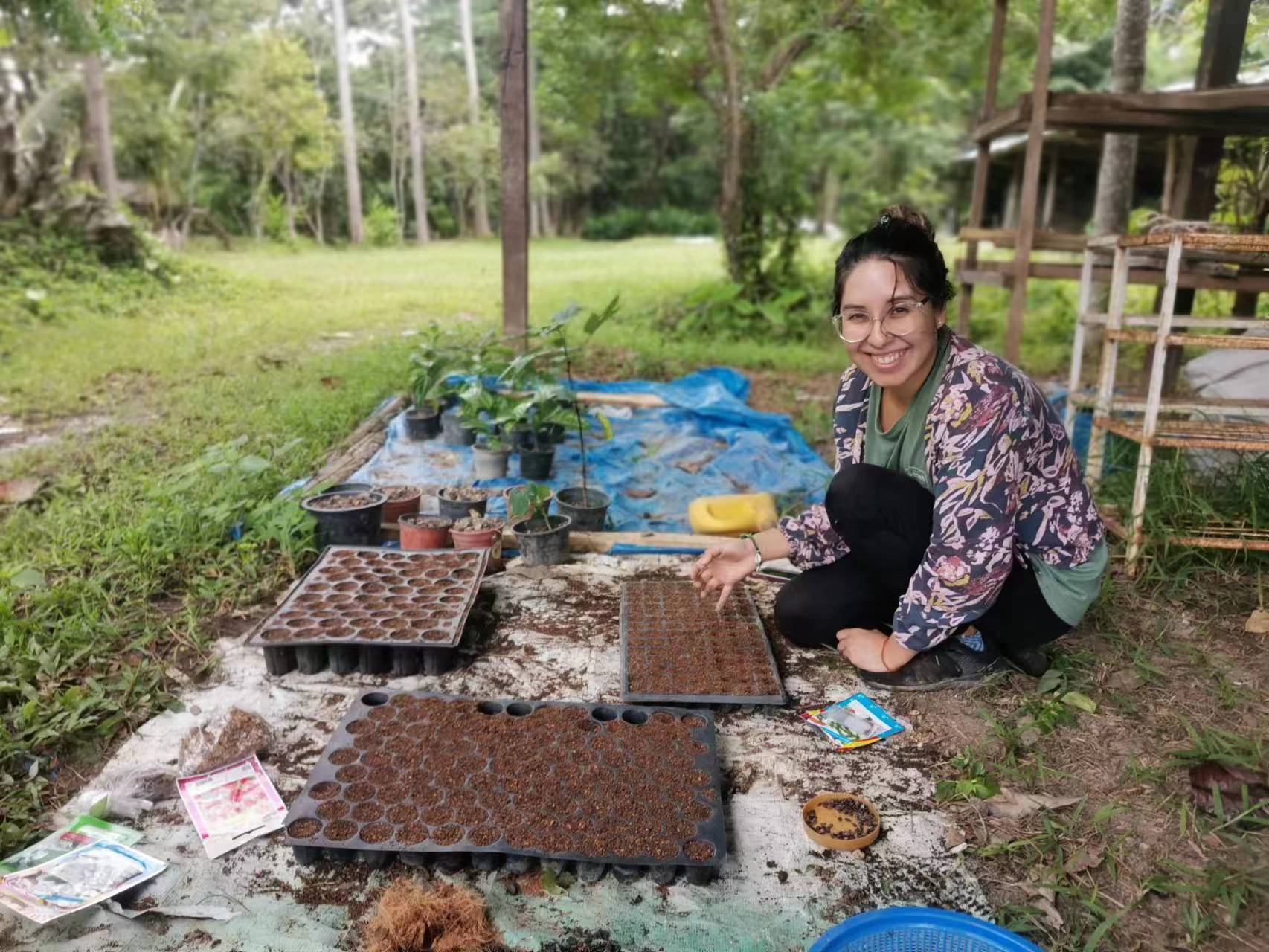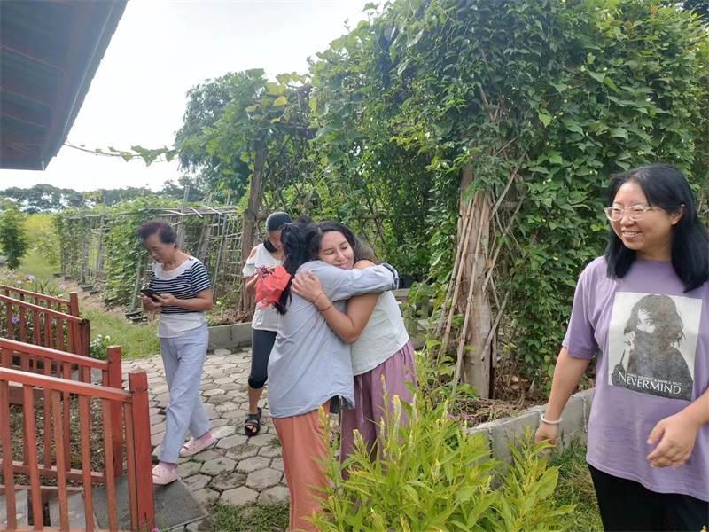 英國男孩去鄰國延期簽證 ,智利女孩在家園和我們一起種植百香果,拔草,育苗。 在她臨走前一晚舉辦了一場小型即性的歌舞晚會,玉林做了雞腿大餐,仰樂幫忙做了披薩,大家圍在一桌享受美食,之後每一位一曲接一曲,唱起了優美動聽的歌曲,最後大家跳起了綠旋風和阿拉伯之夜,溫馨迷人的夜晚讓人依依不捨。 Maria在泰國家園生活了兩周,在helpX上對在泰國家園的體驗上寫了長長的評論和感悟,離別前大家擁抱祝福,請親人們欣賞照片。