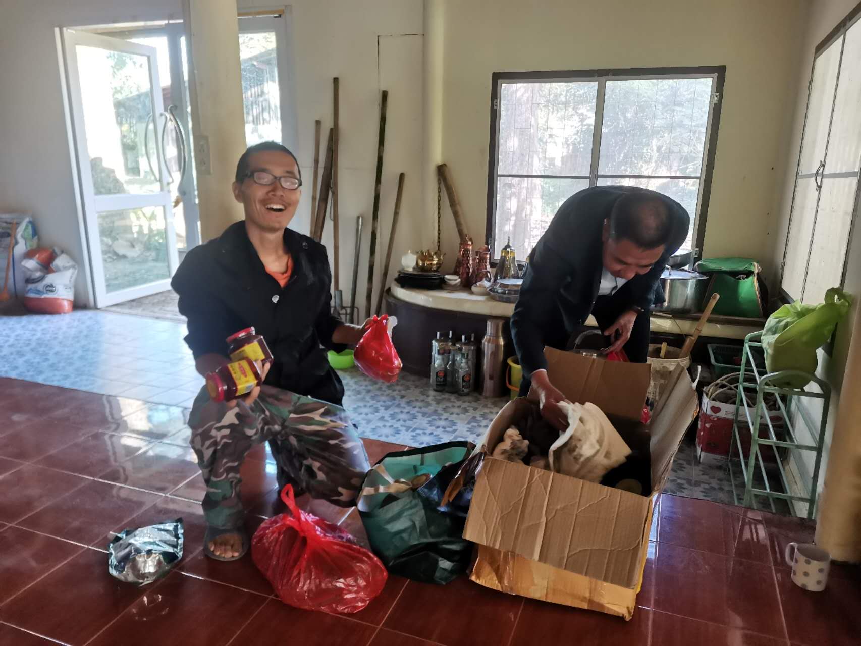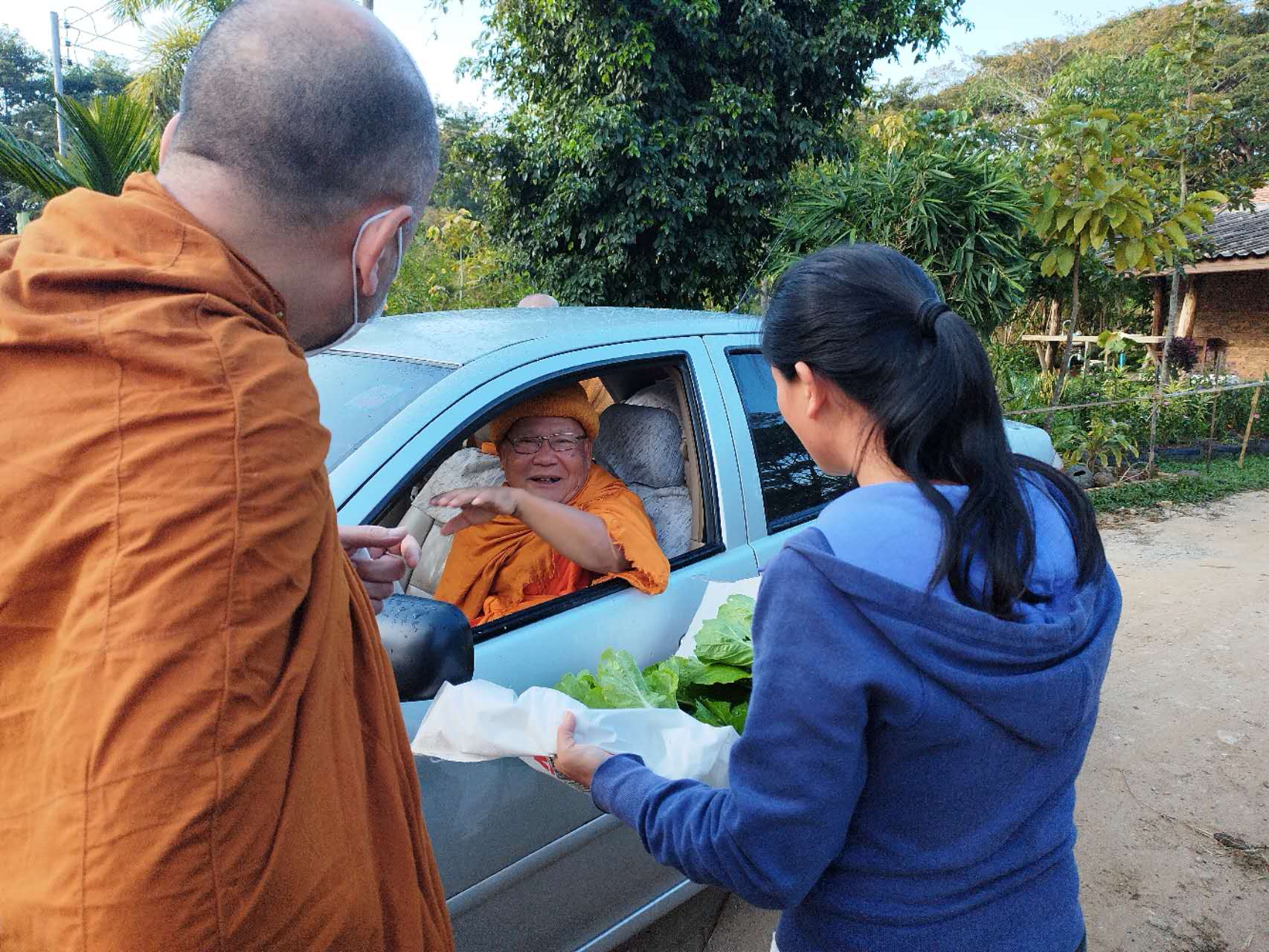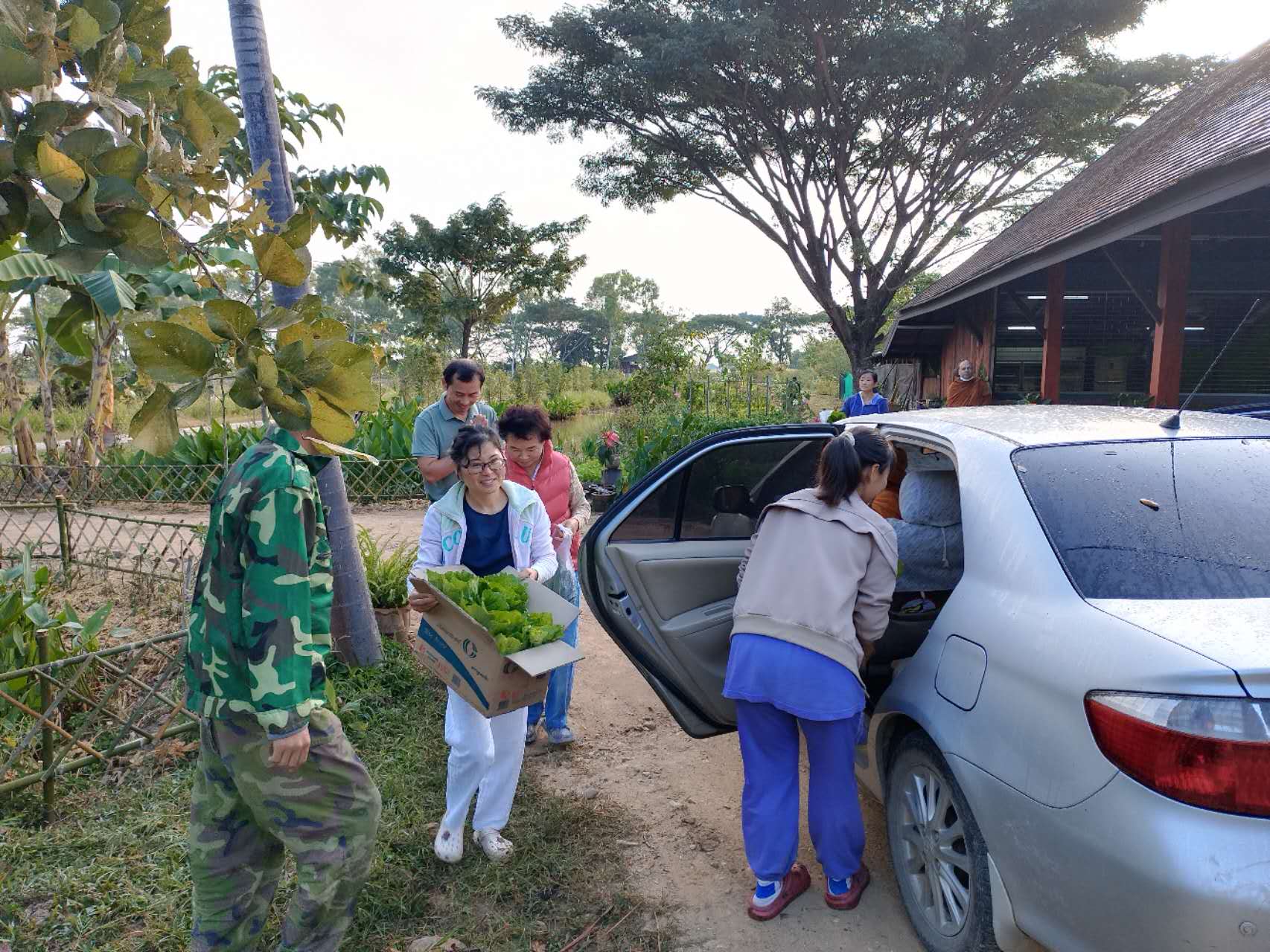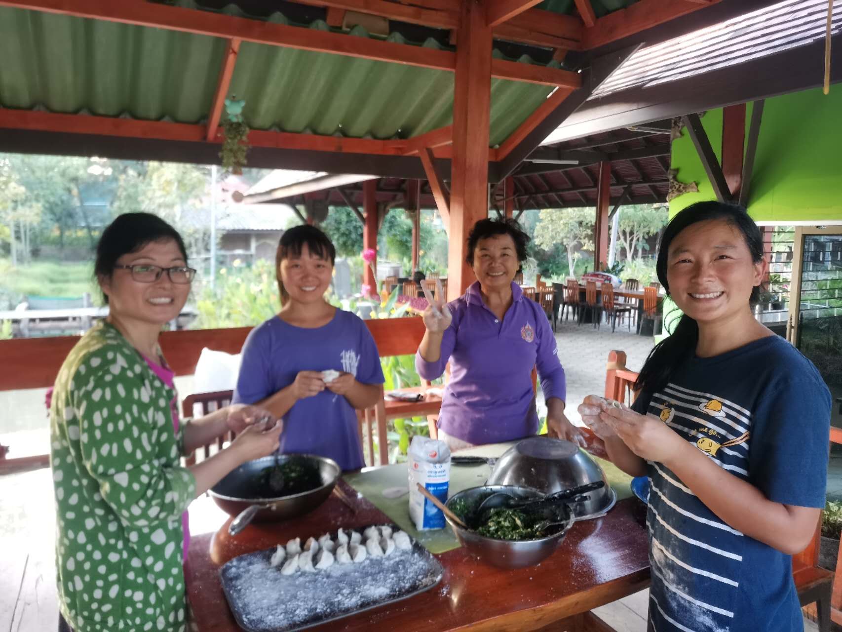 龍袍帶著兩位會講中文的新加坡客人去餐廳,玉林接待他們,與龍袍和客人們聊起了家園歷史:中國政府的遣散,龍袍大佛對我們的收留,並把我們當成孩子一樣疼愛,說到動情處哽咽起來,感染得龍袍大佛也抹起了眼淚。 下午大家去種樹,龍袍大佛特意讓兄弟姐妹們和他一起拍合照,並囑託讓把照片發到中國去。