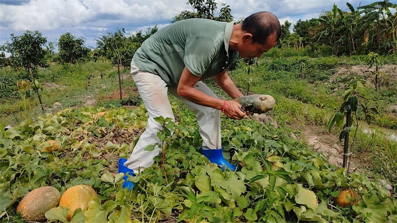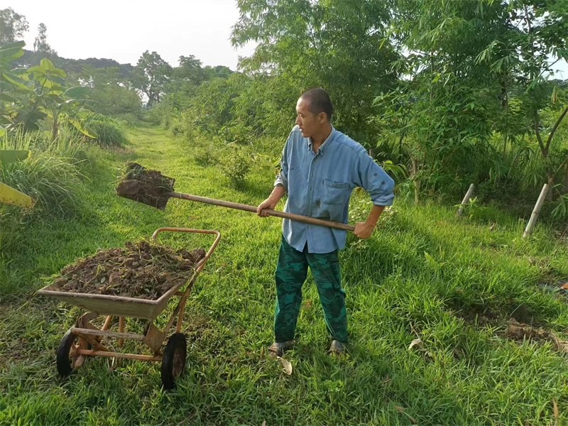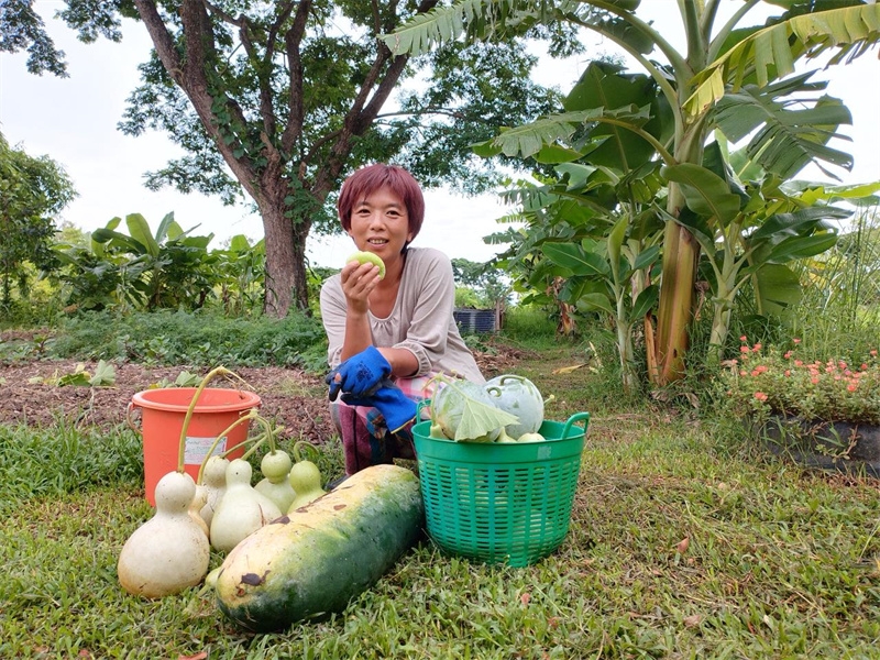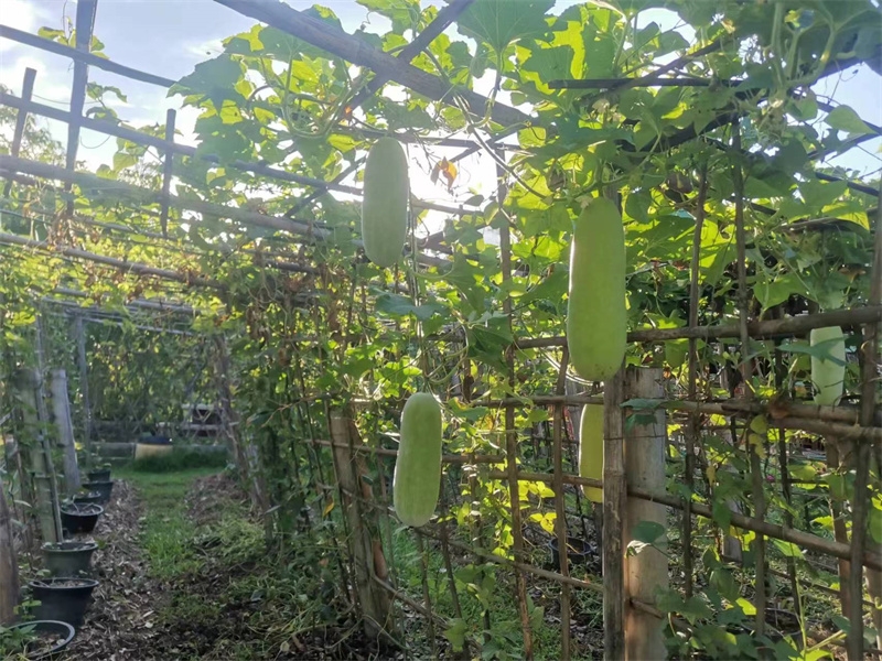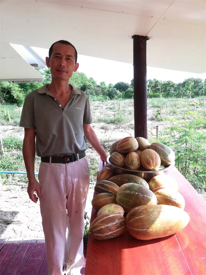 因天氣炎熱,加上下午親人們要做宣傳工作,仰樂帶著大家早早起床,六點半便開始了田園的勞作。 前幾天,龍袍請了兩位工人用割草機割倒了滿院子的草,仰樂,嬌娥,戒鏡三位乘此機會收集了大量的雜草,給之前拯救的茄子地又加了一層厚厚的覆蓋。 他們繼續改良土壤,把又粘又硬的大土塊用鋤頭一塊塊敲碎,與有機肥均勻地拌在一起,種上了小青菜,胡蘿蔔,西瓜,茄子等。 嬌娥是我們的收菜小能手,負責大部分蔬菜的採摘工作,川川洗衣打掃衛生,給大家拍視頻做視頻,有時也來菜地搭把手,仰樂稀里糊塗不知怎地種出了超大號的冬瓜,芒果園裡大氣牌泰瓜持續豐收。 在大家辛勤的共同努力下,每天收穫的瓜果蔬菜比以前翻了好些倍,早上大家興高采烈浩浩蕩蕩,一筐筐抬著我們的有機蔬菜瓜果送予龍袍和寺廟,心裡面好開心呀!