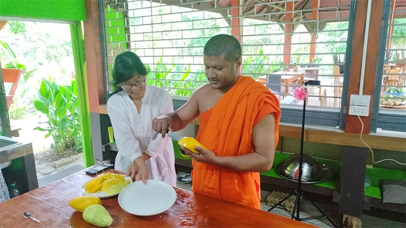 千姿負責美化工作,管理著餐廳周圍的花園和一片小菜地,這段時間院裡的花兒競相綻放,吸引來一群群蝴蝶翩翩起舞。 川川去芒果園小住了幾日,沿著池塘邊種上了長春花,慧光為芒果園的房間裝了紗窗,在院子里按了方便使用的水管和水龍頭,讓芒果園的生活更加舒適便利。 玉林親愛的心靈手巧,愛心滿滿,每天給我們烹飪各種美味佳餚,讓我們吃得美美噠!