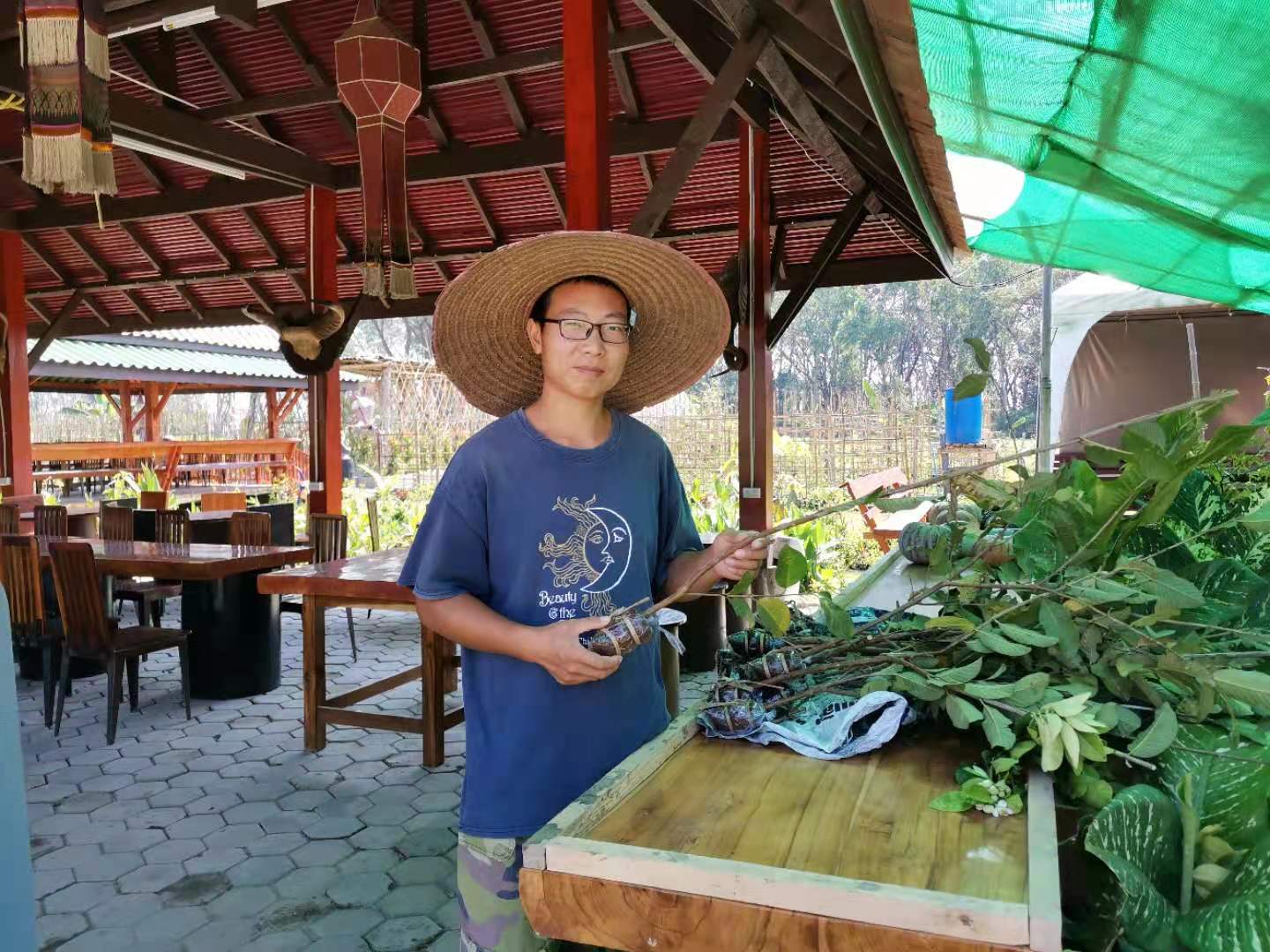 最近一個月有兩批客人來這裡吃飯,有一次是寺廟全體六十多位小和尚們吃火鍋。 我們幫忙服務,客人走後收拾餐廳。 宴客之後往往會剩餘很多食物,打包分給Pi露,大哥,樓下媽媽,放牛姐,種泰瓜的杜龍。 相互分享好吃的好像是泰國人們的習俗,樓下的媽媽經常做甜點和木瓜沙拉給我們,並且說是給她的兒子和女兒的,還說我們讓她心裡暖暖的,這時候就想到導遊文章里說禪院草是全世界父母的兒女。