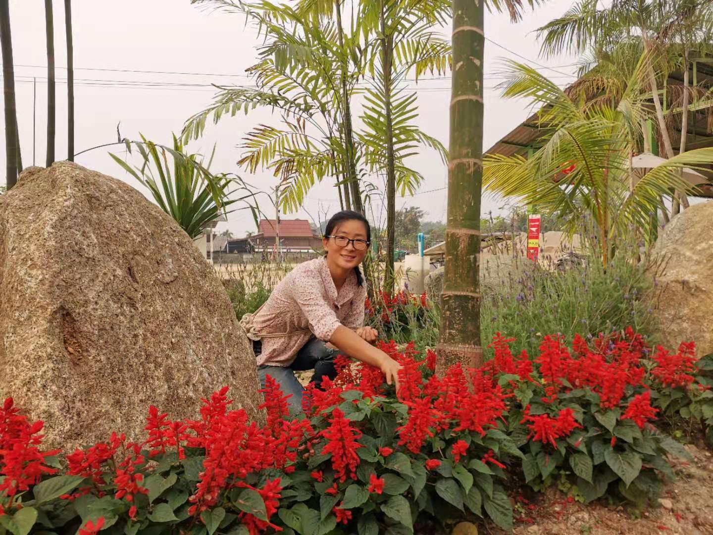 仰樂同學說這裡的生活越來越充實並且有序,越來越有家園的感覺了。 最近一個月主要工作是種花種樹和日常維護。 挖樹坑,拉土,拌肥這些重體力活主要由仰樂,中國大哥,還有一個小和尚三個人幹。 仰樂幹活的勁頭親人們知道,盡心盡力全然付出的精神讓人由衷的敬佩,和他一起幹活的大哥和小和尚也受到他的影響,就算主持不在時也沒那麼愛偷懶了。 看仰樂幹活誰都不好意思偷懶吧,呵呵。 千姿與Pi露一起種花、澆水、除草,Pi露勤勞淳樸善良,是一位樂於助人的大姐姐,她性格直爽,說話有趣,一邊幹活一邊教千姿泰語,兩人相處融洽,幹活配合默契,歡聲笑語不斷。