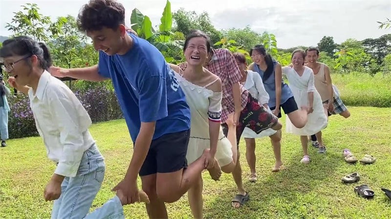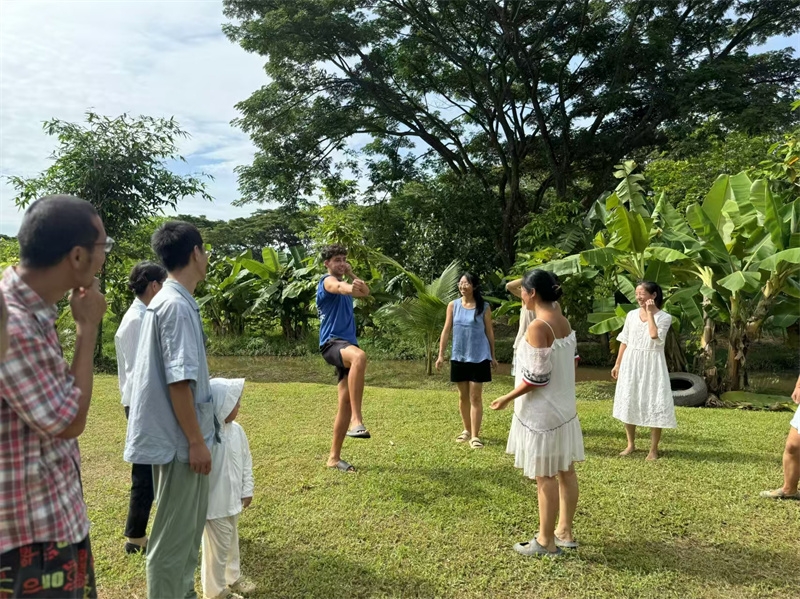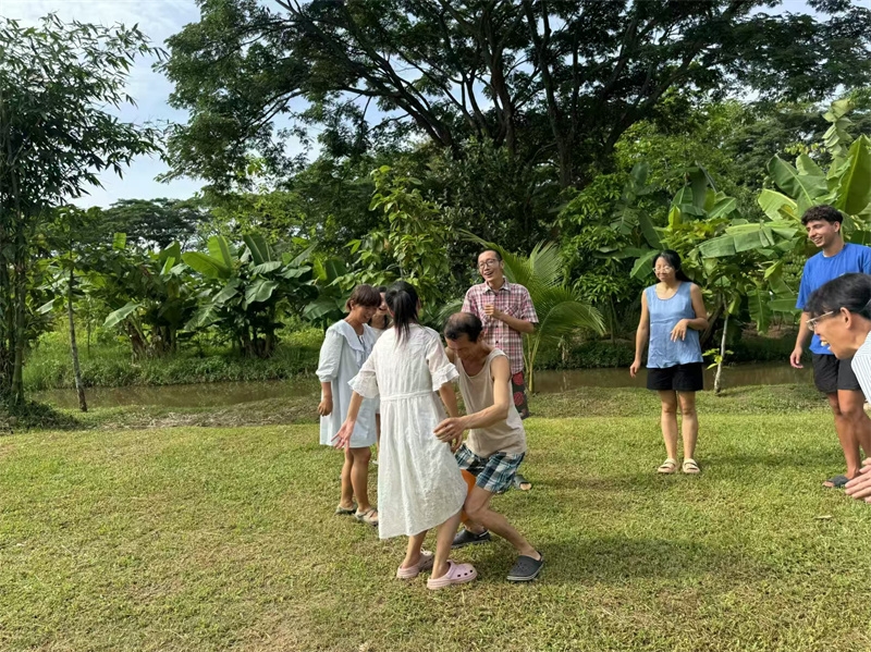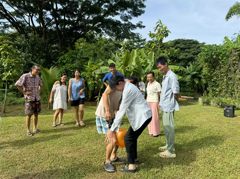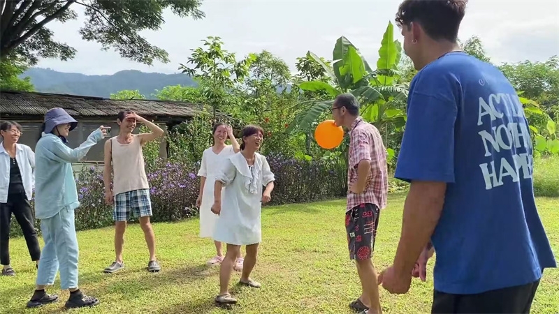 8月11號,也是男孩臨走的前一天,上午大家舉行了遊戲活動,這次遊戲繼續由百川仙女設計主持,一如既往的精彩有趣,大家也一如既往地玩得不亦樂乎。 下午一起享用火鍋和燒烤的美味,晚飯後親人們向客人一展歌喉表達著柔情和熱情,展現著各自的藝術修養,戒鏡充滿激情與訪客互動,一起演唱禪院版“春天在哪裡”和“heal the world”,讓氣氛更加溫馨歡樂。
