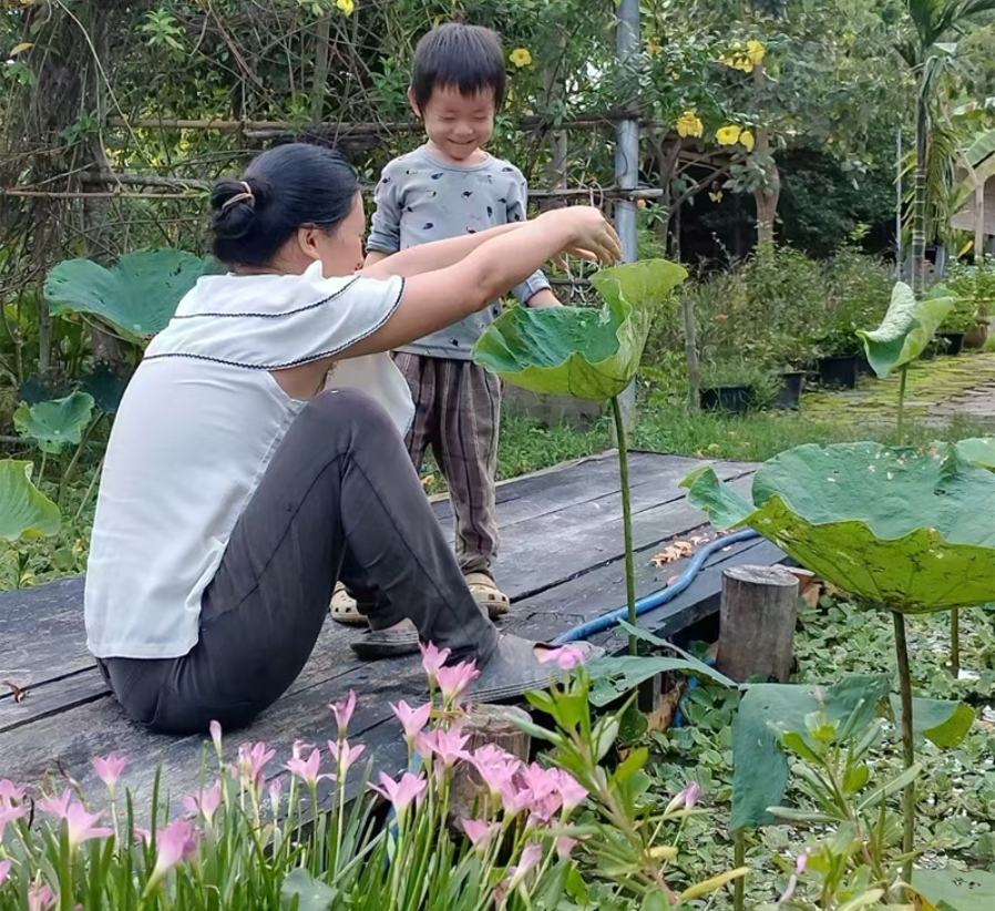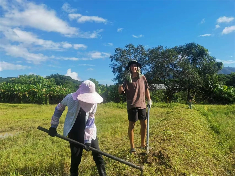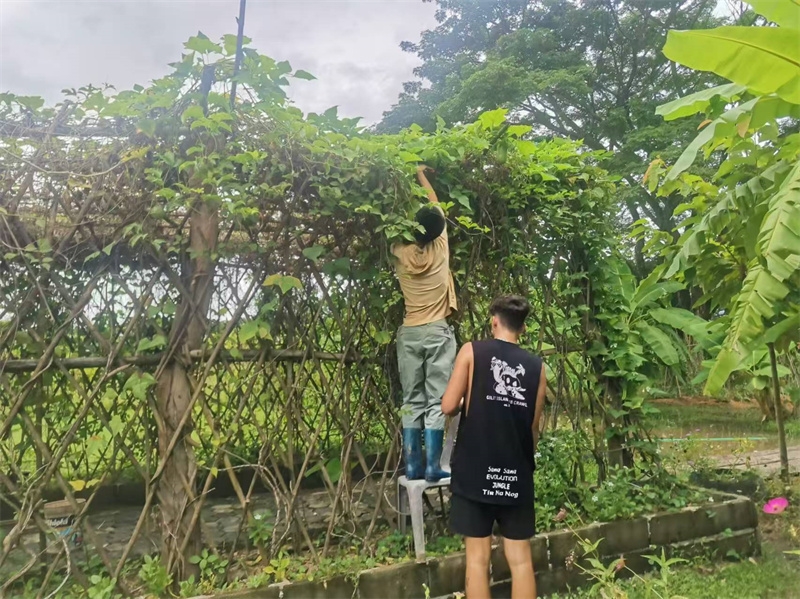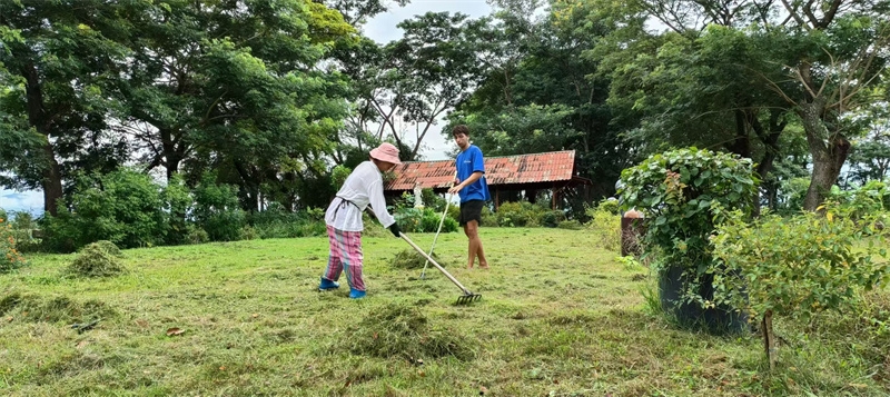 雨停后他説明菜地除草,種植洛神花,收拾整理倉庫,收集雜草等,他在世俗經歷過體力勞動,所以他很享受在家園的各種體力勞動,不嫌臟也不怕熱。