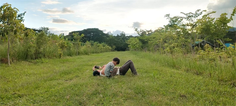 Francesco注重個人體驗和成長,對周圍環境和人們的能量場感受敏銳。 為了尋找自我,大學畢業后,20歲便開始了一個人在澳大利亞長達兩年的工作和生活,現在他結束了澳大利亞的旅程,決定回西班牙與家人重逢,途徑泰國,選擇來泰國家園幫我們做一些志願工作。 不巧的是,自從他來,好幾天一連下雨,他到來的前兩天我們向他介紹生命禪院以及家園生活模式,觀看家園視頻,大家圍坐在一起,聊天中增進了對彼此的瞭解。 他從小在基督教家庭長大,對生命禪院的上帝,各類生命和天堂的解釋和描述表示理解,雖然沒親眼見過但他相信宇宙中有比人類更高能量級別的生命存在。