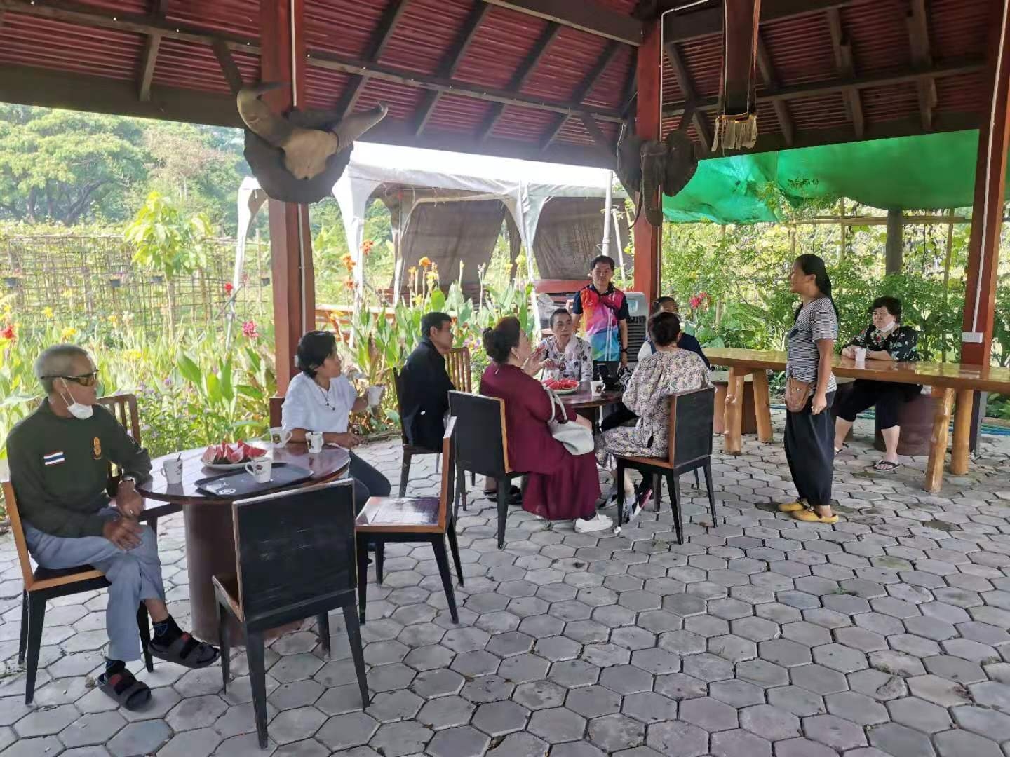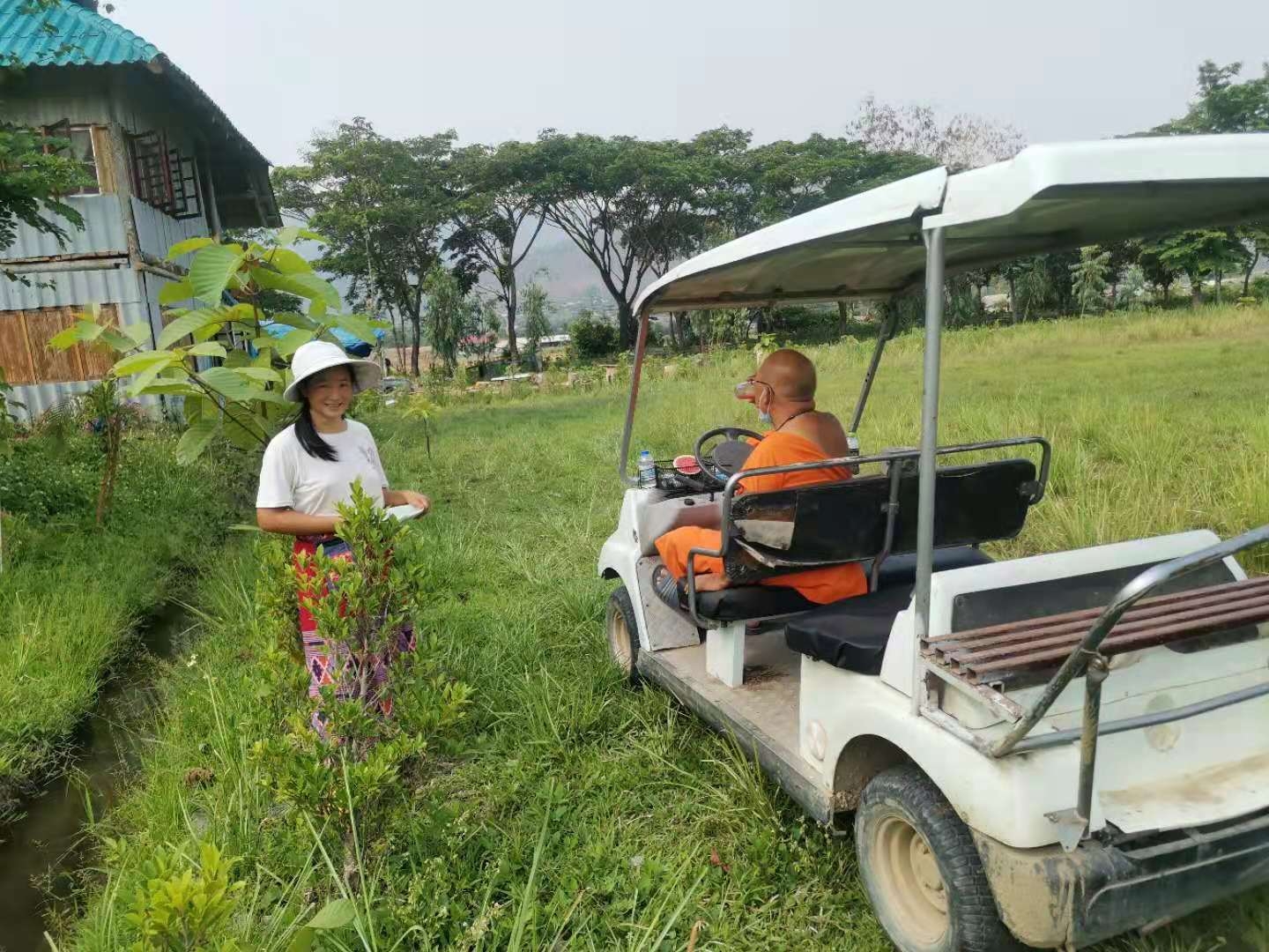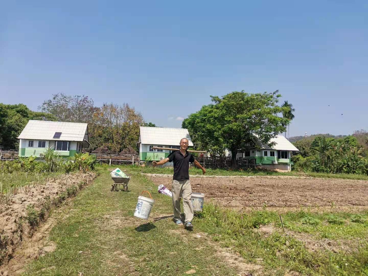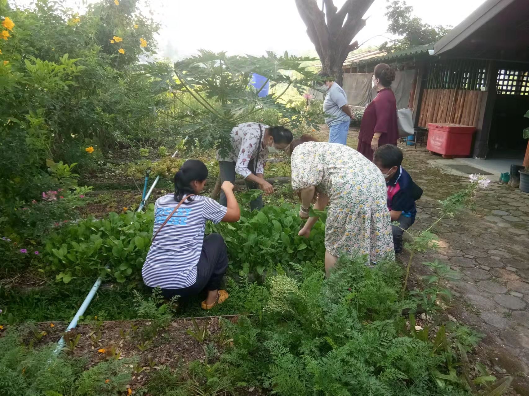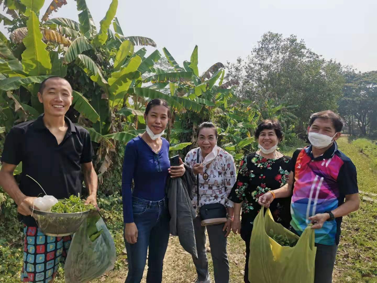 大家還記得春節時報導中提到的來寺廟祈福供奉的趙女士嗎,當時她對我們很是關照。 前天她帶著親朋好友來園子裡遊玩,一位會講英文的美女當翻譯,我和仰樂帶著他們參觀菜園並盡多地採摘了一些蔬菜,希望可以回饋一點她之前對我們的照顧之情。 送走她們后,中國大哥說我們現在用的廚房餐廳以及亭子都是這位趙女士供奉資助的,哦,原來奉獻和給與是這位貴賓的一向品格和作風呀。 中國大哥還告訴我們,前幾天從曼谷來了一些工人,想在院子裡工作,問龍炮可不可以收留他們,龍炮沒有答應,他希望中國人來院子里幹活,他在等我們的人。