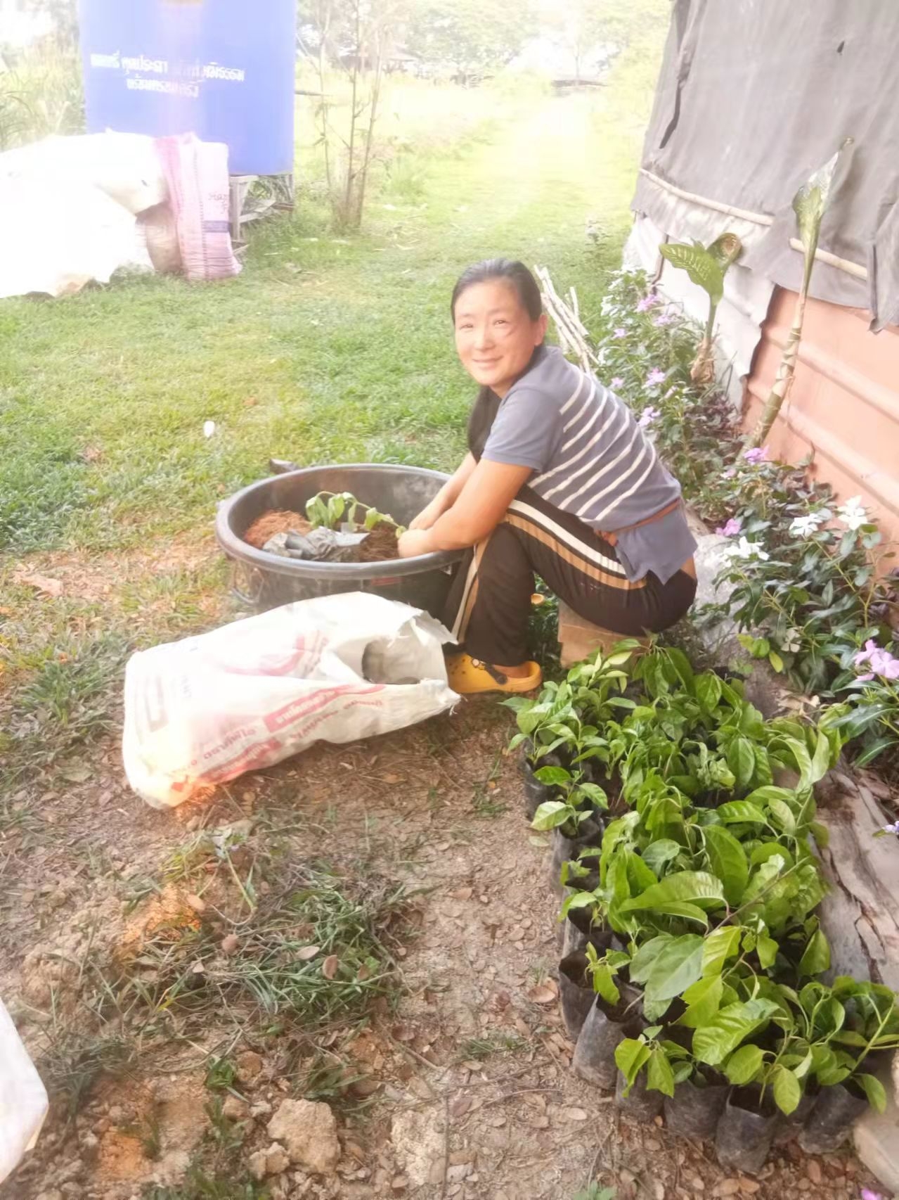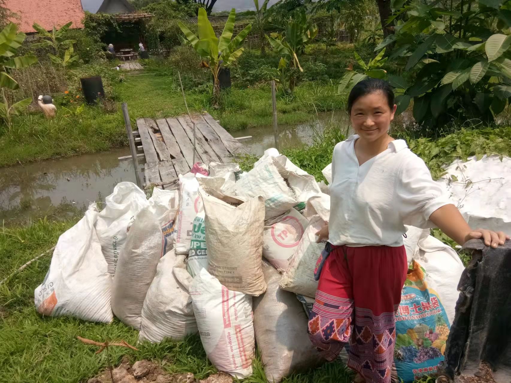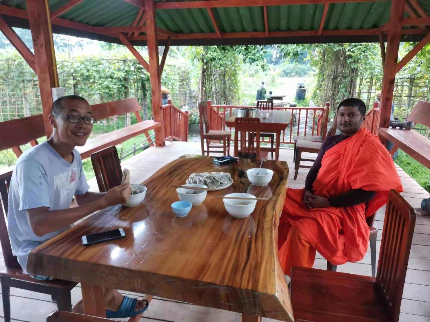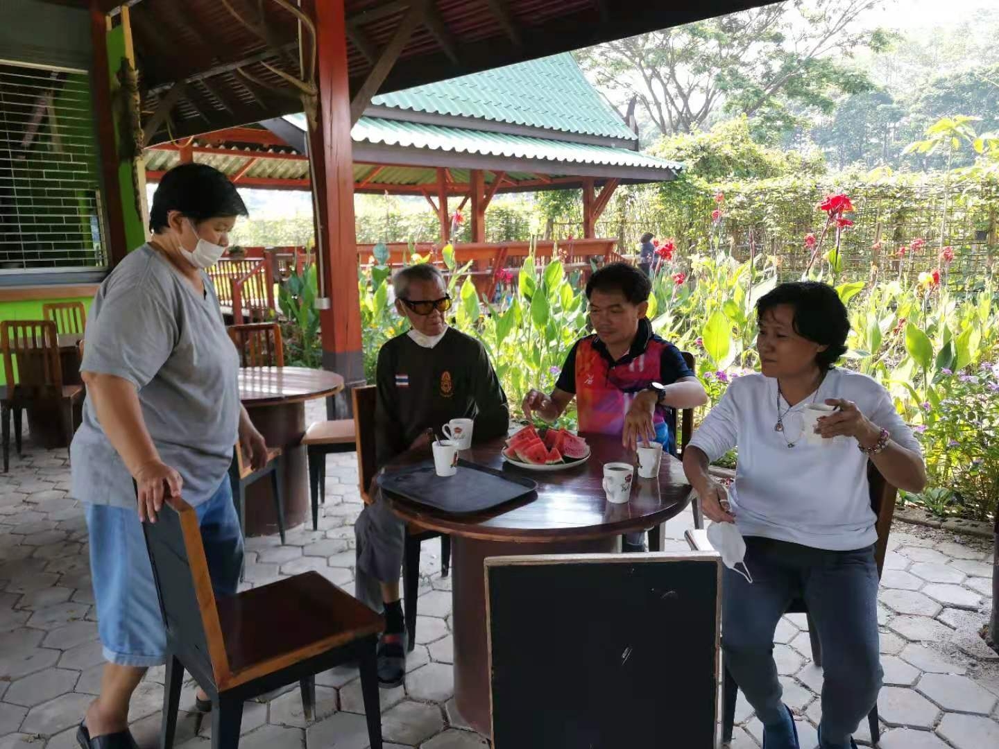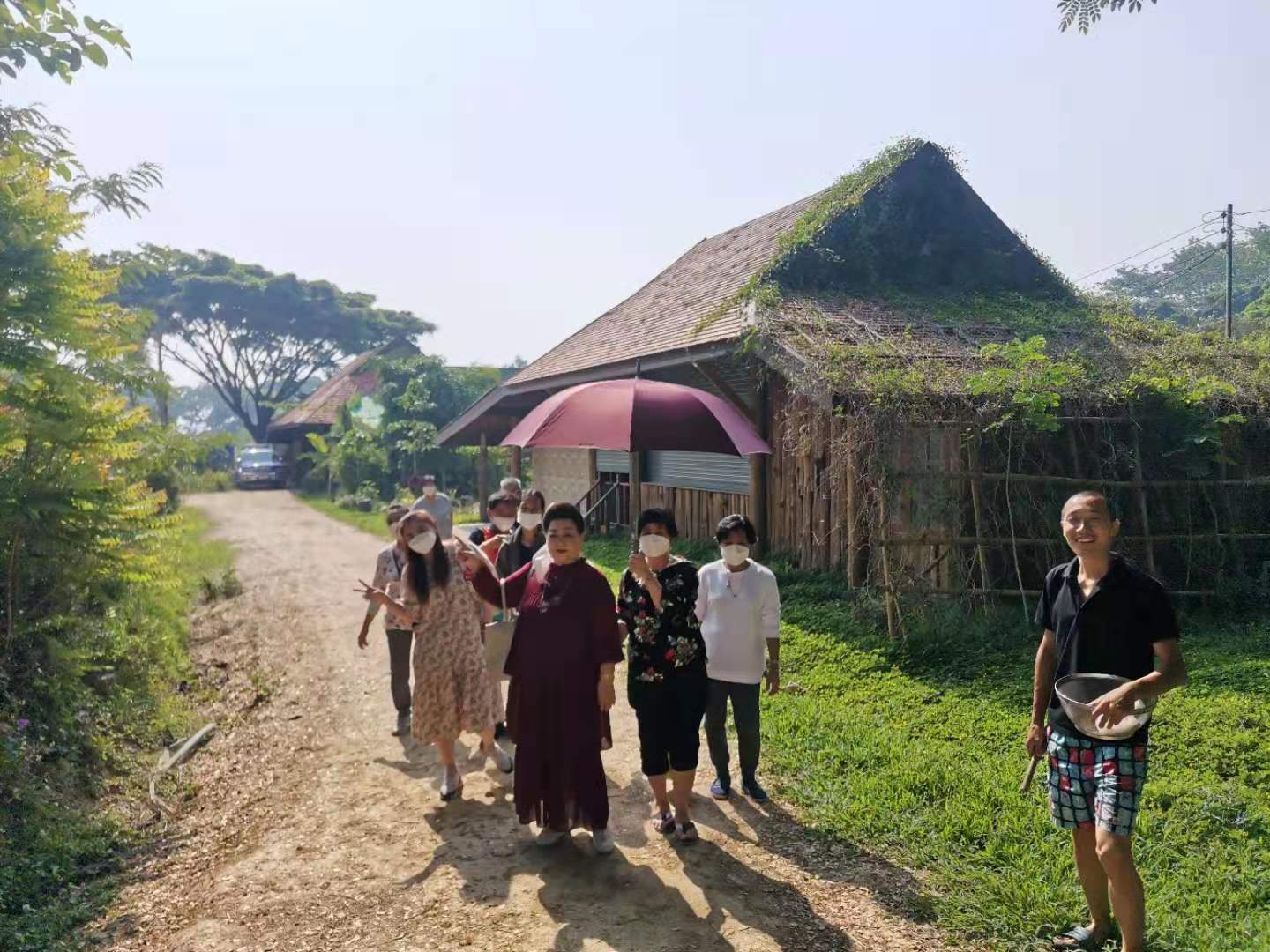 大家還記得春節時報導中提到的來寺廟祈福供奉的趙女士嗎,當時她對我們很是關照。 前天她帶著親朋好友來園子裡遊玩,一位會講英文的美女當翻譯,我和仰樂帶著他們參觀菜園並盡多地採摘了一些蔬菜,希望可以回饋一點她之前對我們的照顧之情。 送走她們后,中國大哥說我們現在用的廚房餐廳以及亭子都是這位趙女士供奉資助的,哦,原來奉獻和給與是這位貴賓的一向品格和作風呀。 中國大哥還告訴我們,前幾天從曼谷來了一些工人,想在院子裡工作,問龍炮可不可以收留他們,龍炮沒有答應,他希望中國人來院子里幹活,他在等我們的人。