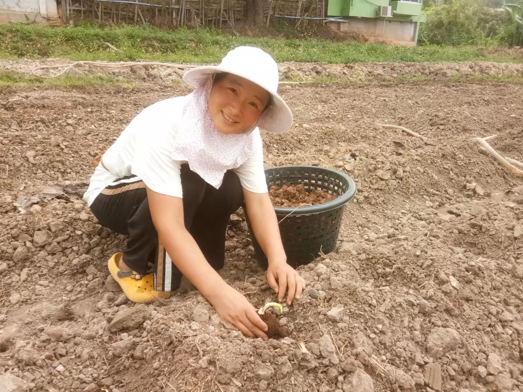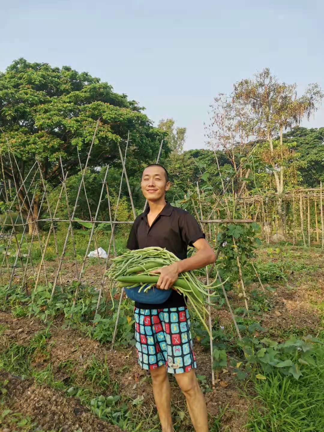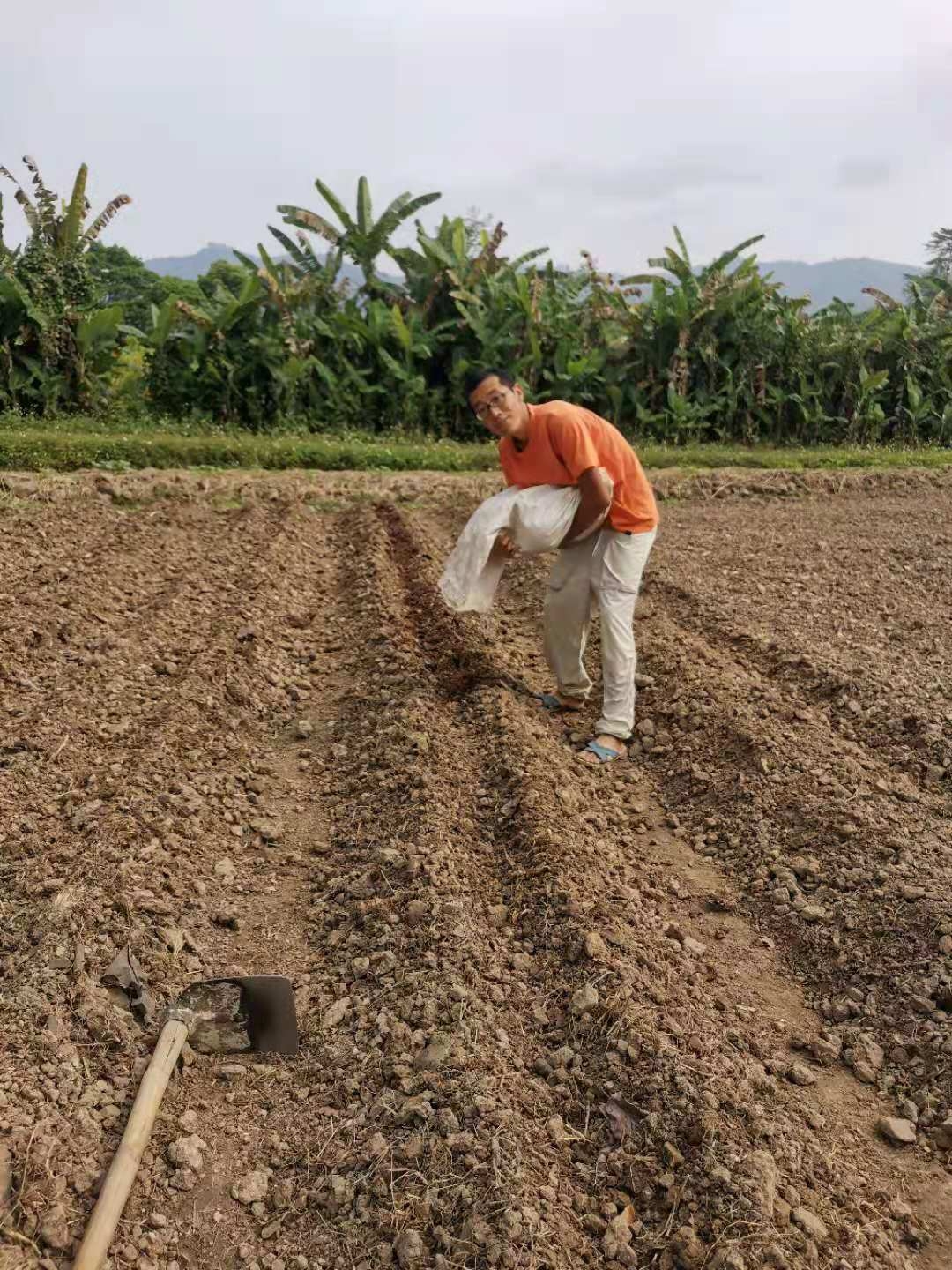 香蕉園旁被開墾的大片田地,三分之二龍炮讓工人和小和尚們種上了芋頭,交給我們的三分之一自由種植,先起隴,順便留出主幹和四通八達的小路,菜床上除了芋頭,還種上了紅薯,木瓜,百香果,玉米,南瓜,泰瓜,黃瓜,茄子,西紅柿等。 用心規劃一番,我們這邊菜地的格局看起來更加整齊美觀。