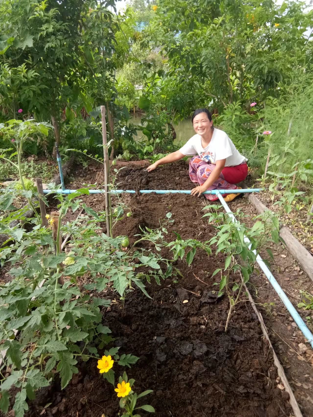 種子和苗苗種到地里,風調雨順下了兩場及時雨,之後仰樂兩處菜地來回拉水泵和水管來澆水。 不管是龍炮讓幫忙幹活,還是自己幹各種活,仰樂從來都是不辭辛勞,樂在其中的態度,一副樂呵呵耐心的樣子,一種無為無不為的狀態,踏踏實實盡心盡力又不著急過度的勞作帶給人快樂和寧靜的感受。 在這種勞作下,每天都有蛋蛋和各類蔬菜產出,之前在水渠旁種的幾種青菜也開始大量收割送到寺廟廚師那裡。