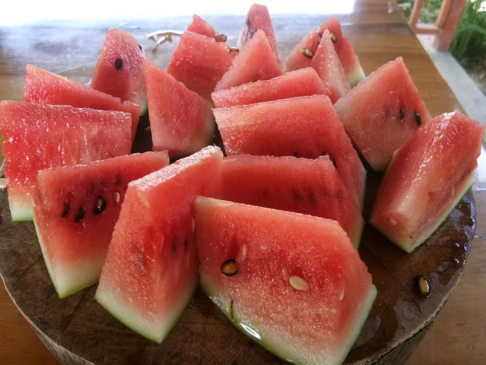 西瓜在仰樂精心呵護和澆灌下也成熟了,本來第一波採收的西瓜要送給龍炮大佛品嘗,可當我們興沖沖準備好臺詞拎著瓜等待龍炮到來時,前來送食物的只有開車的龍達大和尚,原來龍炮已經去了曼谷,要十幾天以後才回來,只好把西瓜送給龍達,讓他與寺廟其他大和尚品嘗也好。