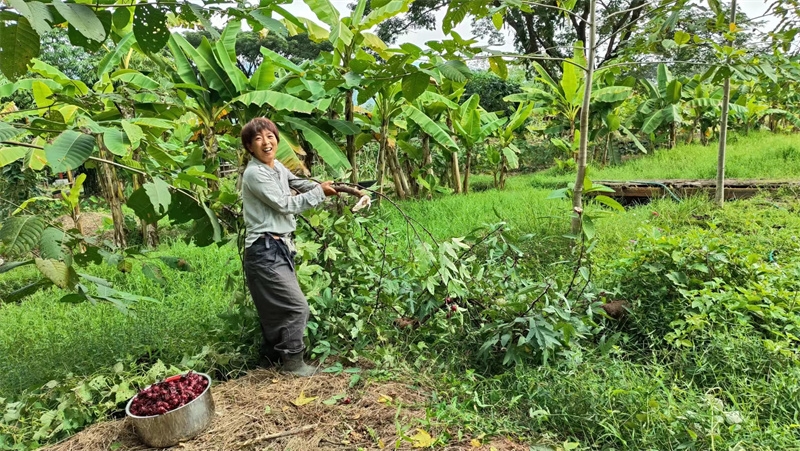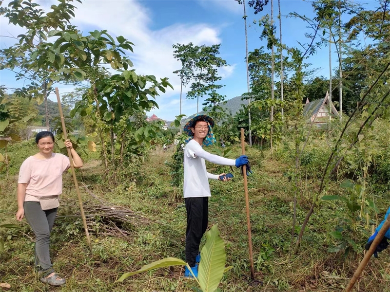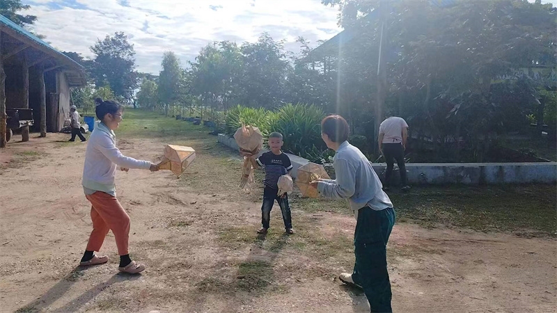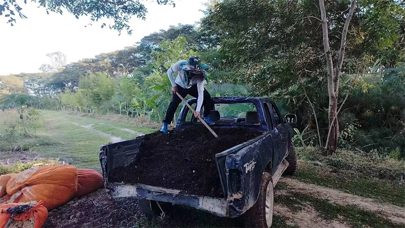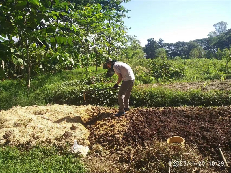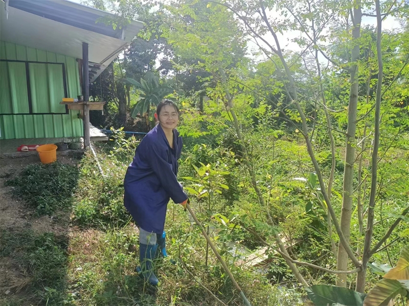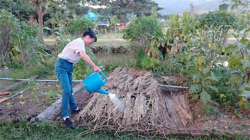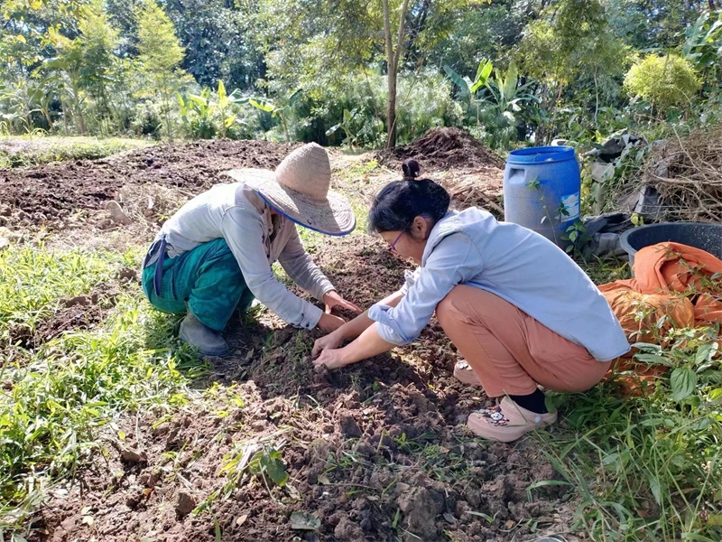 洛神花開始收穫,隔幾天採摘一盆送給寺廟,這些天仰樂帶大家收集肥料,還為西紅柿和蘿蔔準備了菜床。 芒果園大氣專心培育種植木瓜苗,已經種下三十幾棵木瓜樹。 在大氣的影響下戒鏡找到了種植的樂趣,她很開心地拉著我們去看她與大氣種植的西紅柿和黃瓜苗,每一顆小苗苗長得青蔥翠綠,被照顧得非常健康,戒鏡說這些苗苗就是她的親生寶寶。