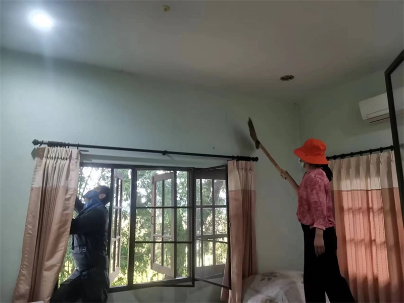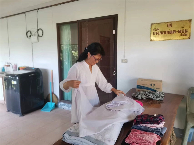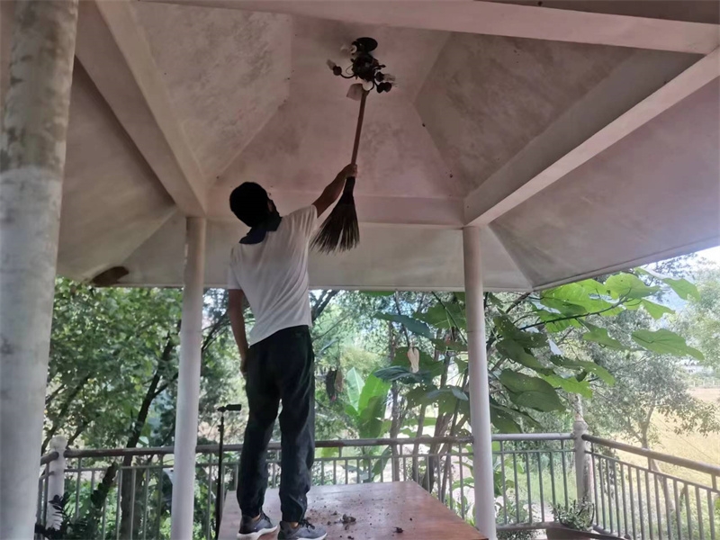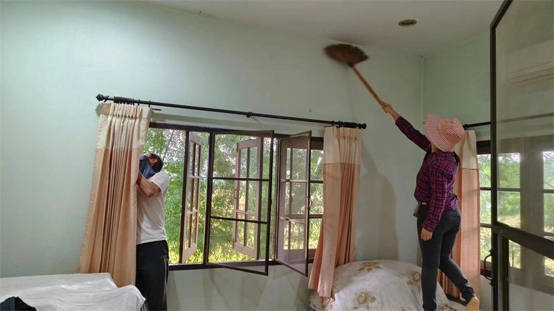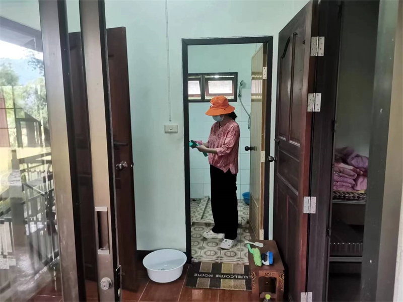 泰國家園迎來逸仙,也迎來了家園住房環境的乾淨整潔。 一直以來除了廚房周圍的衛生由百川打掃外,其他住處並沒有專人打掃,大家各自忙於工作,並沒有時間來仔細打掃。 這兩天逸仙帶上做事細緻用心的曲丹仙子,對每一棟住房開始了深度保潔,從上到下,從內到外,從屋頂積累多時的蜘蛛網到門窗及各個角落的塵垢,無一不漏的進行了一次史無前例的大掃除。 房內玻璃瓷磚洗手池馬桶都亮晶晶起來,從房外看整棟房子也煥然一新賞心悅目,乾淨整潔的居住環境可以提高能量級別,仙人居所潔凈舒心仙氣氤氲,晚上夢境都變美了。