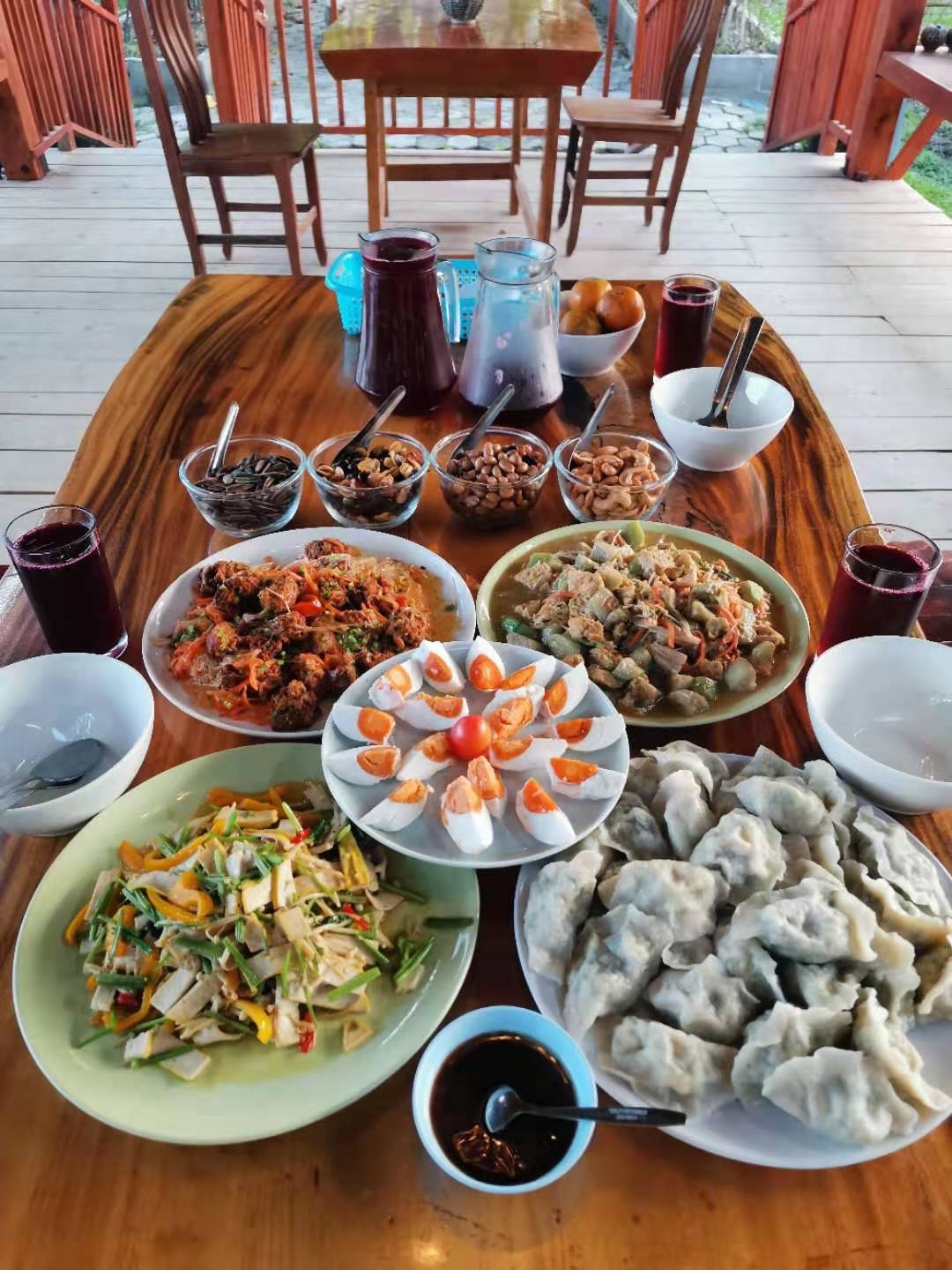 除夕中午十一點去寺廟為龍炮與和尚們獻上精心製作的餃子和其他美食,以表達我們的感謝和敬意,並分享新年的吉祥和喜悅。 食物準備好後我們先敬上帝爺爺,仰樂我倆跪在擺放貢品的小圓桌前,在內心向上帝爺爺表達感恩,並幸福地訴說著自己的心願,第一次這樣祈禱,內心很激動。 到了寺廟龍炮把我們留下一起吃午飯,慈悲好心腸的老人家為了讓我們高興,吃餃子和可樂雞翅時,還專門叫我們看著他吃,一邊大口吃一邊說好吃,心裡暖暖的感動又開心。 吃飯期間,龍炮不停的把他飯桌上好吃的分給我們,最後還給了我們一人一個新年紅包。