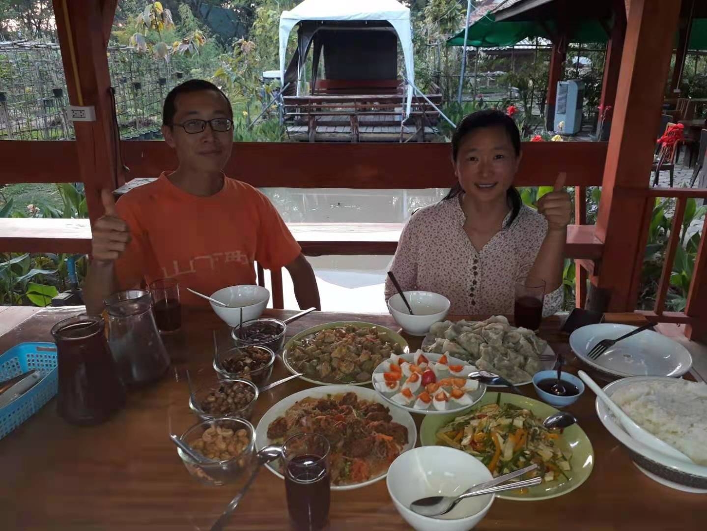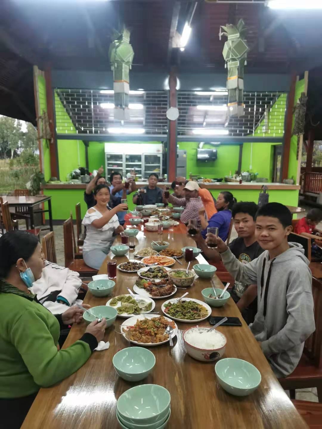 晚飯邀請了園子里幹活的所有工人還有司機,來了十一位,加上媽媽和護工,連同我和仰樂,一共十五位一起歡度春節。 工人們每一位都實在淳樸,他們很開心,甚至喝上了小酒,祝酒時仰樂讓中國大哥翻譯對工人們說:在中國我們過年都是和最親最重要的兄弟姐妹親人們在一起,現在在這你們就是我們的兄弟姐妹,我們一起在園子裡工作,是相互説明的一家人。 感謝大家平常對我們的照顧,很開心和大家一起過年,我們的導遊從報導的照片看到你們,說這裡的人們善良友好,你們個個身懷技術,房子蓋的漂亮,真了不起,為你們點讚! 千姿也說道:希望大家喜歡中國菜,覺得好吃就多吃點。 中途仰樂又做了一道泰國人們都喜愛的木瓜沙拉,無論泰餐還是中餐,都受到大家的一致好評,中國大哥說好多年沒吃過這樣的飯菜了。 席間大家一會用泰語相互開玩笑,一會兒跟著我們學說中文,嘻嘻哈哈熱熱鬧鬧的氣氛中度過了美好愉悅的年夜飯時光!