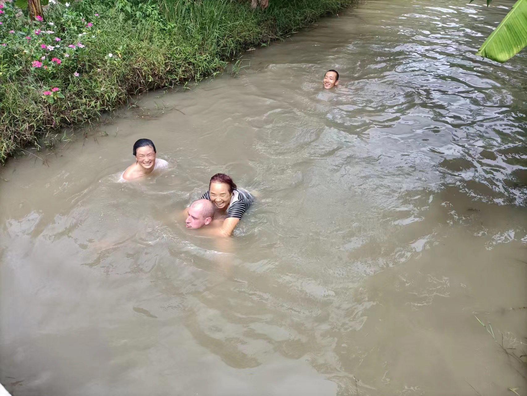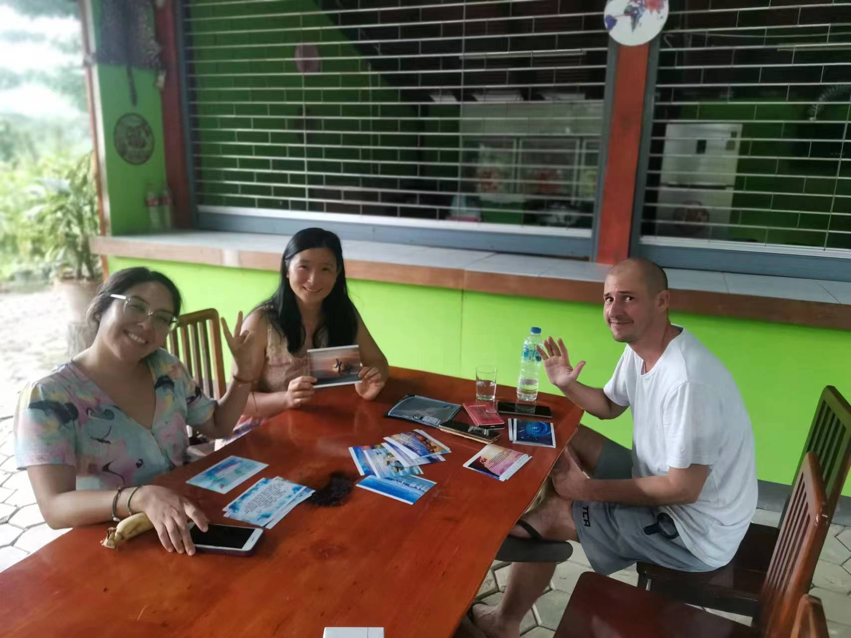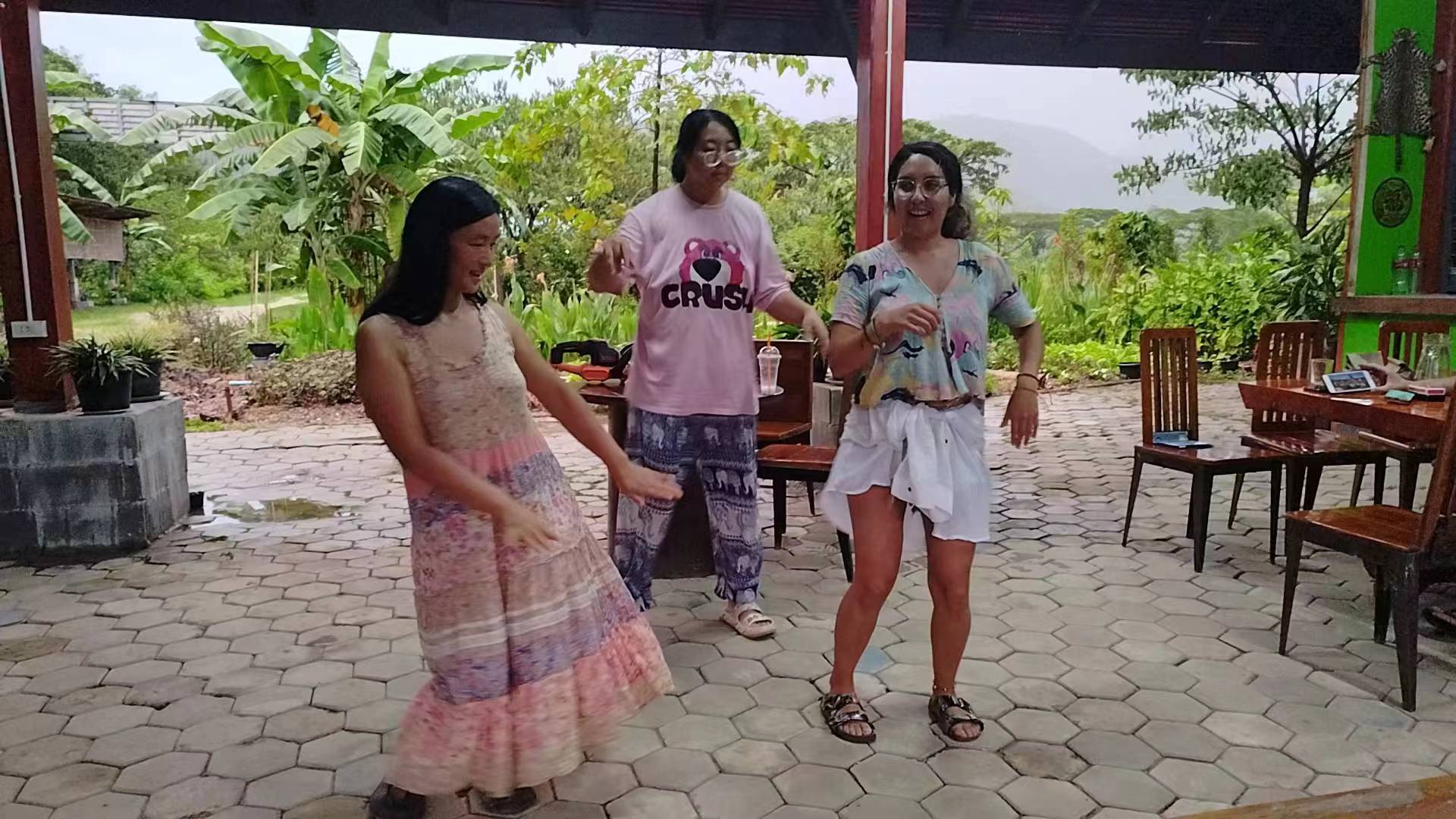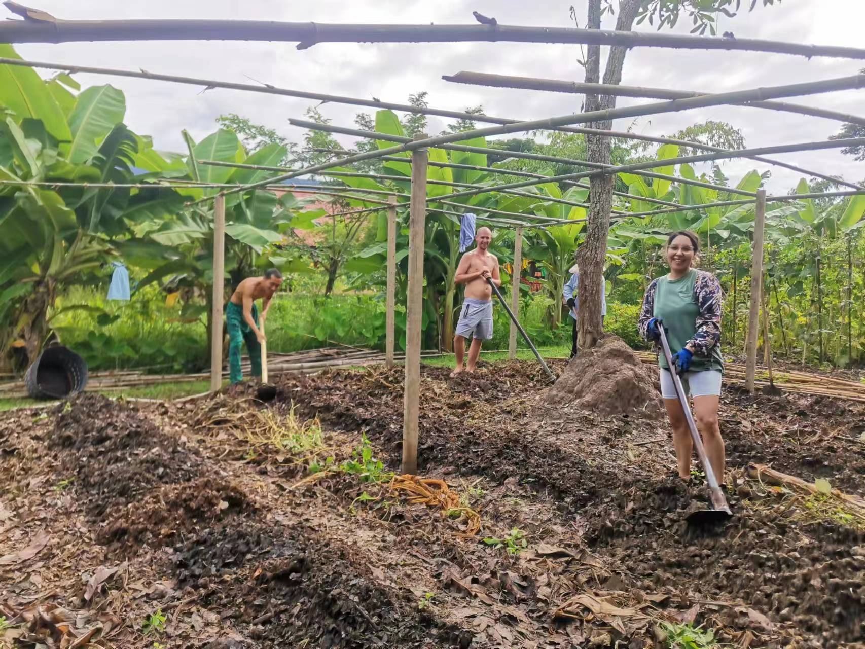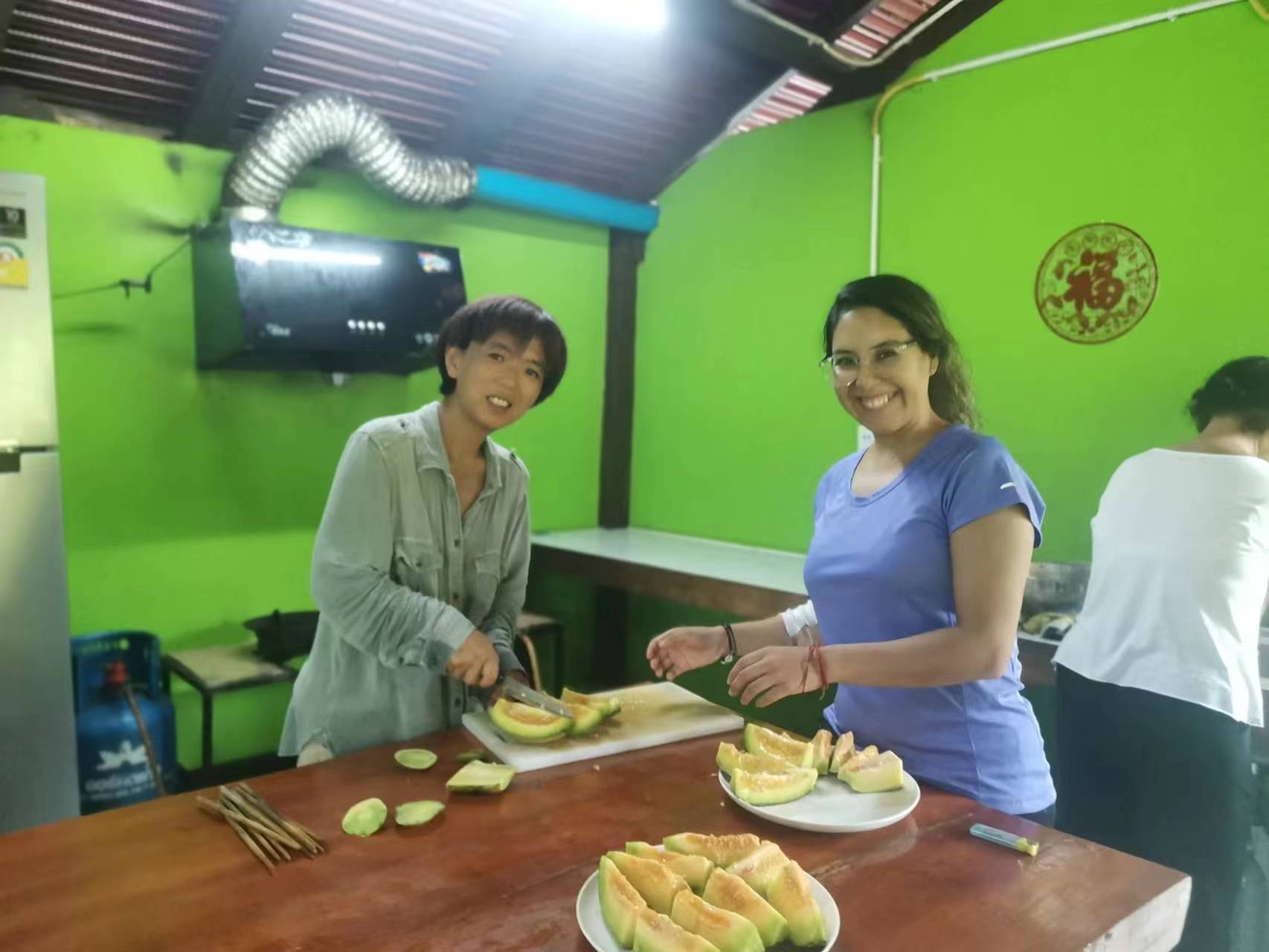 兩位訪客純樸勤勞,幹起活來不怕熱不怕臟,和我們一起摟草,除草,裝肥料,採摘芒果,改良土壤,種植鳳梨等。 英國男孩溫和細膩,有紳士風度,之前受過感情傷害,他喜歡家園的情愛自由,戒鏡帶著他閱讀八百理念,他希望自己熟悉理念后可以申請成為一名成員。 智利女孩是一位教孩子的學前老師,她甜美善良,愛心滿滿,信仰基督,相信靈魂和天堂的存在。 她與玉林一起為大家做了美味的墨西哥雞肉卷,還教我們跳熱情性感的南美舞蹈。 勞作之餘,仰樂戒鏡帶她們外出遊玩,游泳,一周體驗結束後,喜歡家園祥和氛圍和美麗的自然環境,他們倆都問及是否可以多體驗一周,我們也喜歡他們的品質並享受與她們的相處時光,便同意他們留下來繼續體驗一周。